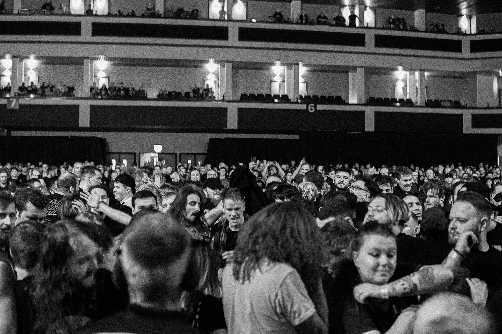 There’s a healthy attendance for LORNA SHORE‘s opening set, which stands to reason given they’re one of 2022’s hottest commodities. Much of this is down to Will Ramos‘ exceptional skills as a frontman and vocalist, immediately calling for the pit to open and having it immediately happen; the band haven’t even begun opening track To The Hellfire… at this point. The sound is against them, being quite muddy at points, but the band’s abundance of energy and the big reception they receive after every track pushes them through, with Cursed To Die seeing the first of many crowdsurfers topple over the barrier. There’s a lot of hype around them, and new album Pain Remains has a lot of expectation, but when they’re performing as well as this, it’s justified.