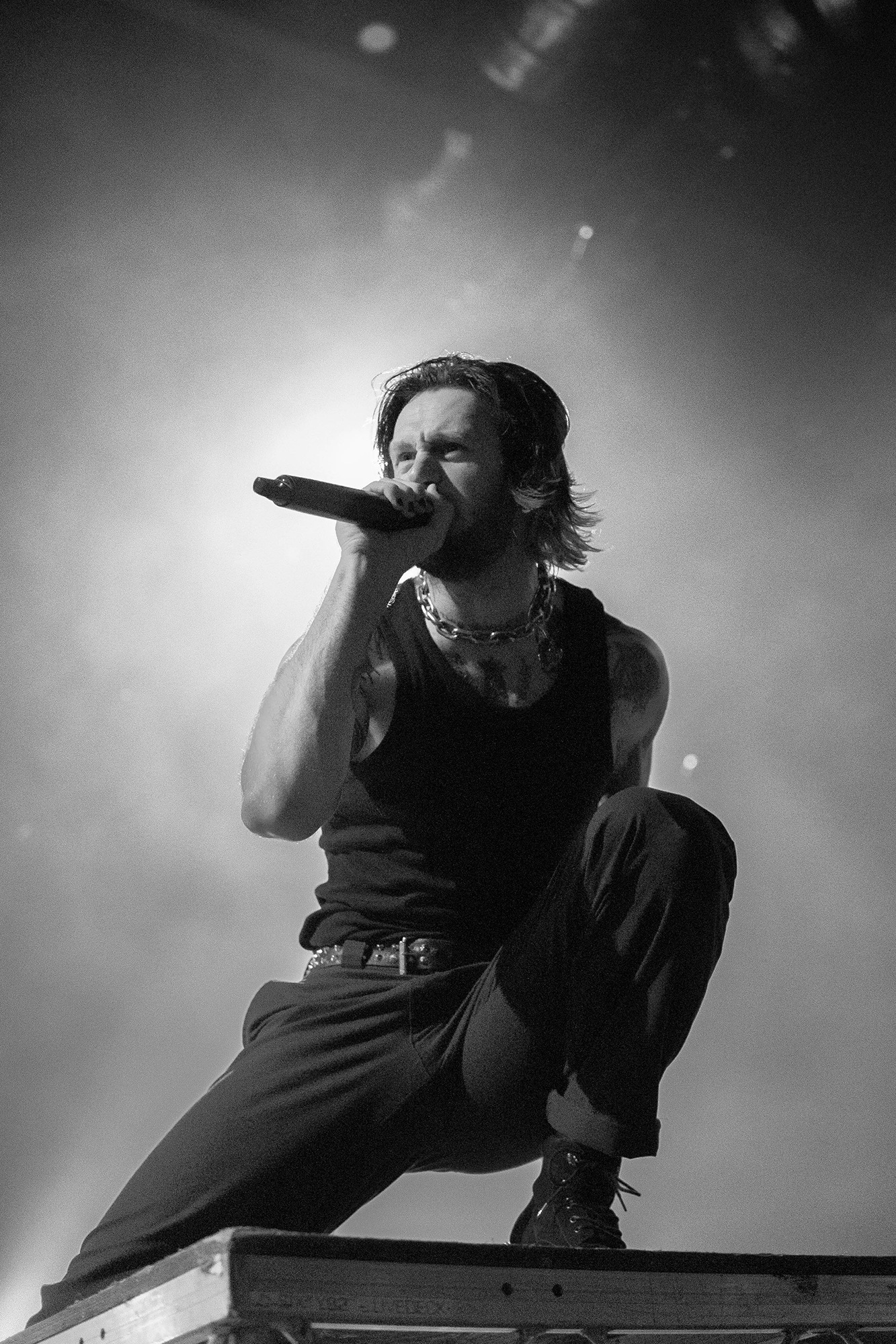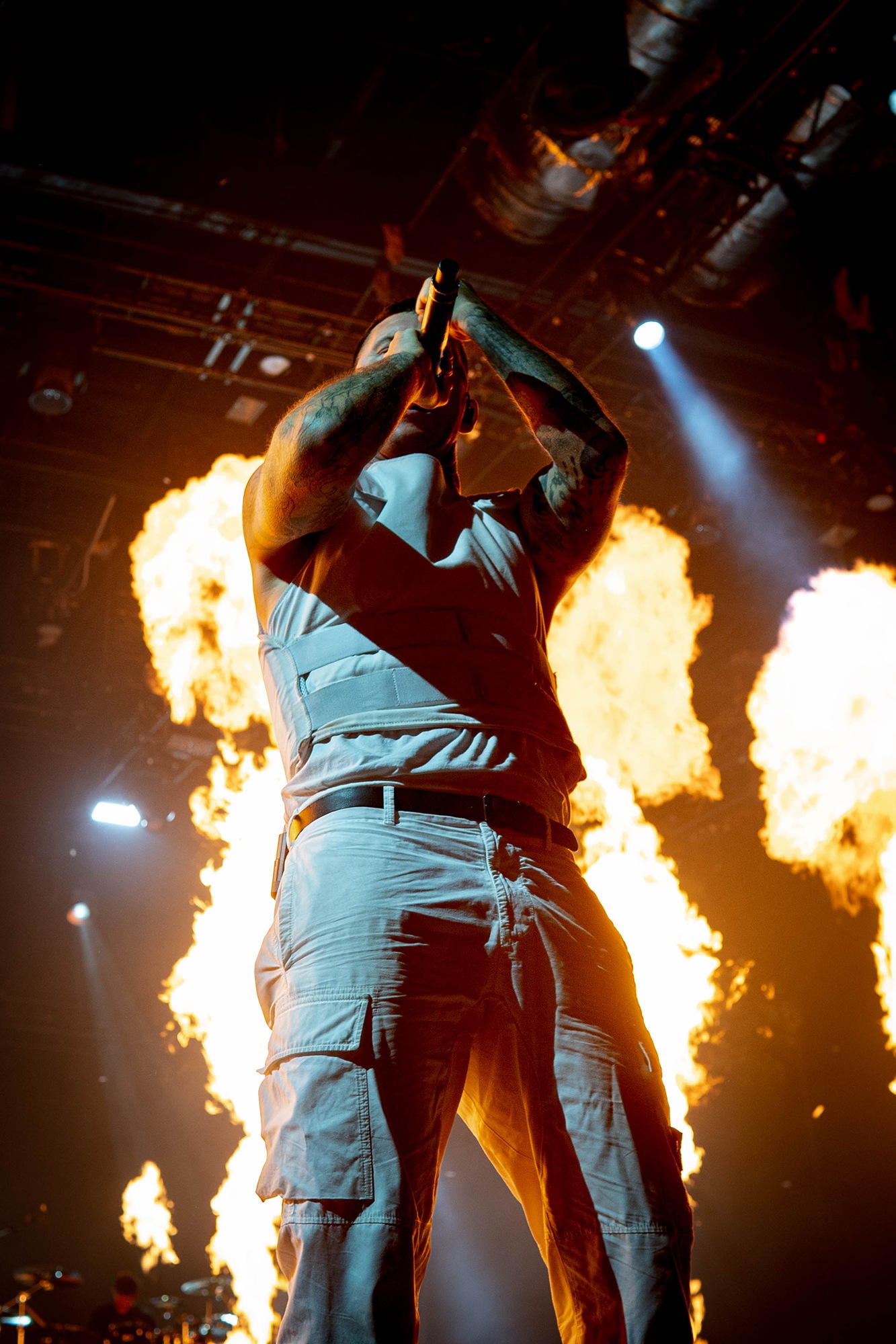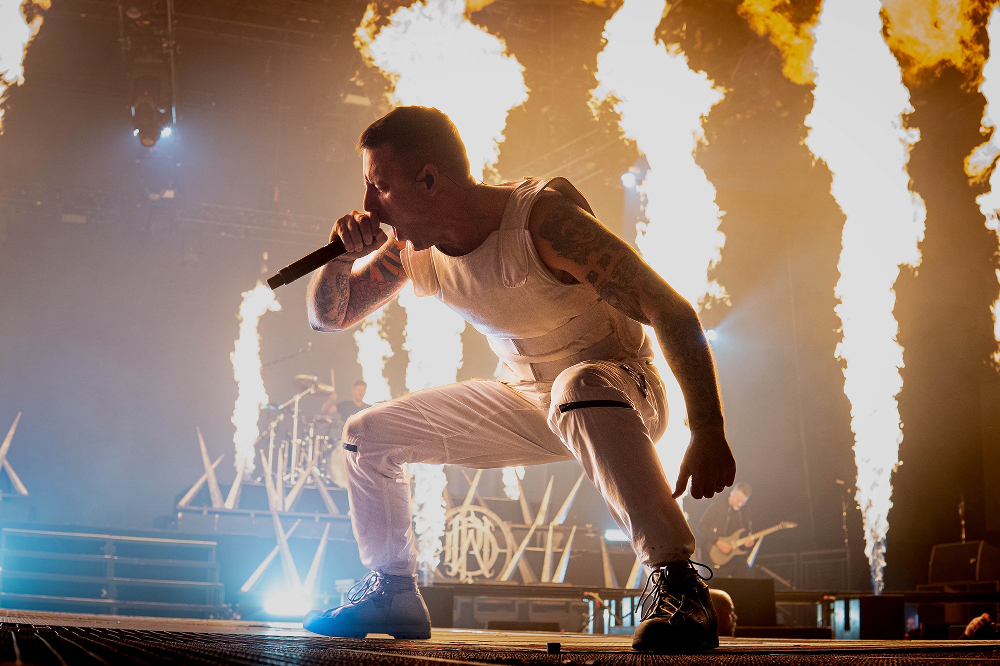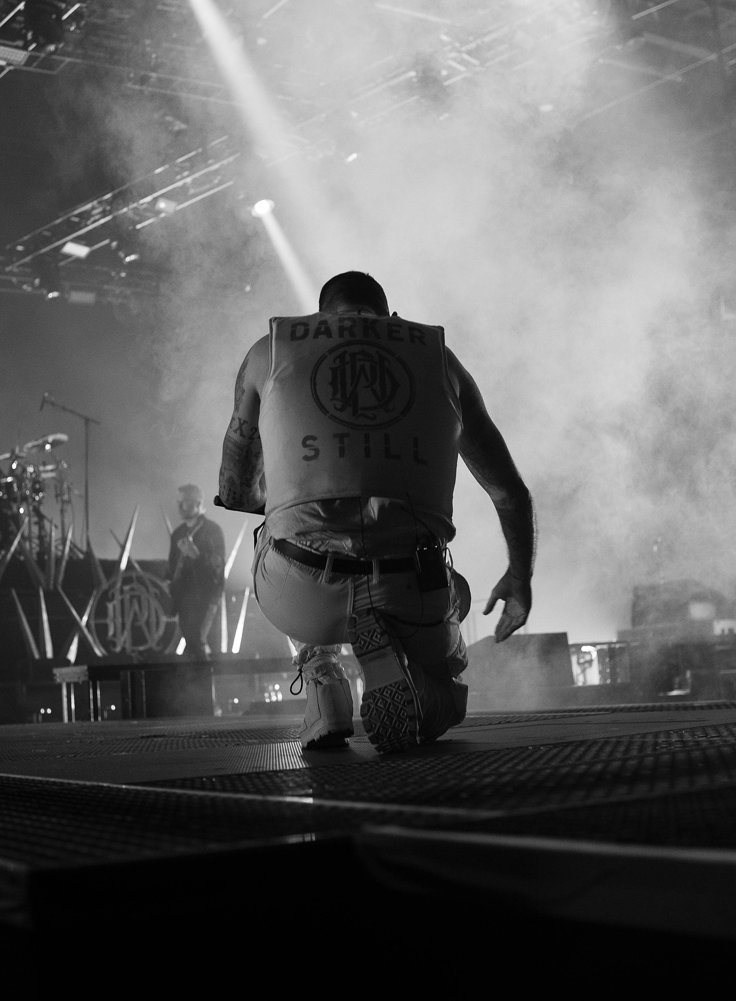 Despite overwhelmingly positive views from the media, it’s fair to say that PARKWAY DRIVE‘s latest record, Darker Still, has proved divisive among fans; you wouldn’t know it from the bedlam that ensues when they arrive on stage, though. Flanked by the same torch-wielding druids that accompanied them through the crowd on their Reverence run in 2019, the strains of lead single Glitch flow through the speakers as the band take their positions before Winston McCall seemingly jumps out of the stage, appearing behind an explosion of pyro to conduct his followers from the ego ramp, giant plumes of flame erupting around him.