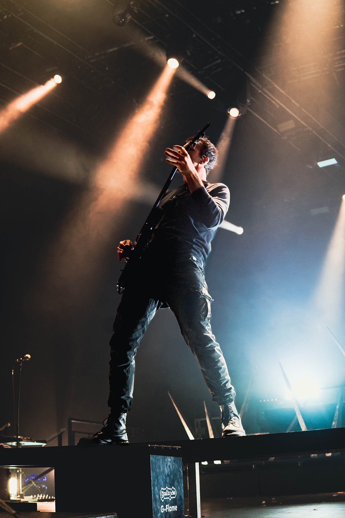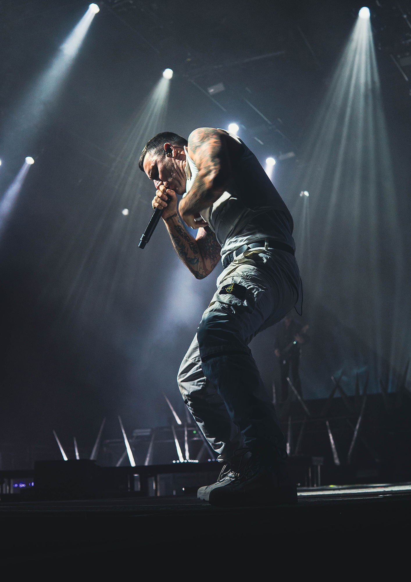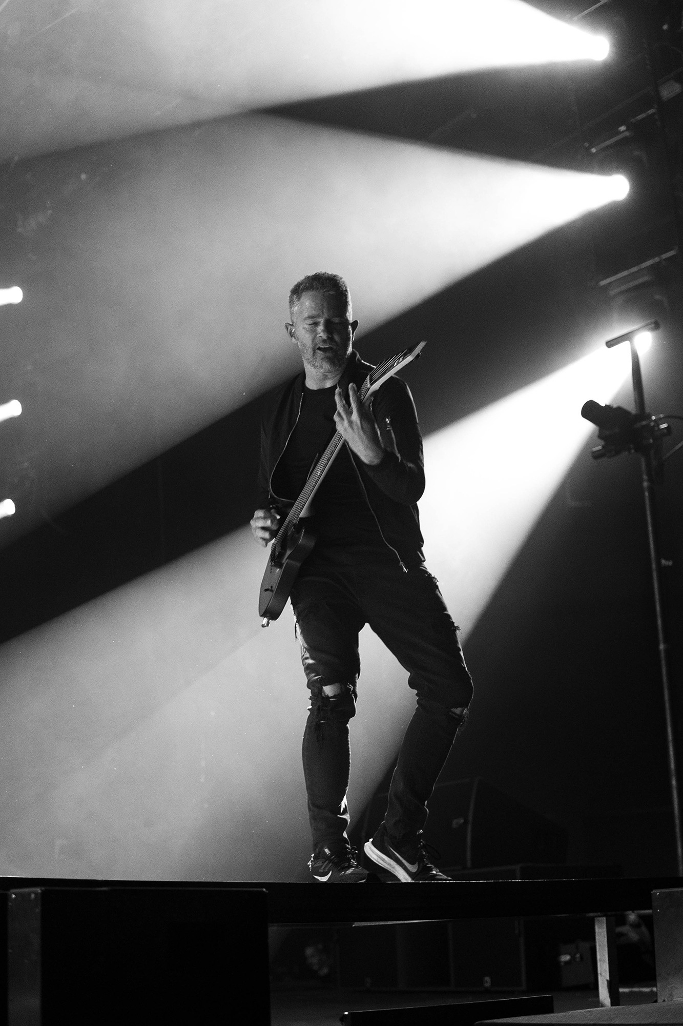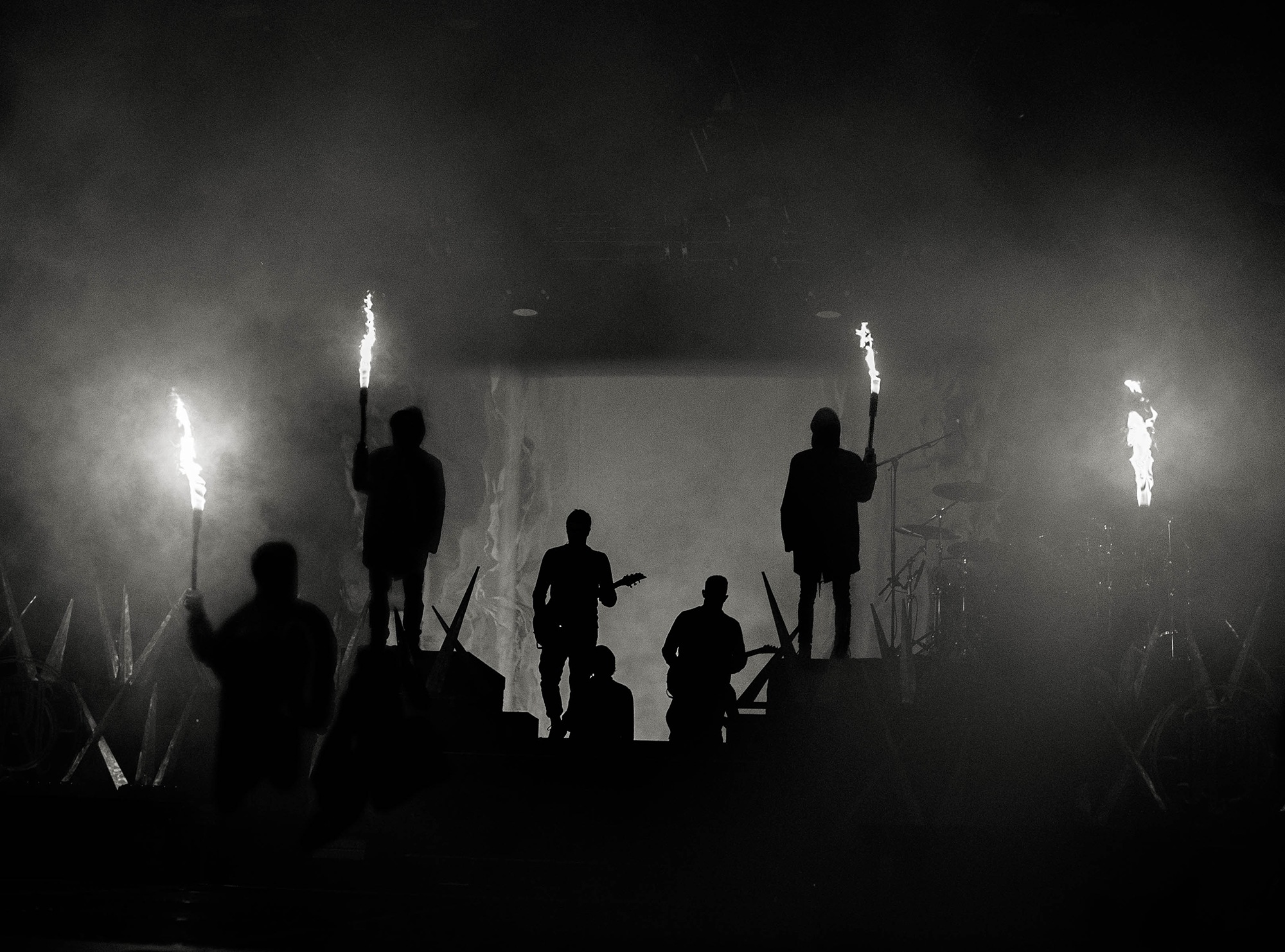 Despite overwhelmingly positive views from the media, it’s fair to say that PARKWAY DRIVE‘s latest record, Darker Still, has proved divisive among fans; you wouldn’t know it from the bedlam that ensues when they arrive on stage, though. Flanked by the same torch-wielding druids that accompanied them through the crowd on their Reverence run in 2019, the strains of lead single Glitch flow through the speakers as the band take their positions before Winston McCall seemingly jumps out of the stage, appearing behind an explosion of pyro to conduct his followers from the ego ramp, giant plumes of flame erupting around him.