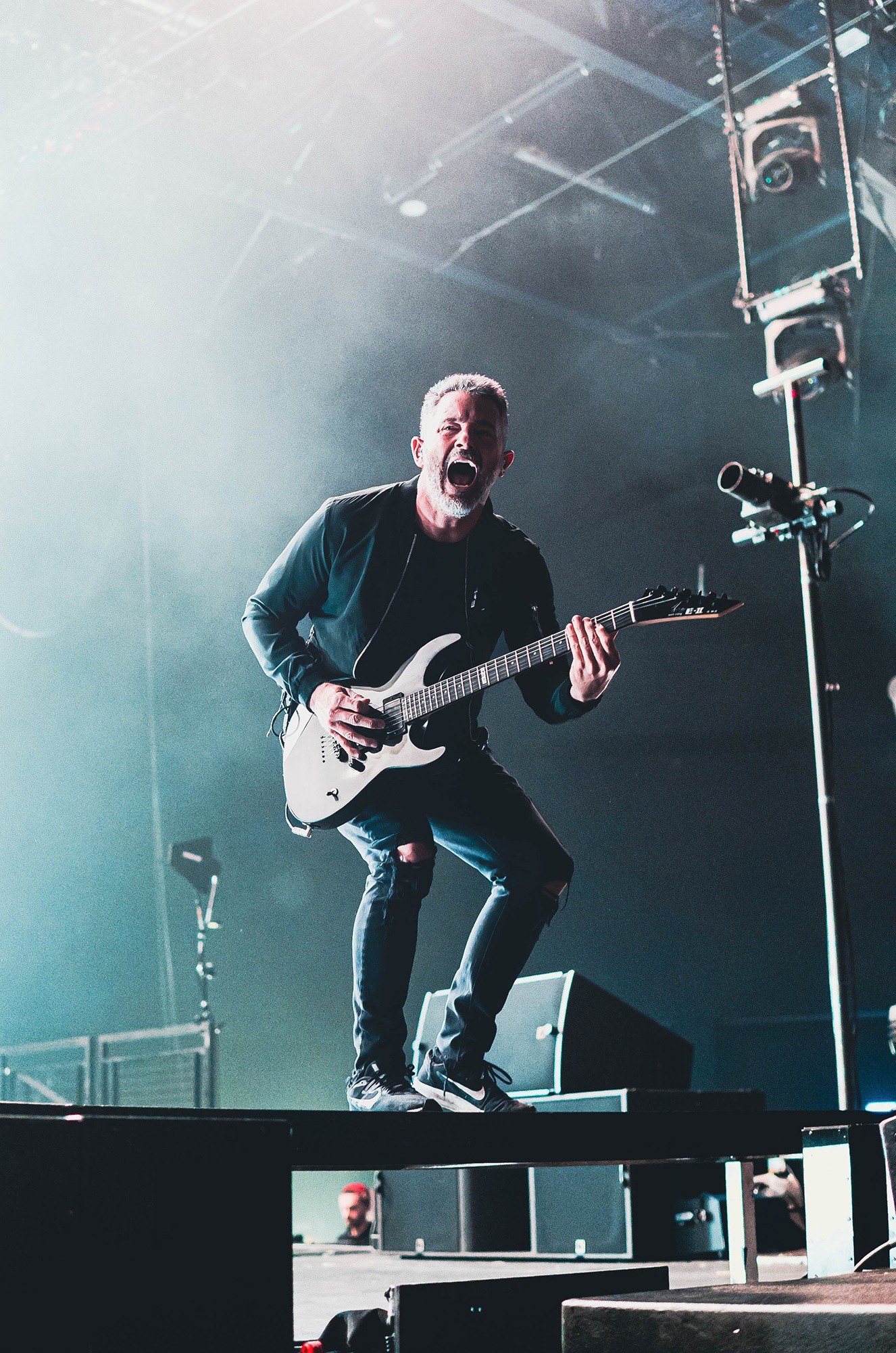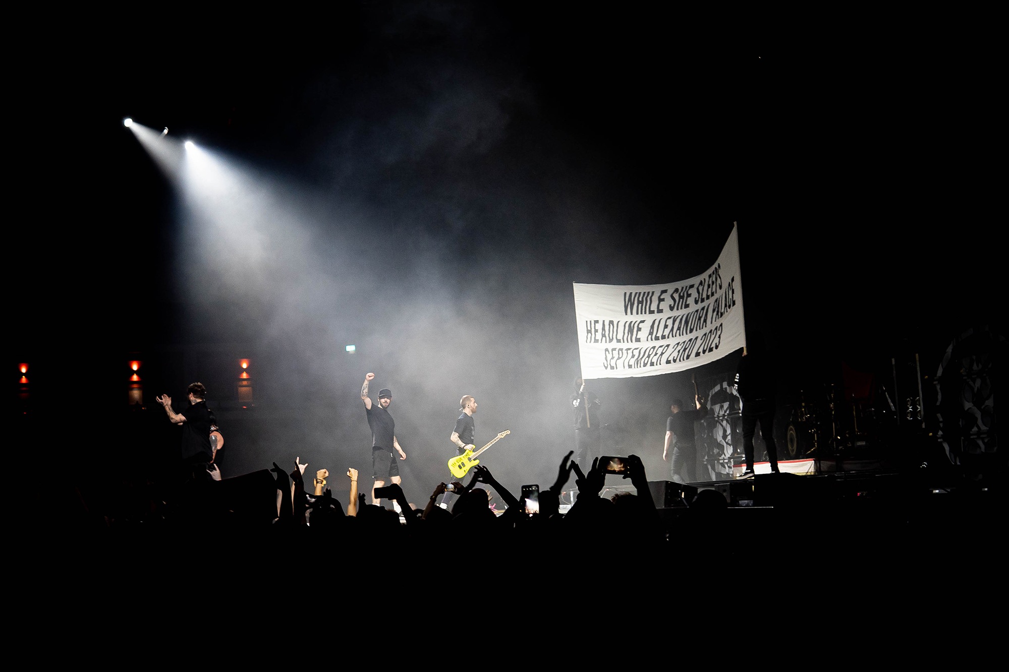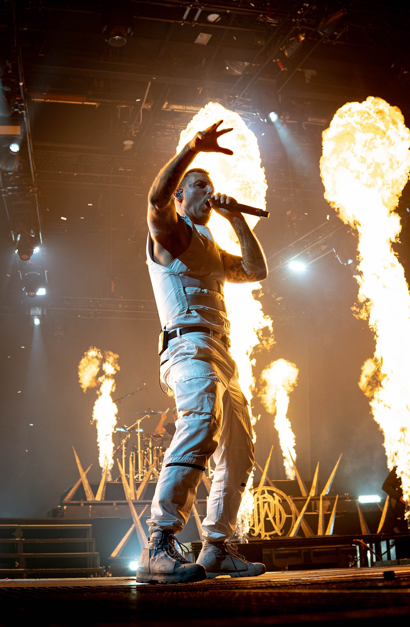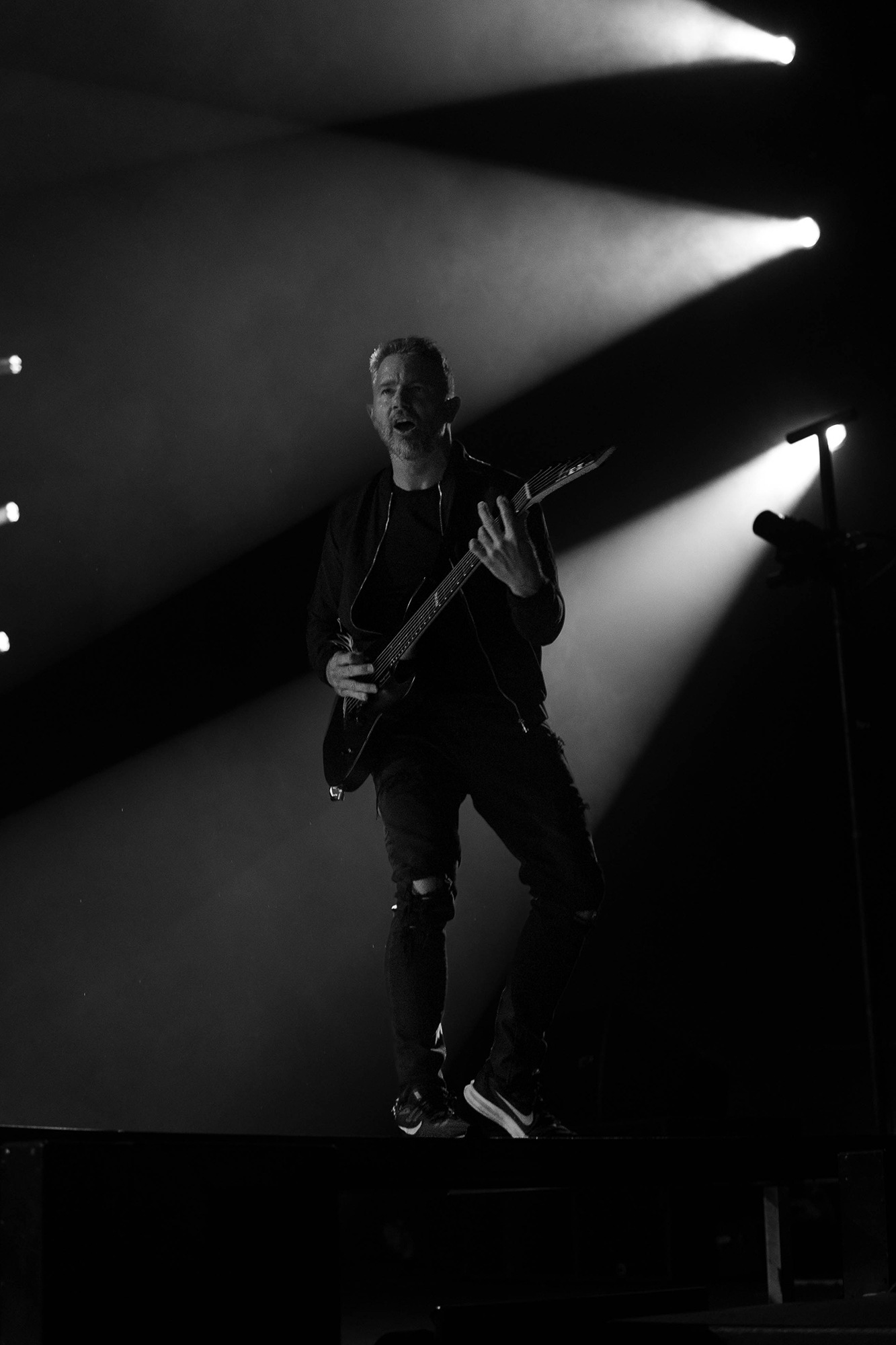 Despite overwhelmingly positive views from the media, it’s fair to say that PARKWAY DRIVE‘s latest record, Darker Still, has proved divisive among fans; you wouldn’t know it from the bedlam that ensues when they arrive on stage, though. Flanked by the same torch-wielding druids that accompanied them through the crowd on their Reverence run in 2019, the strains of lead single Glitch flow through the speakers as the band take their positions before Winston McCall seemingly jumps out of the stage, appearing behind an explosion of pyro to conduct his followers from the ego ramp, giant plumes of flame erupting around him.