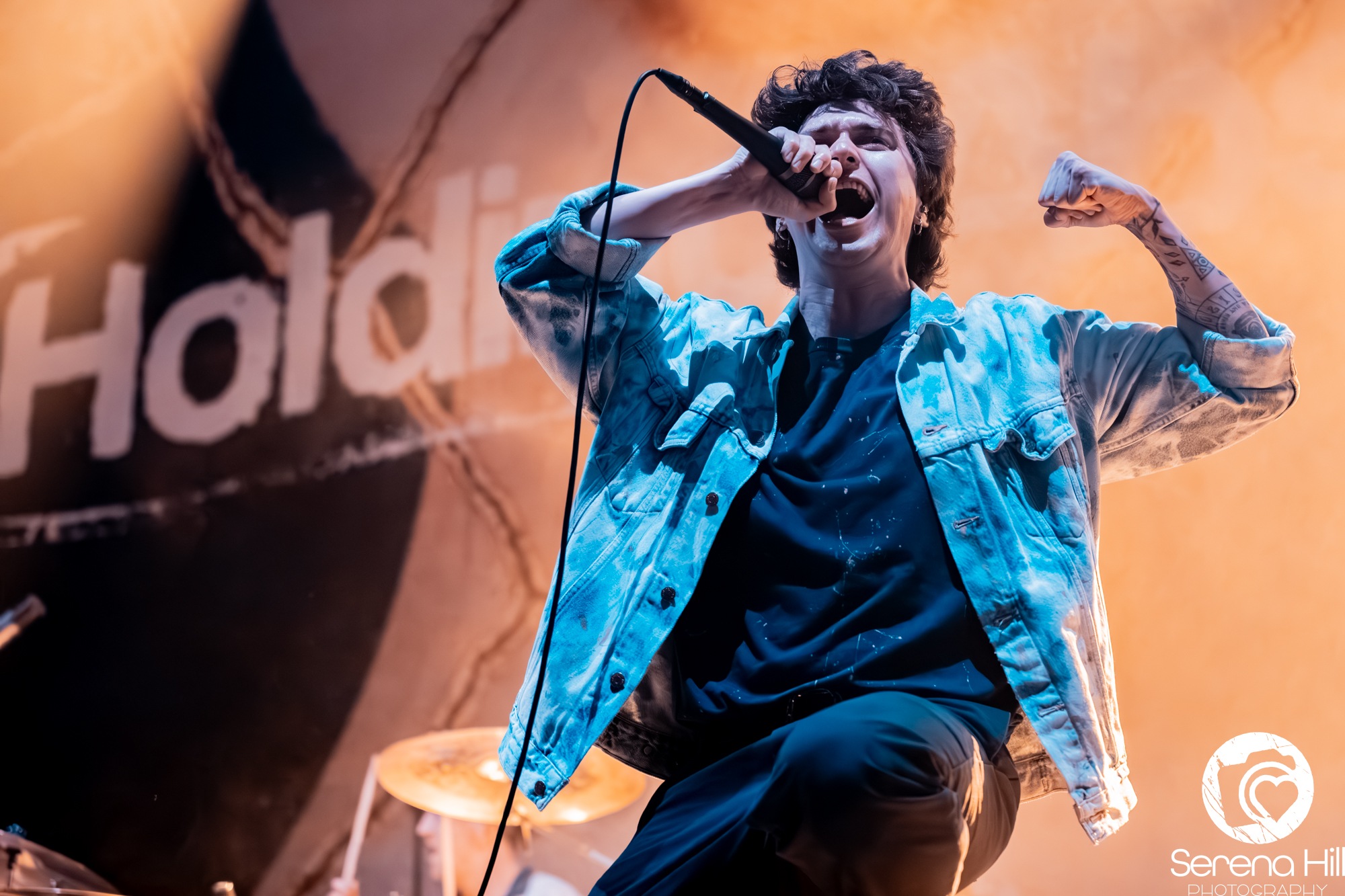It’s a welcome return to PIERCE THE VEIL to our shores. Coming off the back of their newest album The Jaws Of Life they bring with them our very own HOLDING ABSENCE and fellow Americans DAYSEEKER. Many people are arriving early to get that perfect spot for the show but with two bands between now and PIERCE THE VEIL, the crowd will need to hold it together.