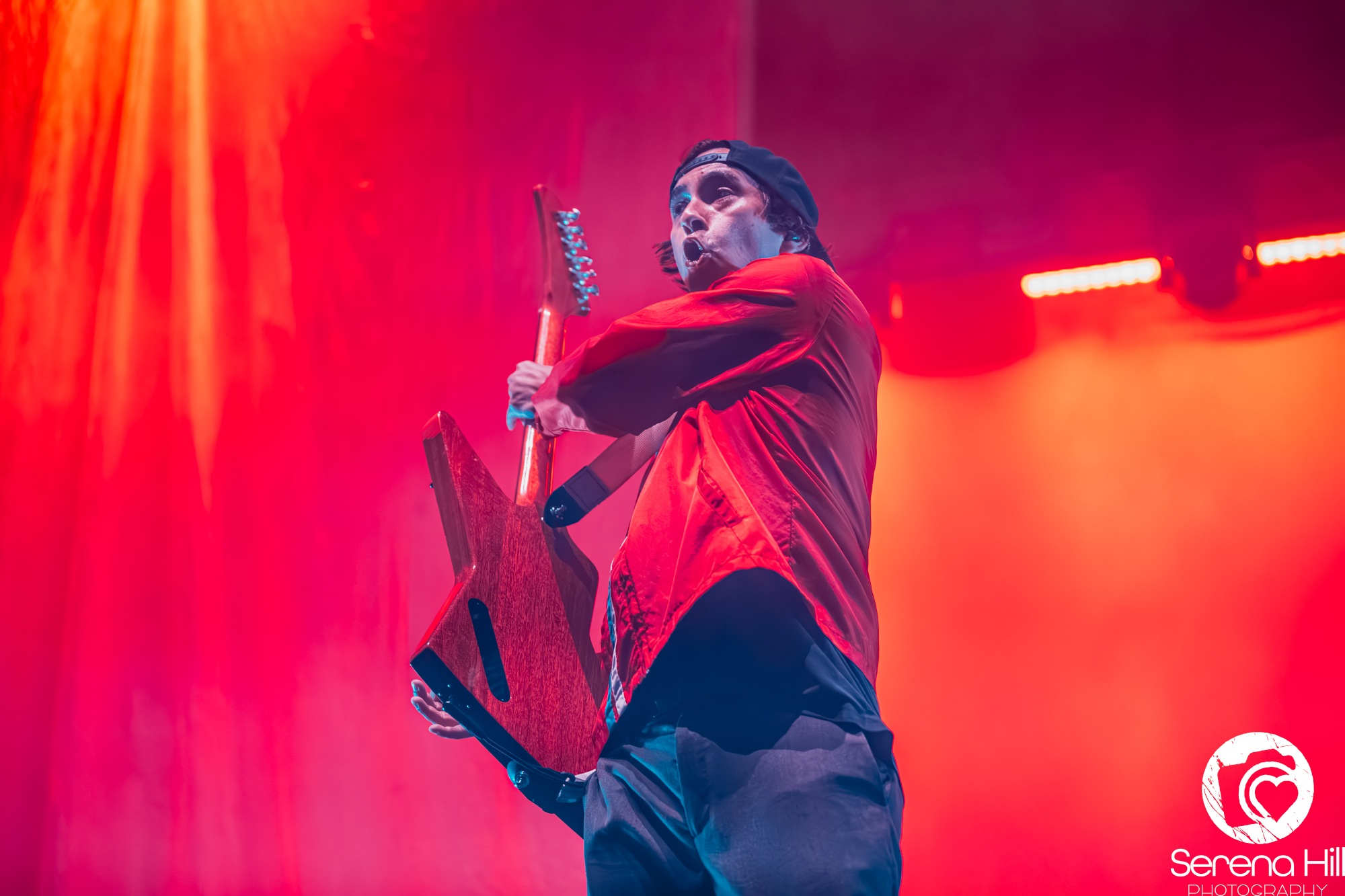 With tears successfully wiped away, the biggest cheer tonight rings through Cardiff’s Utilita Arena for when PIERCE THE VEIL come on. Starting things off in silhouette with Death Of An Executioner, it’s a slower start but the bang of confetti makes sure everyone is awake.