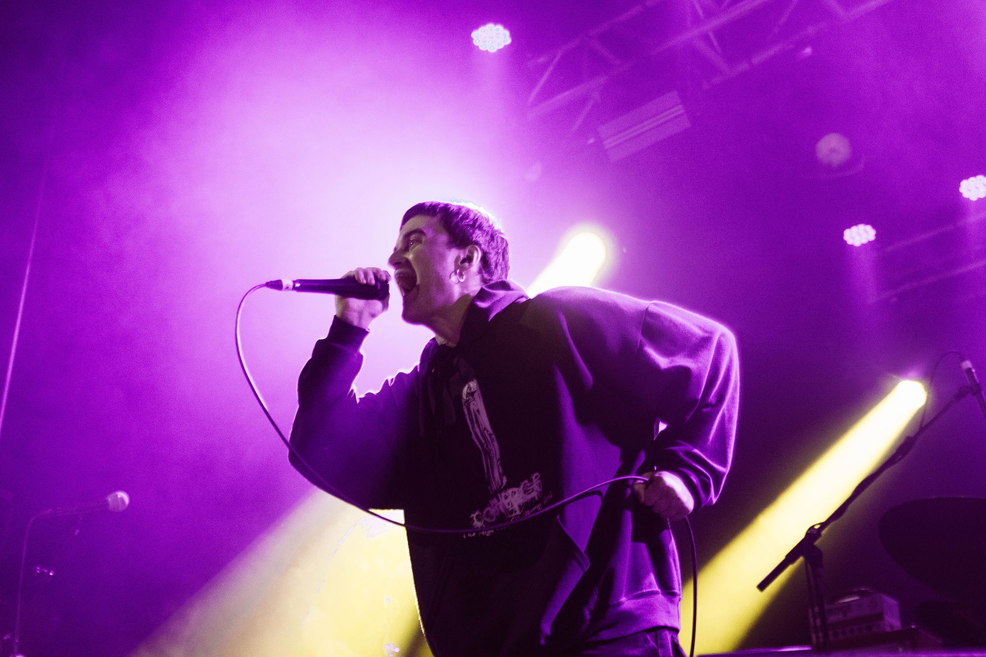 Where the first act relied on discord, BODYWEB brought unadulterated, moshable, and danceable heaviness. From the first note, vocalist Louis Hardy’s great tone beckoned a call to the pit that, sadly, never fully materialised. The band functioned as a well-oiled machine, seamlessly integrating live mixes of industrial sounds run on a laptop by Nihiloxica, while their guitarist Tom Hobson borrowed the occasional nu-metal riff, all without straying from their hardcore roots. After opening with back-to-back with high-energy songs like no faith, incest and shadowboxing, they showcased their sonic range with synthetic, blending grungy shoegaze verses with a hardcore chorus, though the effect felt somewhat disjointed. A poignant highlight of the gig came with pull the plug’s rousing speech, dedicated to the victims of the ongoing Palestinian genocide, proving the future of hardcore still has strong roots in politics.