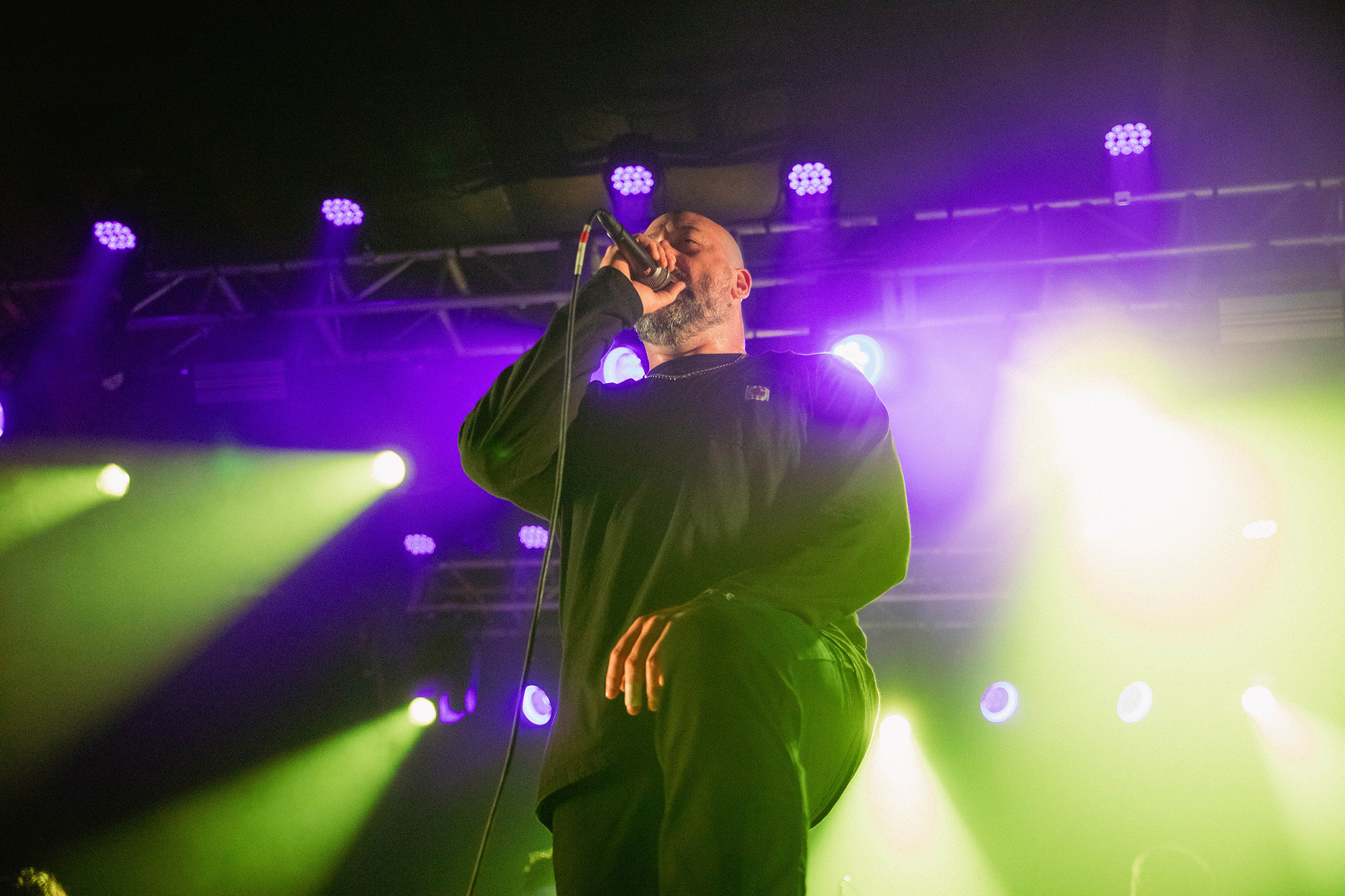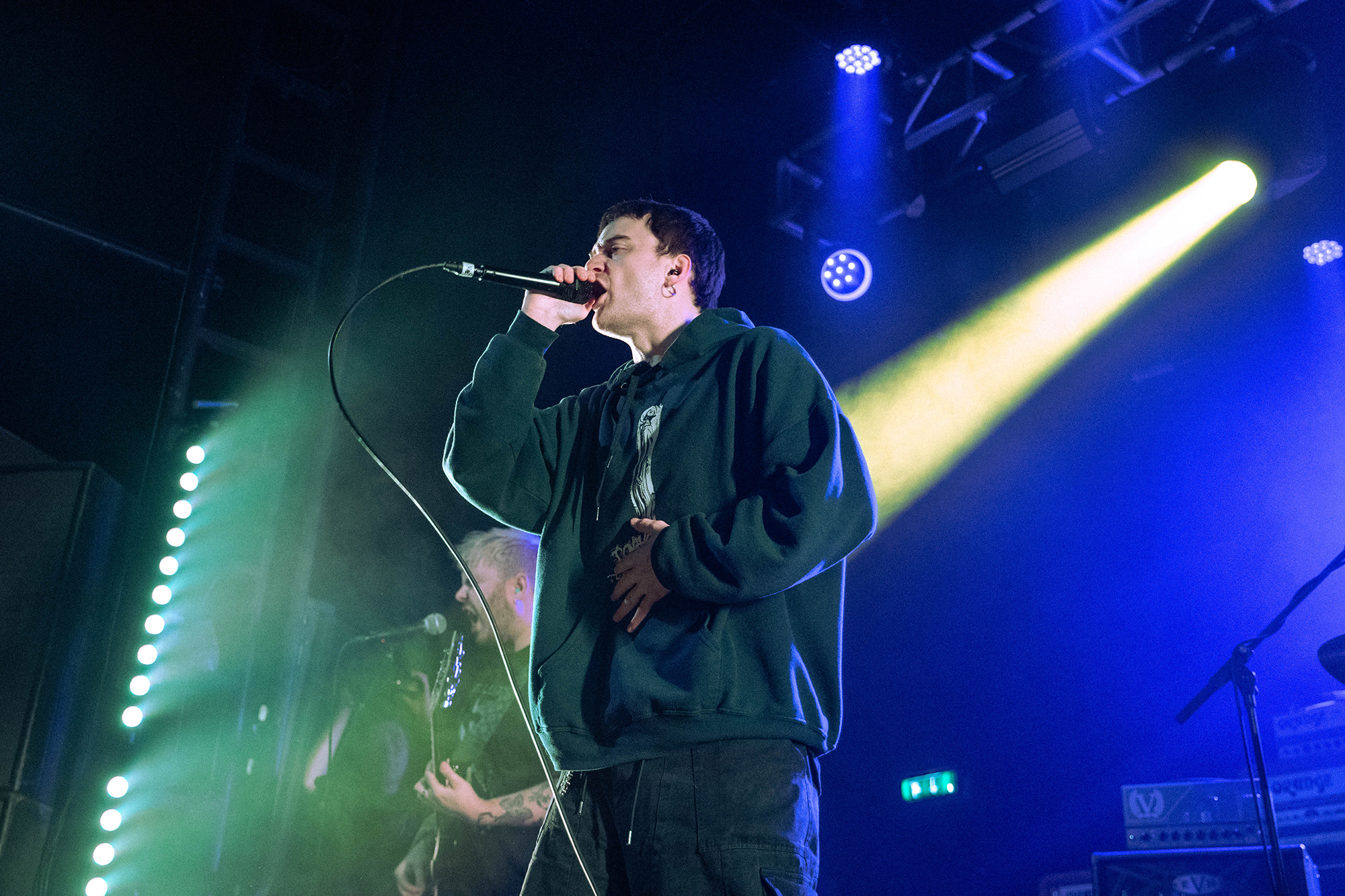 Opening the night with a disarming backtrack of eerie screams, Leeds-own KILLING ME SOFTLY launched into a full-frontal hardcore assault. The vocalist, channelling the spirit of Bryan Garris but with a deathcore-adjacent range, commanded the chaos. Their sound was a potent mix of ‘proper’ metalcore riffs punctuated by discordant breaks that used silence as a weapon, creating some prime two-step material. While this tactic was effective at commanding attention, the pauses inbetween songs felt disarming in a way that suggested the band was still refining their stagecraft for audiences beyond the size of a local show, despite presently performing in one of London’s iconic mid-sized venues. The guitarist, clad in a surprisingly casual white jumper and blue jeans, brought infectious energy with sporadic two-stepping and high kicks. Alongside an impeccably synced drummer, the pairing were a joy to listen to.