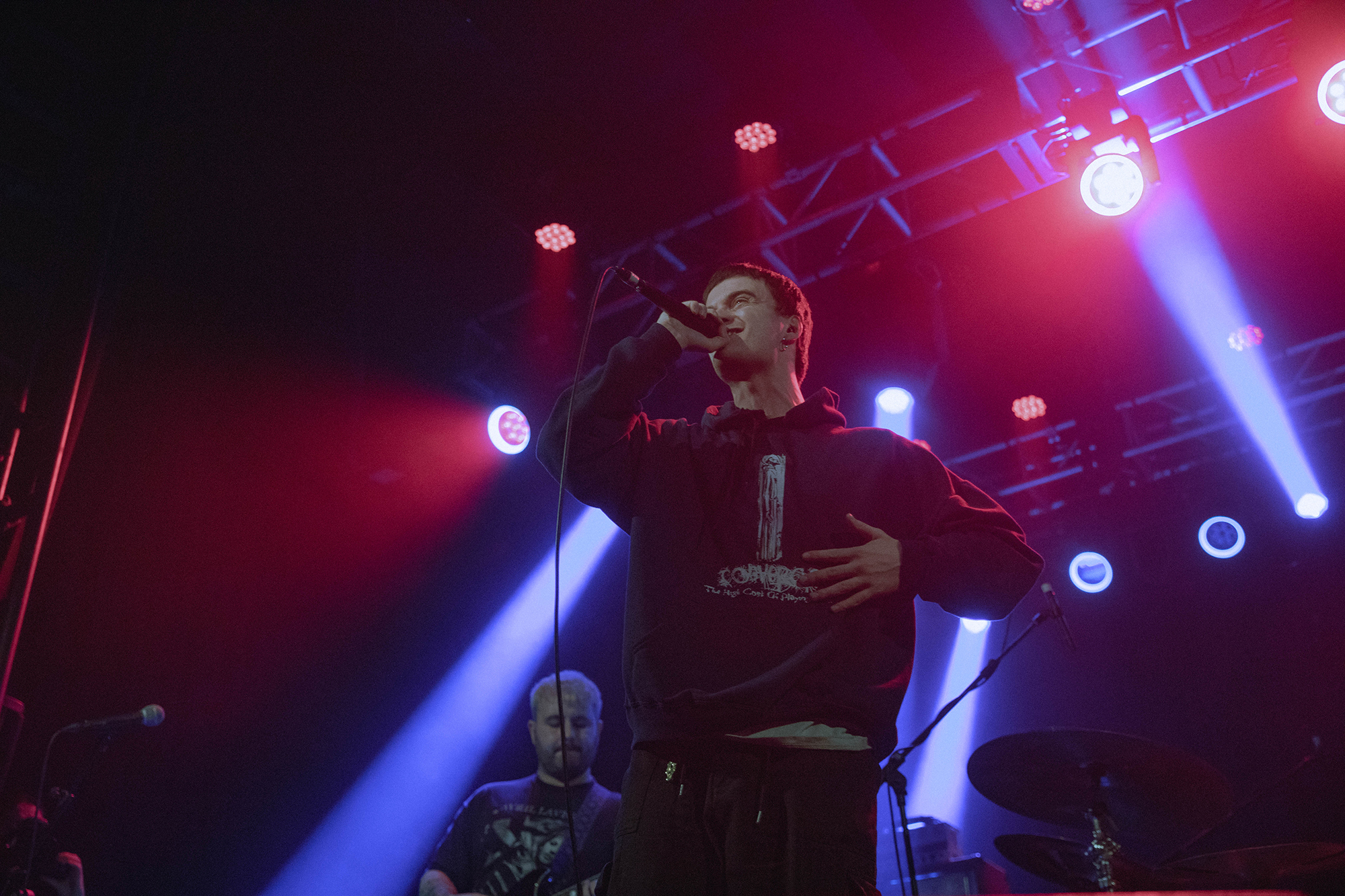 Drummer Luke Thompson proved himself a man with feet of speed, driving the relentless pace of BODYWEB’s catalogue seemingly without a double kick pedal. While songs like sugarcoated offered a slower, more introspective change of pace, they fell a little flat compared to their heavier counterparts. As kings of the breakdown, BODYWEB’s energy was undeniable, but they often relied too heavily on frontman Louis, with the rest of the band needing to engage more with the crowd. Closing with dead wire earned them the first crowd-surfer of the night, although an earlier, heavier track might have been a more powerful and impactful finale for a still largely static crowd.