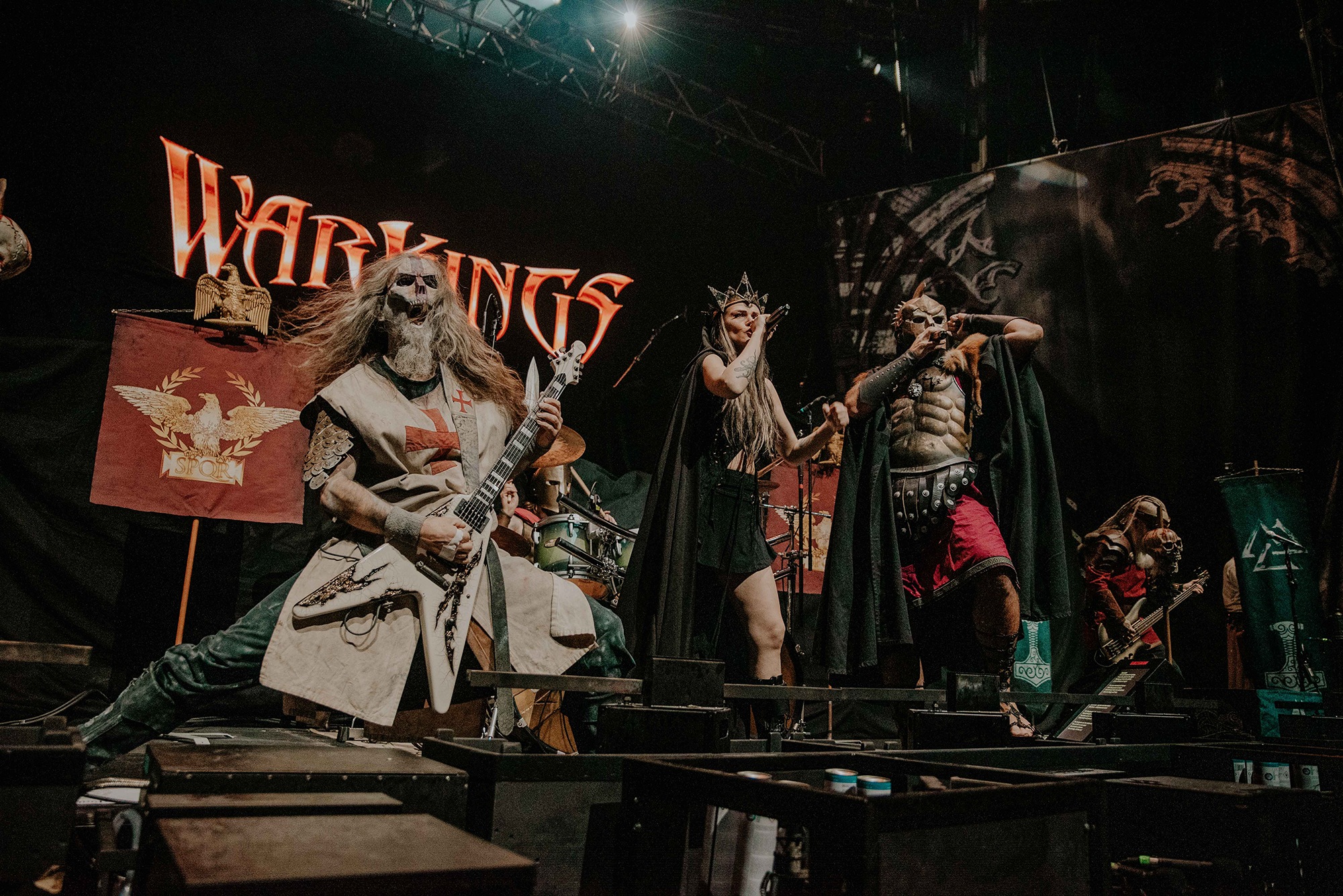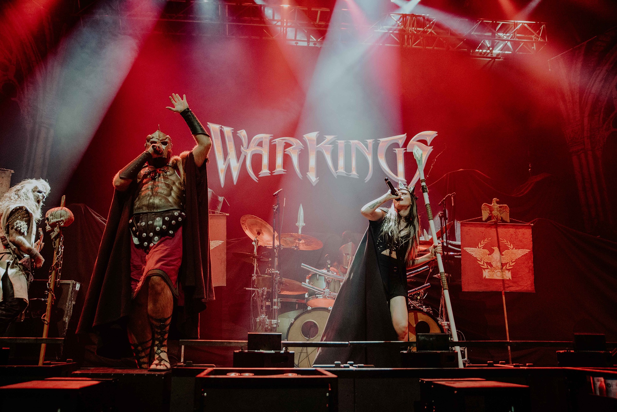 Once we get indoors, we’re treated to multi-national four-piece WARKINGS, a band who clearly think that subtlety is for cowards. Coming across like the Horrible Histories of power metal, they get the night off to a silly but entertaining start. Fight and Hephaistos are blood-pumping anthems, and their tongue-in-cheek nature makes them easy to like. They might look what would happen if LORDI did a classics degree, but it’s hard not to have a good time. The closing Gladiator is a misstep though, it’s alarmingly similar to the POWER RANGERS theme.