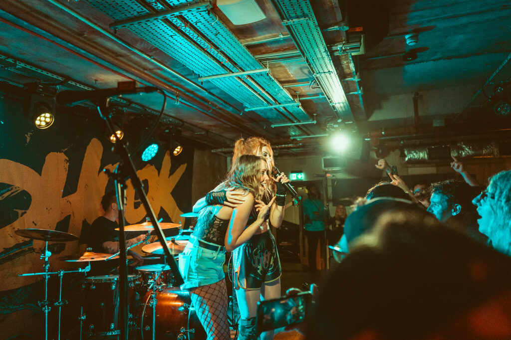 HEXXX sees them joined by EVILLE singer Eva Sheldrake in place of VANA and sheinjects some punk snarl to it. The set is interspersed with samples, from what sounds like an X-Men quote opening the set to Arcane’s Jinx yelling “I start fires” before Pyromaniac. Delving back into their debut album for a few songs, they bathe the crowd in red light for Off With Your Head and DEFENCES’ Cherry pops up for Imposter. “I don’t even know what to say… we announced this tour and didn’t even know if anyone would turn up,” Emmy admits before being sidetracked by a sax solo and chants of “saxophone” (“are you fucking done, London?”) into Soju where she invites someone from the crowd onstage for its second verse – though stage fright scuppers it and the crowd take over.