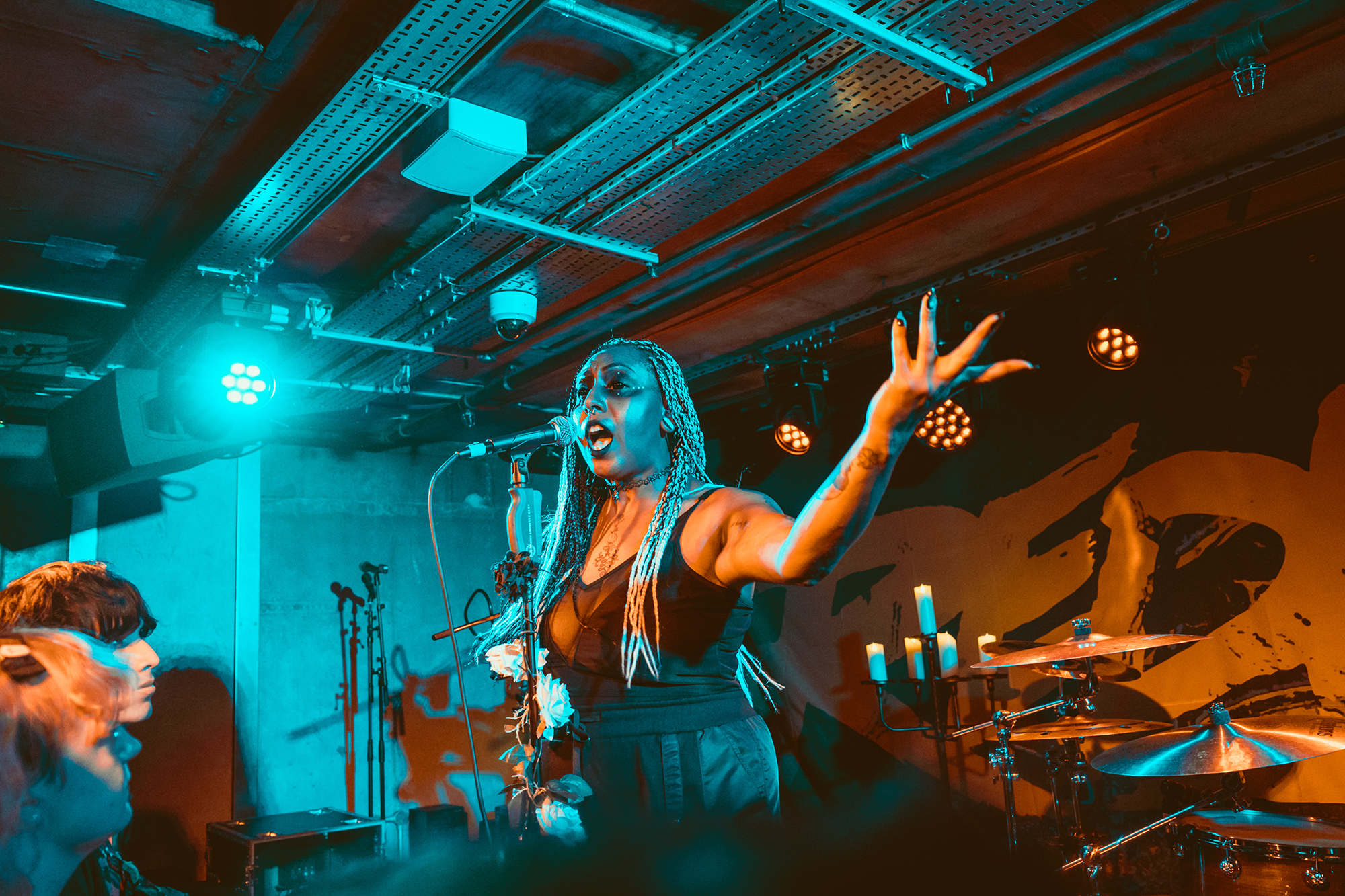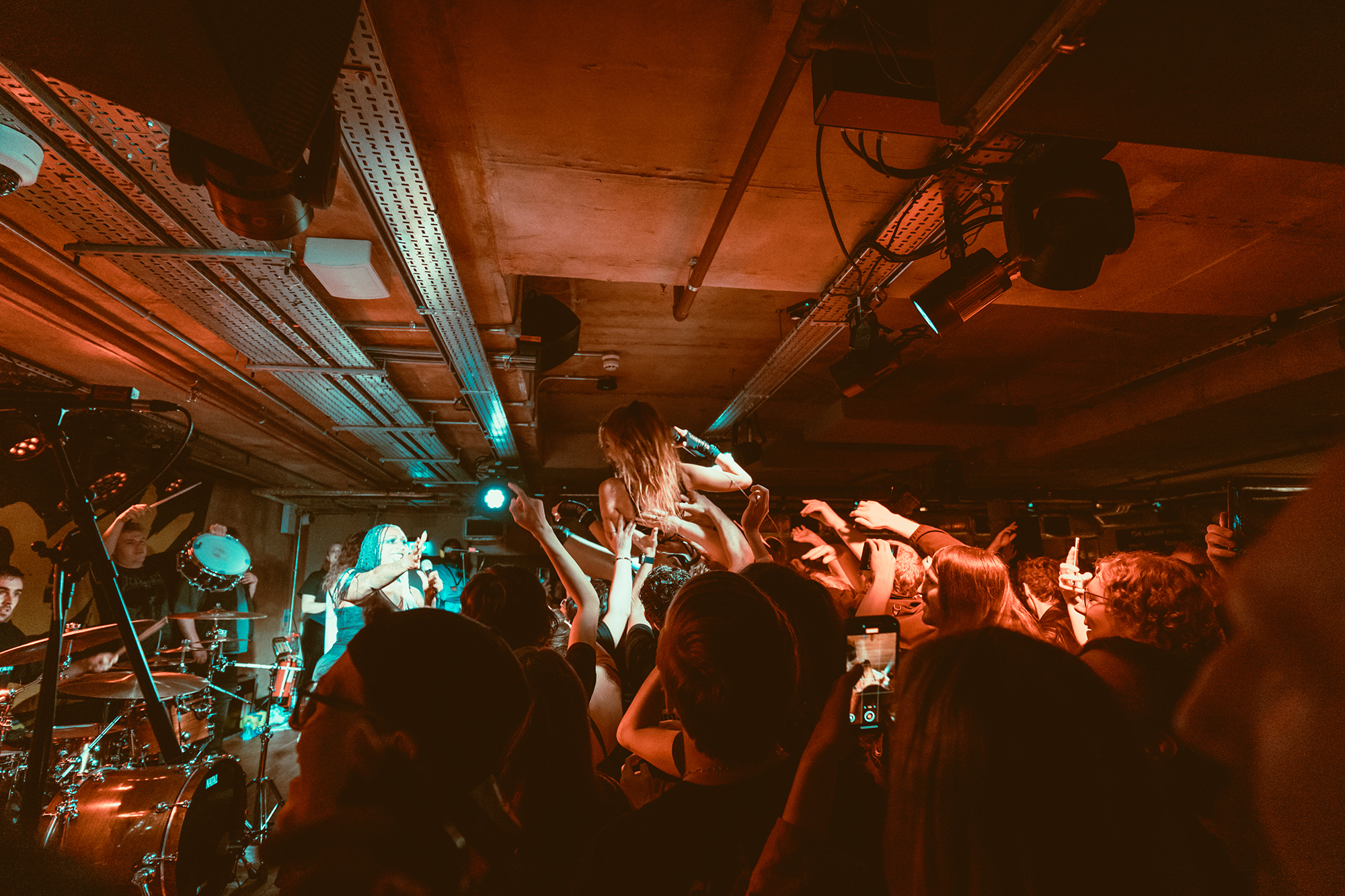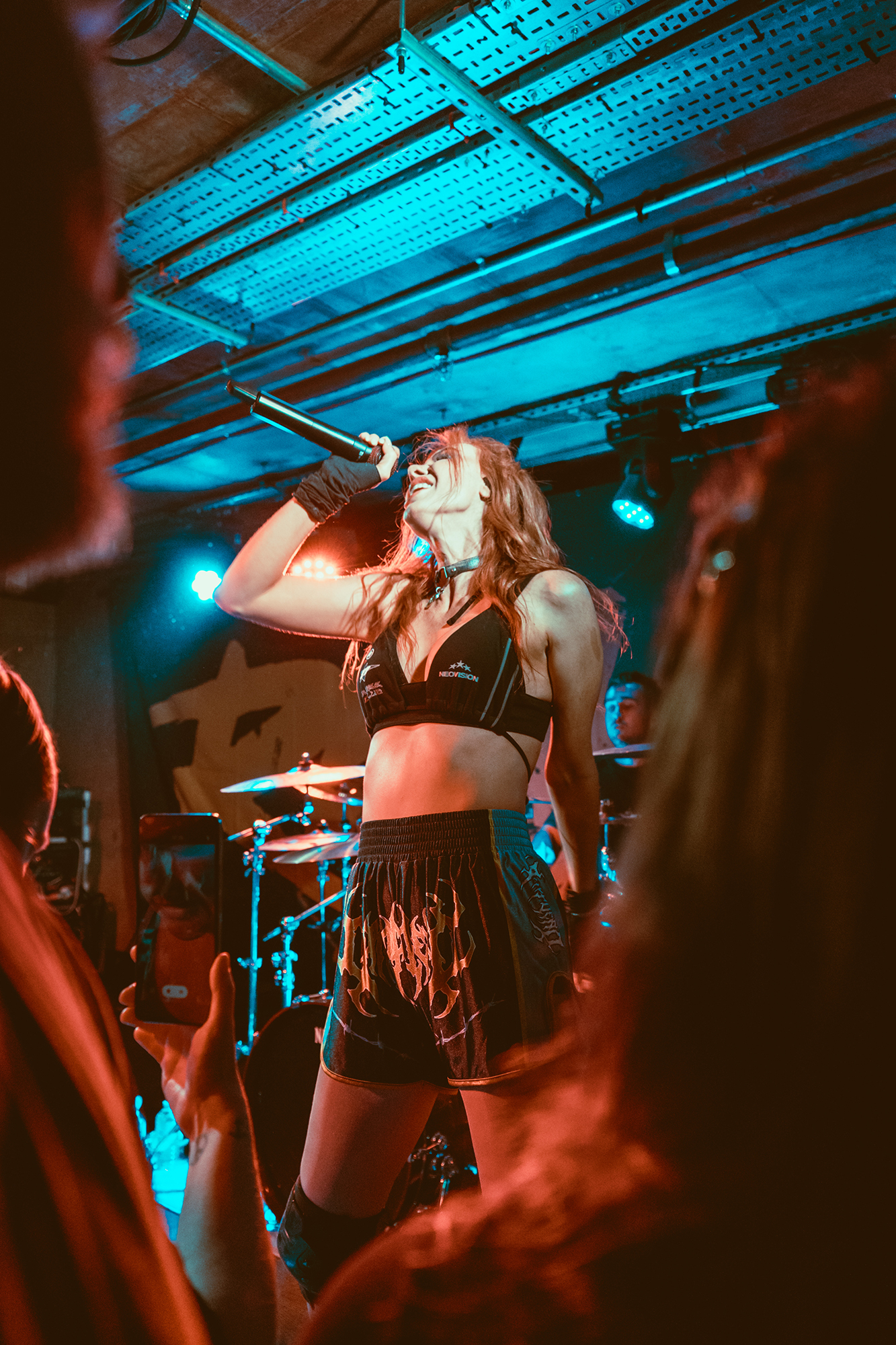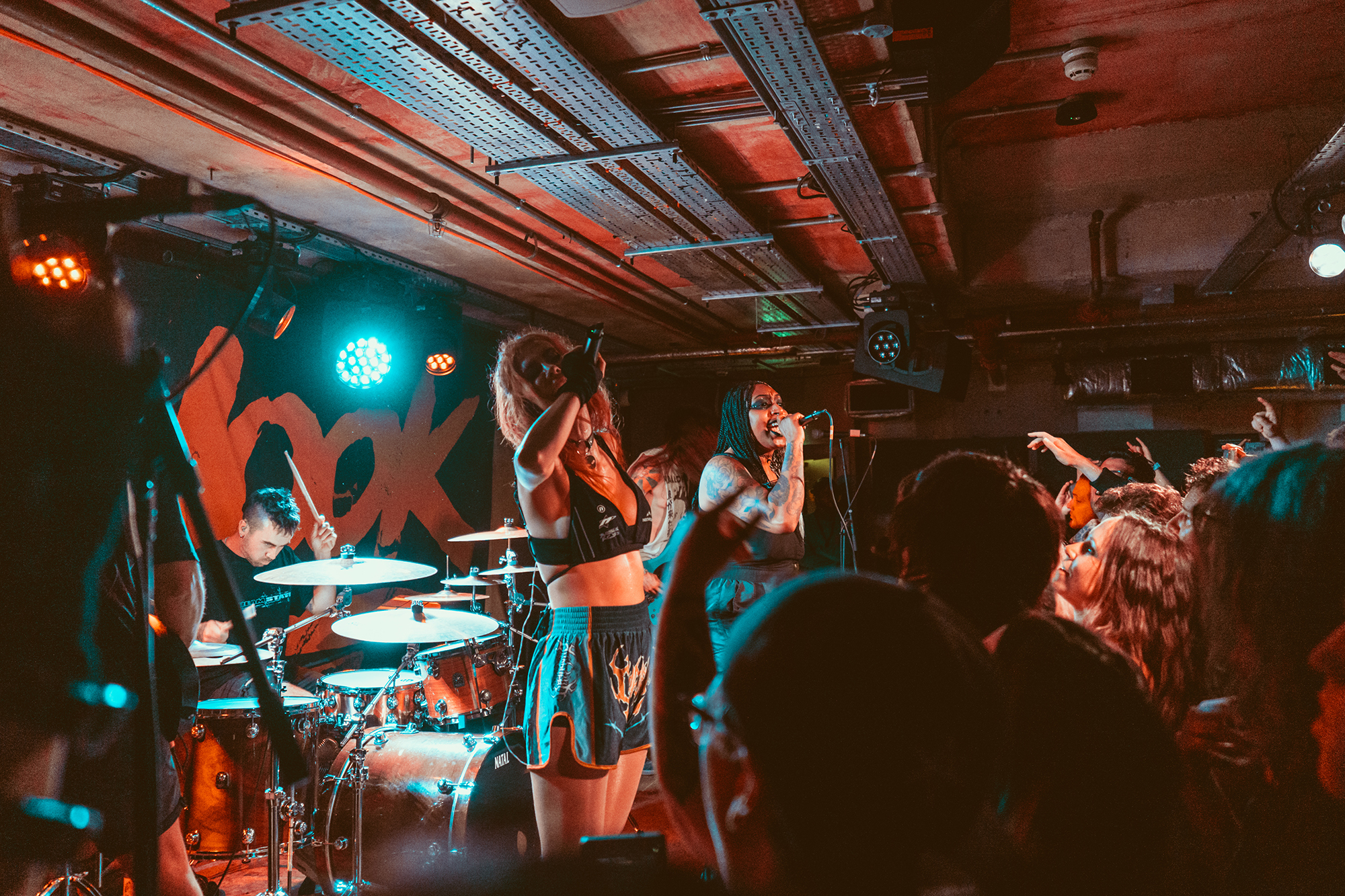 HEXXX sees them joined by EVILLE singer Eva Sheldrake in place of VANA and sheinjects some punk snarl to it. The set is interspersed with samples, from what sounds like an X-Men quote opening the set to Arcane’s Jinx yelling “I start fires” before Pyromaniac. Delving back into their debut album for a few songs, they bathe the crowd in red light for Off With Your Head and DEFENCES’ Cherry pops up for Imposter. “I don’t even know what to say… we announced this tour and didn’t even know if anyone would turn up,” Emmy admits before being sidetracked by a sax solo and chants of “saxophone” (“are you fucking done, London?”) into Soju where she invites someone from the crowd onstage for its second verse – though stage fright scuppers it and the crowd take over.