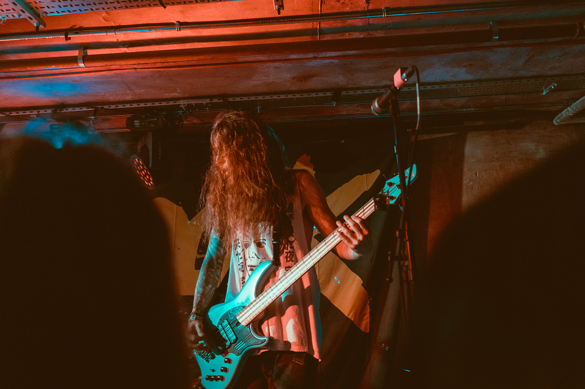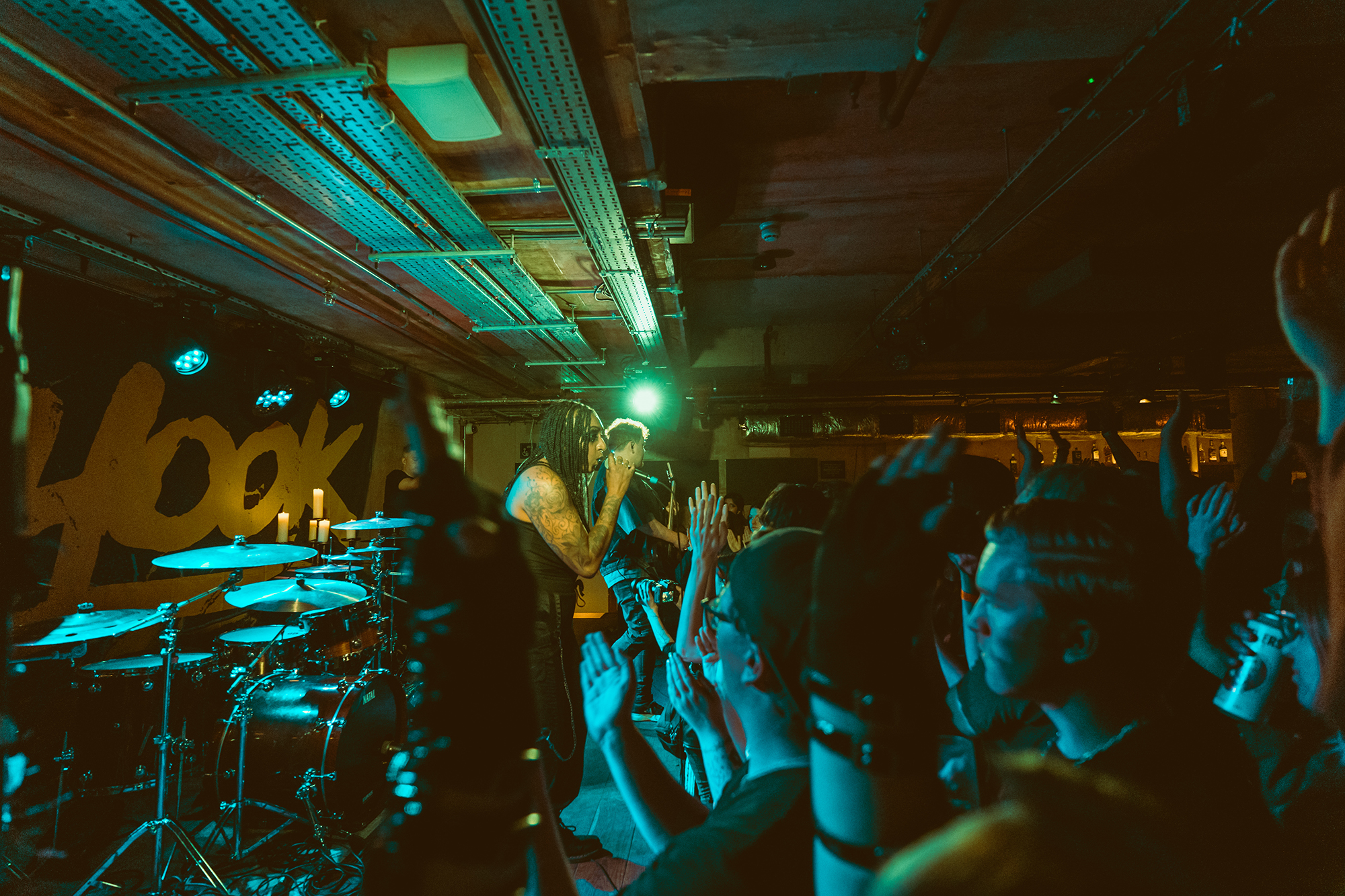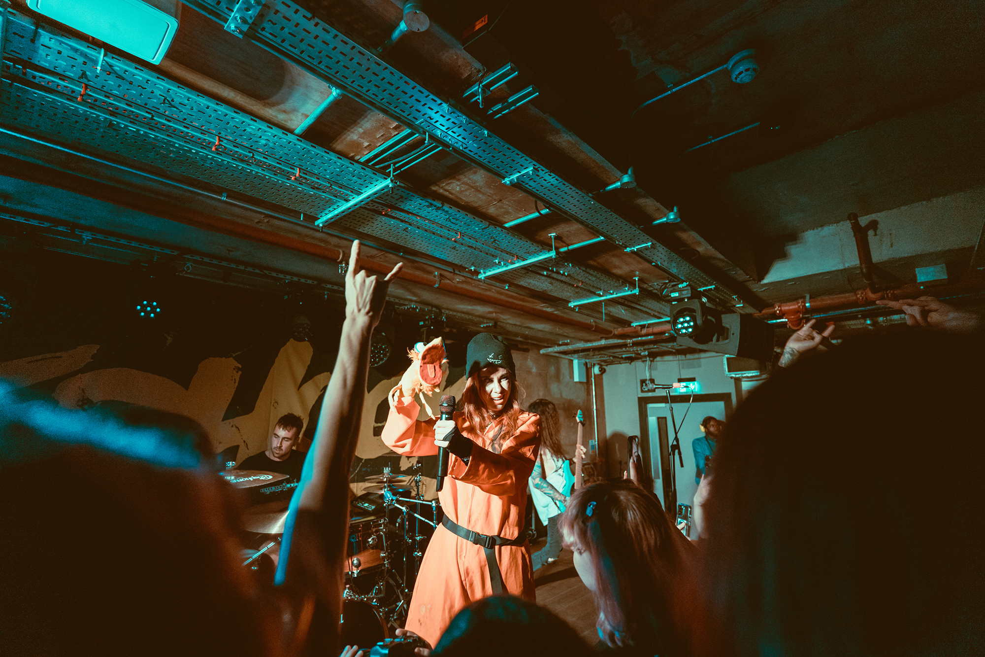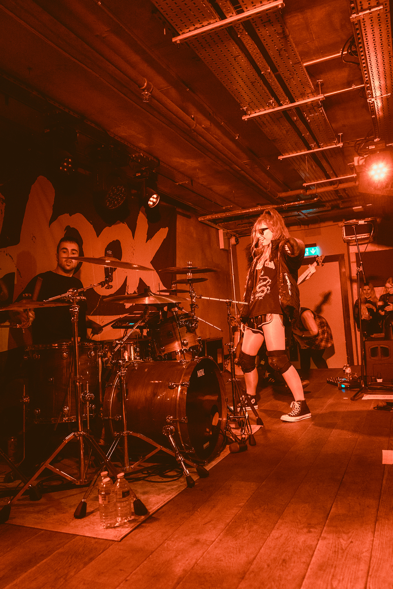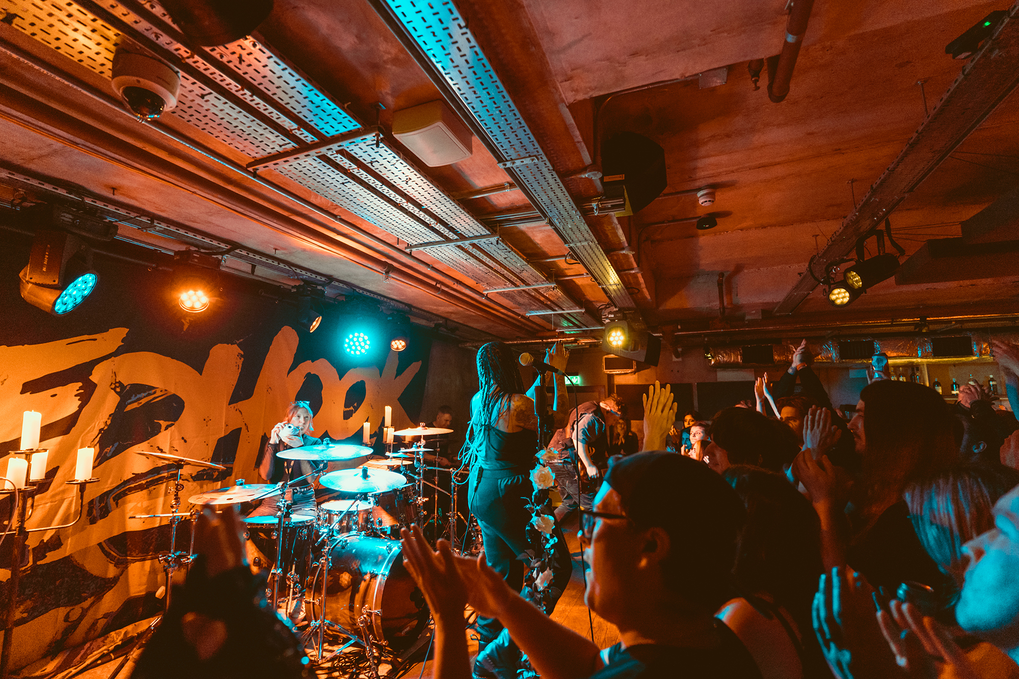 Openers EVILLE draw on the likes of THE PRODIGY and modern metalcore as part of their thumping, danceable alt metal. Through scuzzy bass lines, crunchy breakdowns and vocals swapping between vitriolic rap and sung, they craft a thoroughly modern take on metal. They’re on the right bill for it too, given REDHOOK’s own fluid approach to genre. It means the crowd are into it from the off, heads bobbing and a few people bouncing toward the very front. Fuck The System has a particularly vitriolic breakdown before the drum n bass indebted No Pictures Please sets the dance floor off with a tried-but-true “jump the fuck up” moment.