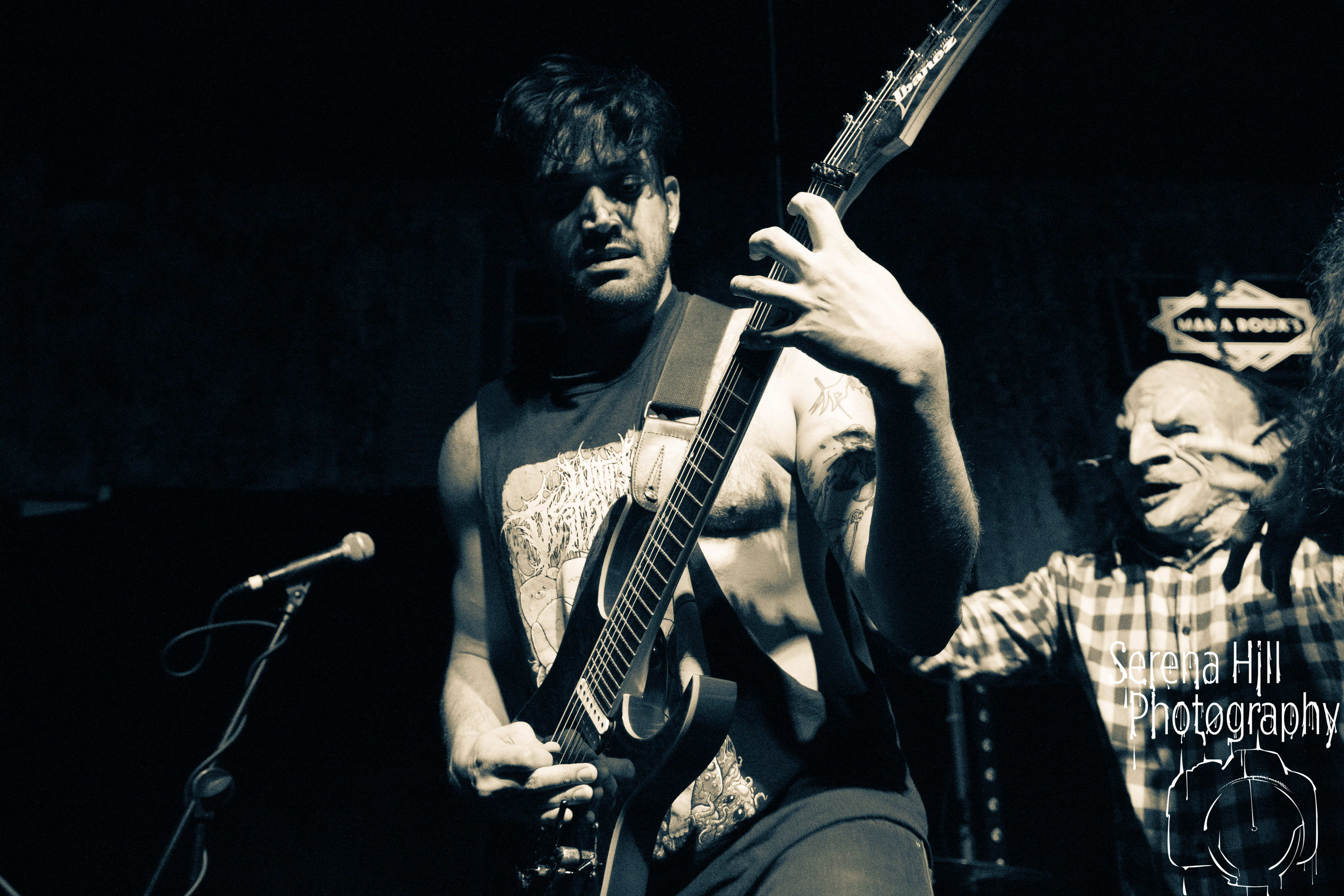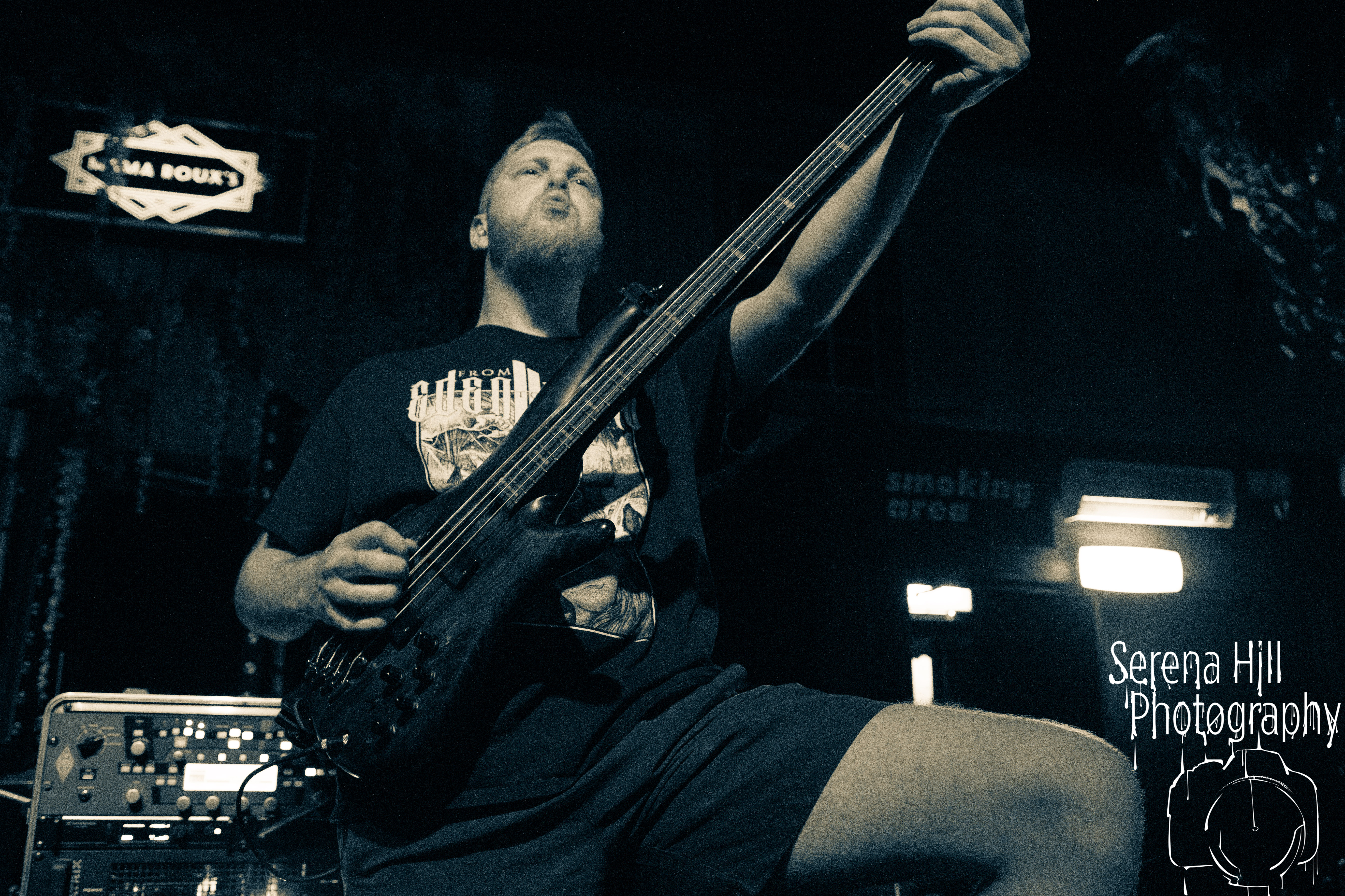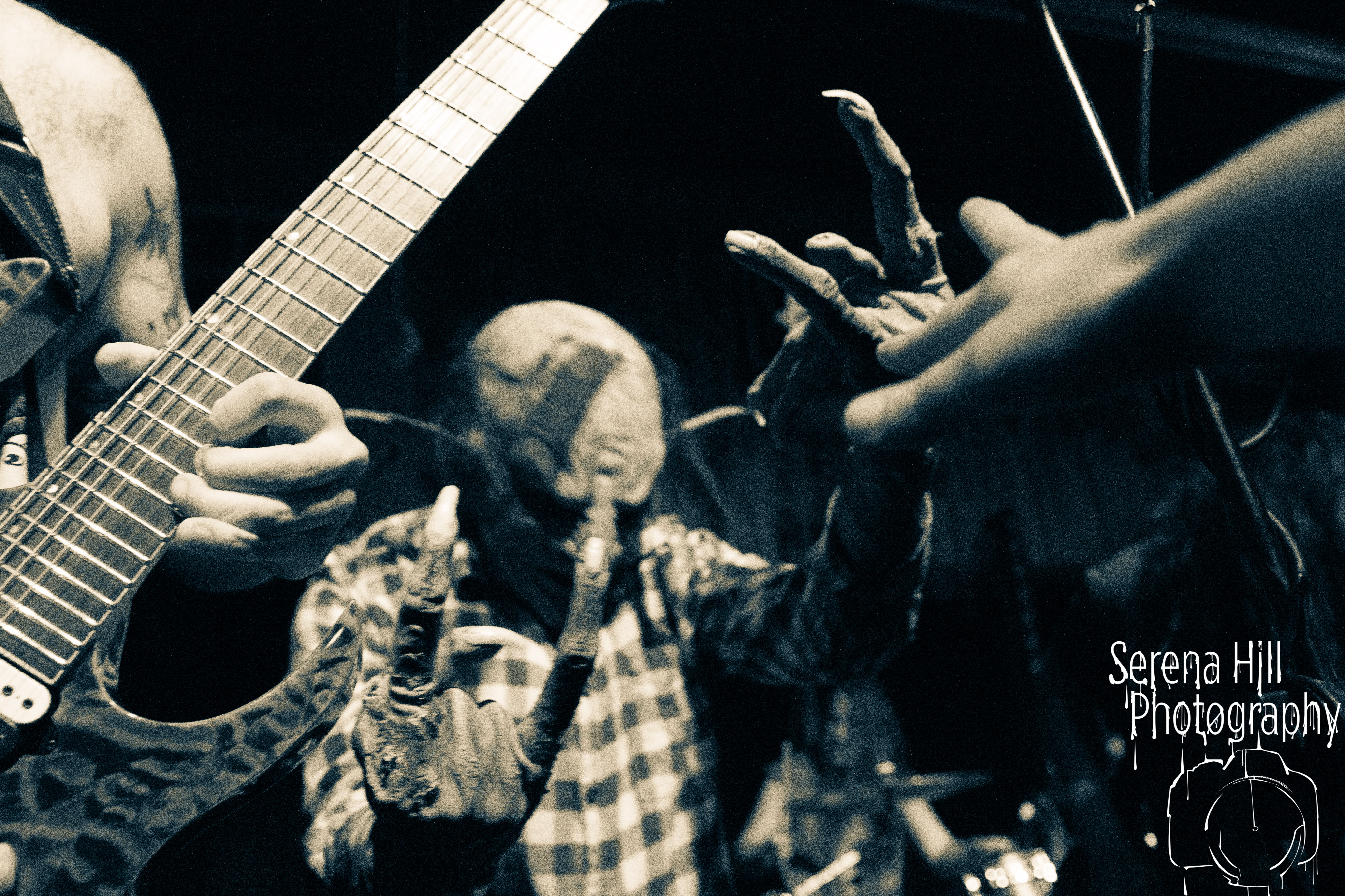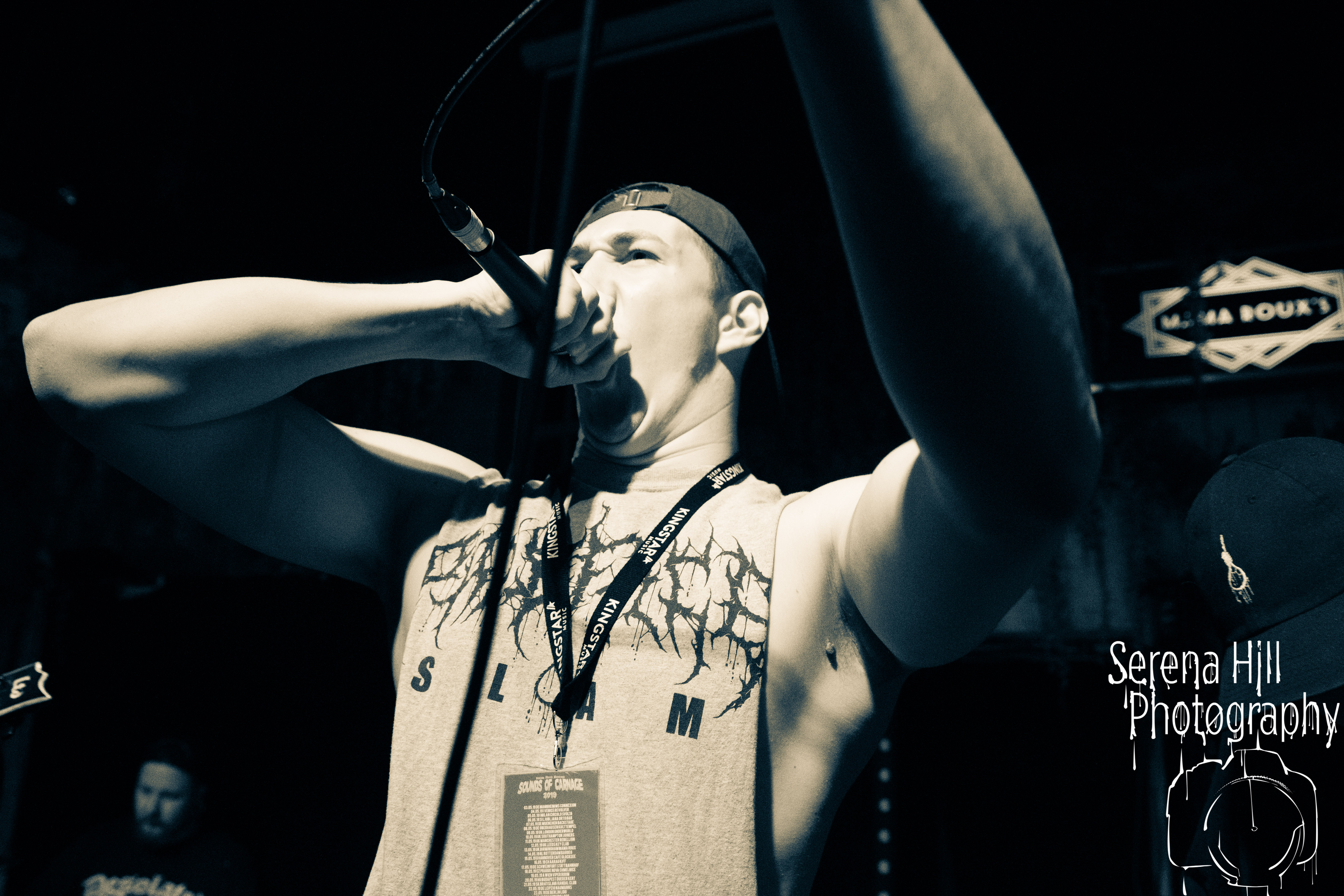 A brief scan of Mama Rouxs swelling floor reveals a sea of bodies sporting RINGS OF SATURN merch and as the extreme metal genre-benders hit the stage amidst a barrage of noise, the time has come to get extra-terrestrial. Unleashing an inhuman barrage of indecipherable screams amongst atonal guitar notes, demented riffs and propulsive drumming, Ian Bearer stomps, stalks and seethes over every inch of available space. The classic RINGS OF SATURN grooves are omnipresent along with the punishingly fast blastbeats, but the band’s progressive leanings bleed through the melodic refrains of Lalassu Xul. Senseless Massacre’s merciless shred-cum-slam opens the pits up whilst the playful, carnival-esque intro to Inadequate quickly segues into dirge-laden breakdowns and effortless transitions between low-end gutturals and pig squeals. It is however, guitarist Yo Onityan who might just steal the show via some of the most fluid and clean sweeping we’ve witnessed at a live show and this rapt crowd are quickly transported to 7-string heaven. The cosmos remains RINGS OF SATURNS’s proverbial oyster.
