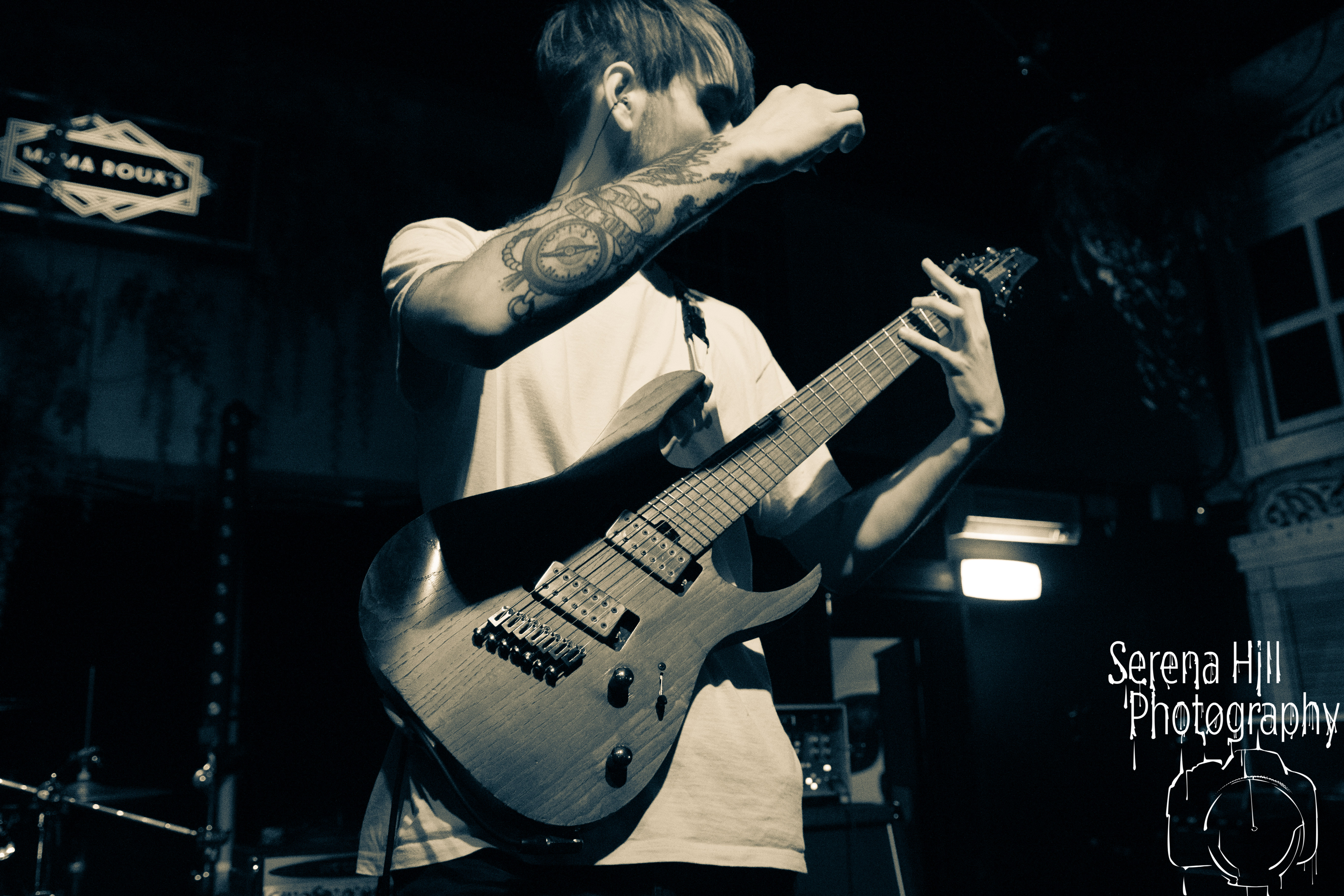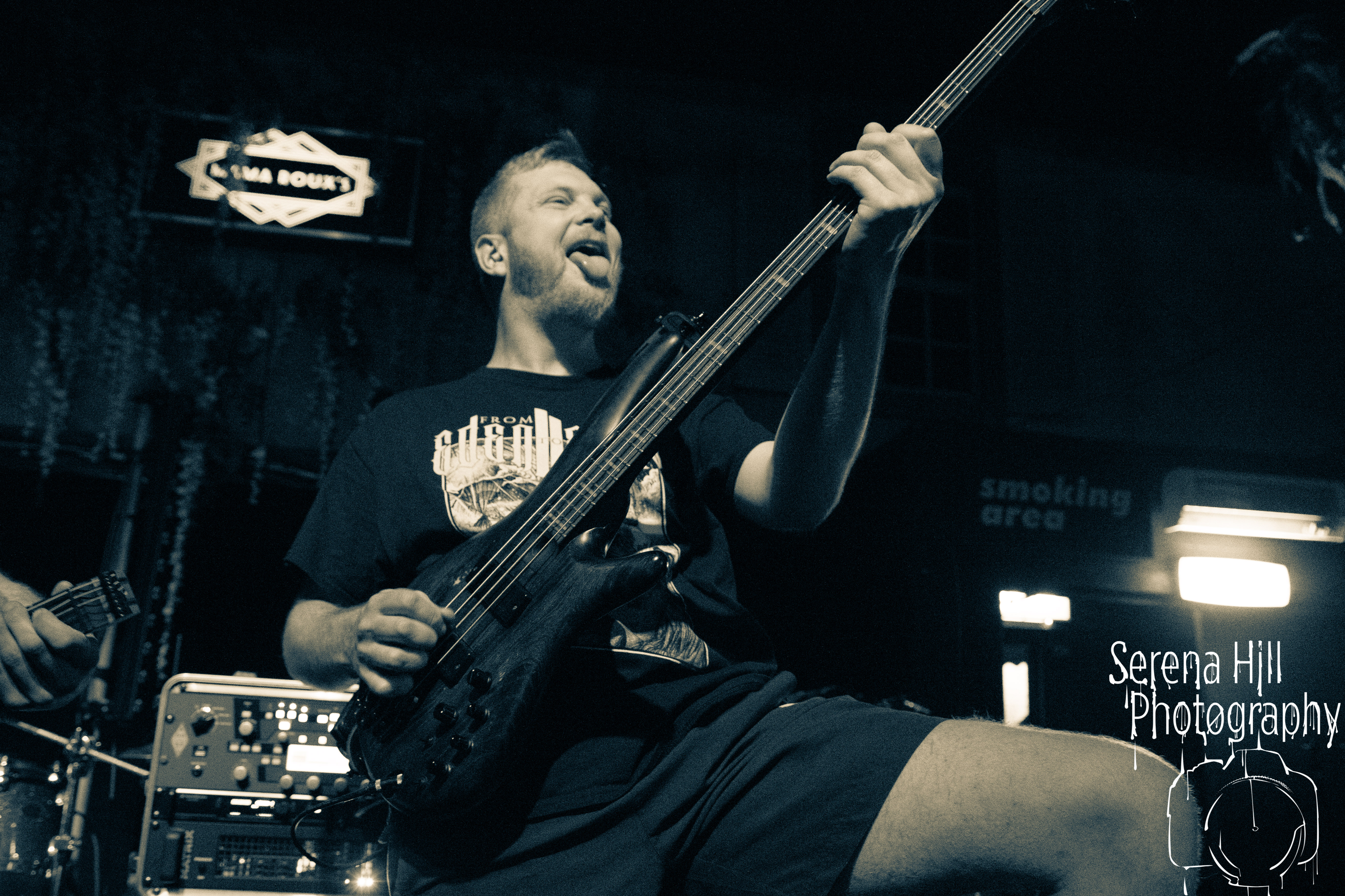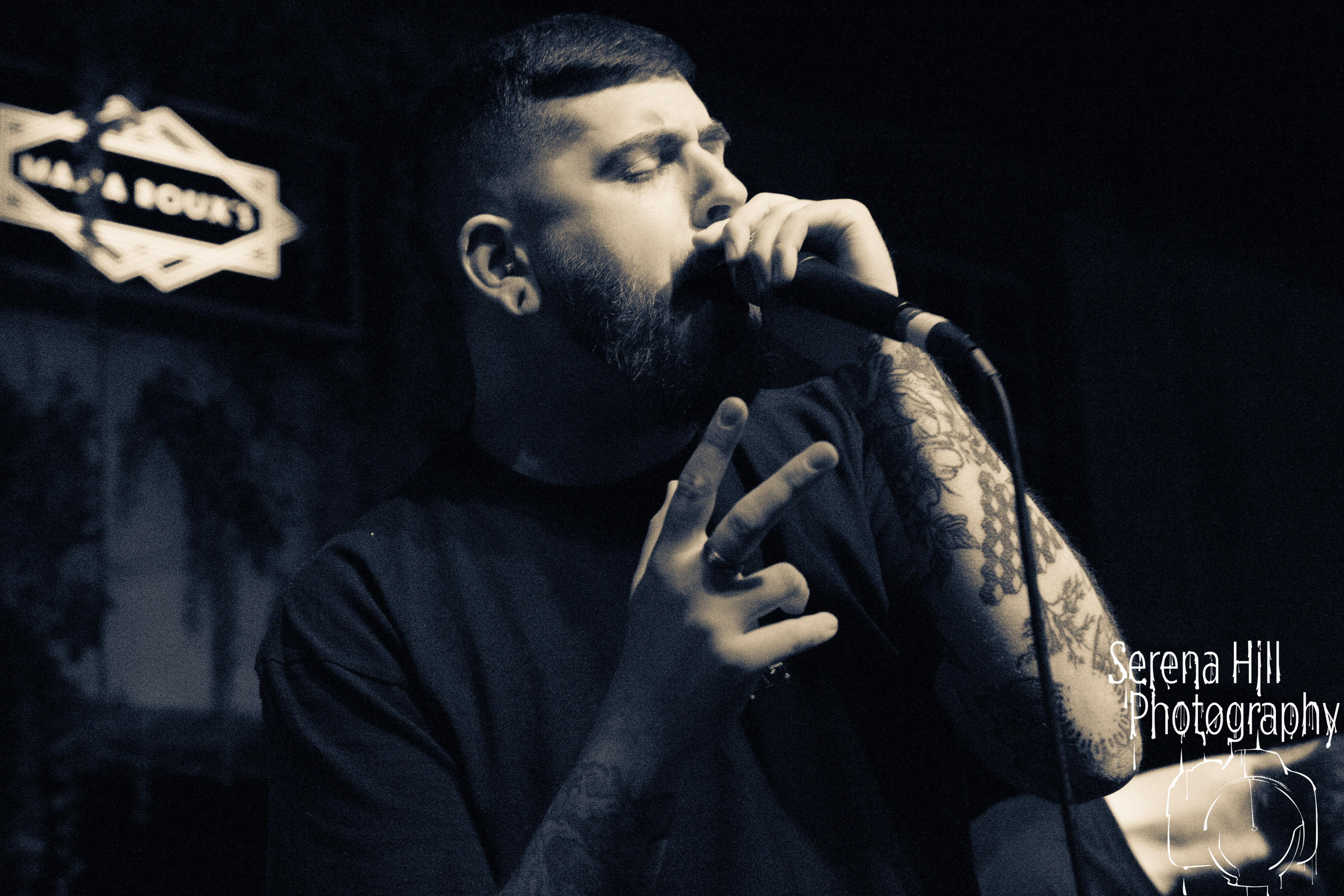 A brief scan of Mama Rouxs swelling floor reveals a sea of bodies sporting RINGS OF SATURN merch and as the extreme metal genre-benders hit the stage amidst a barrage of noise, the time has come to get extra-terrestrial. Unleashing an inhuman barrage of indecipherable screams amongst atonal guitar notes, demented riffs and propulsive drumming, Ian Bearer stomps, stalks and seethes over every inch of available space. The classic RINGS OF SATURN grooves are omnipresent along with the punishingly fast blastbeats, but the band’s progressive leanings bleed through the melodic refrains of Lalassu Xul. Senseless Massacre’s merciless shred-cum-slam opens the pits up whilst the playful, carnival-esque intro to Inadequate quickly segues into dirge-laden breakdowns and effortless transitions between low-end gutturals and pig squeals. It is however, guitarist Yo Onityan who might just steal the show via some of the most fluid and clean sweeping we’ve witnessed at a live show and this rapt crowd are quickly transported to 7-string heaven. The cosmos remains RINGS OF SATURNS’s proverbial oyster.