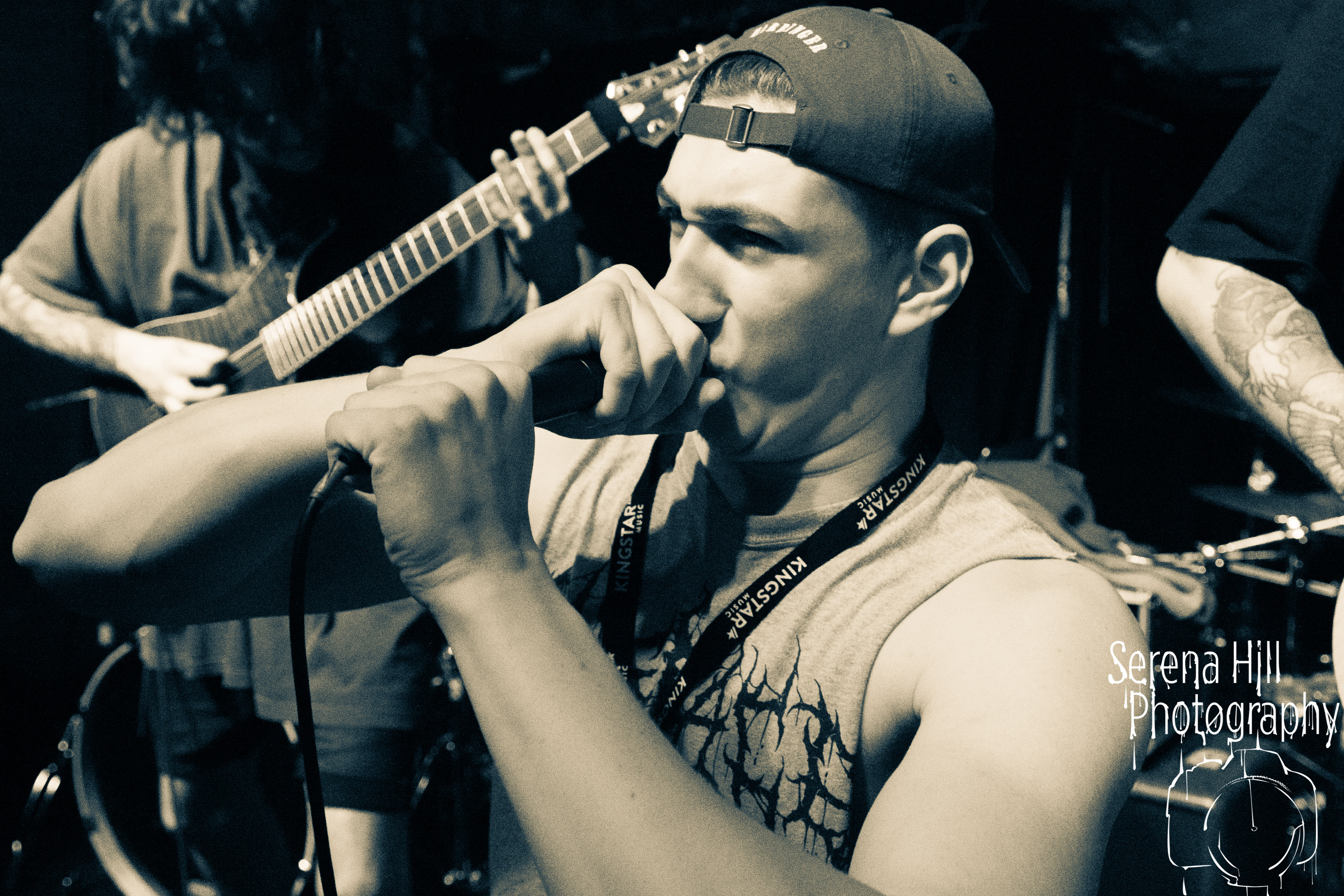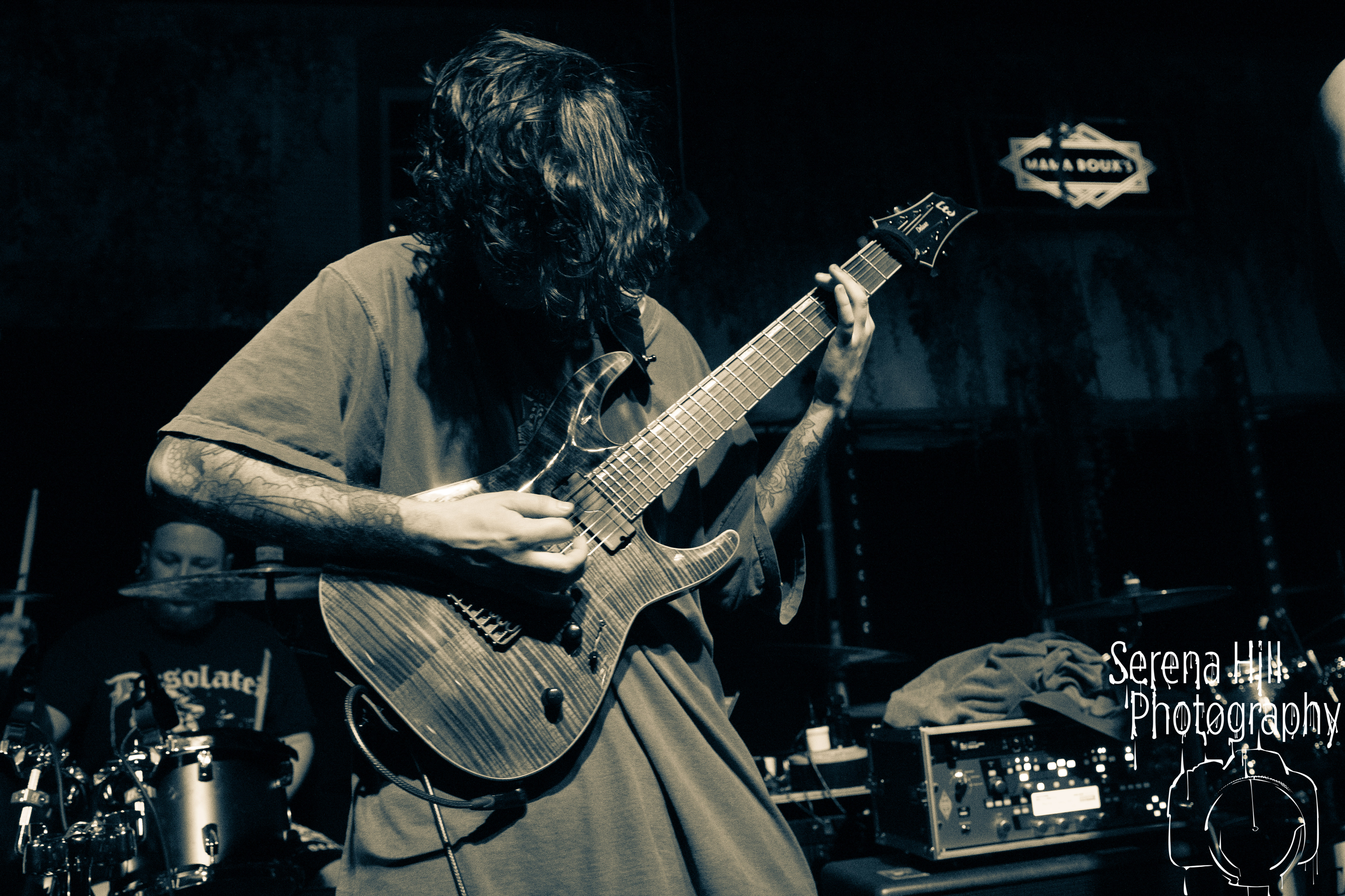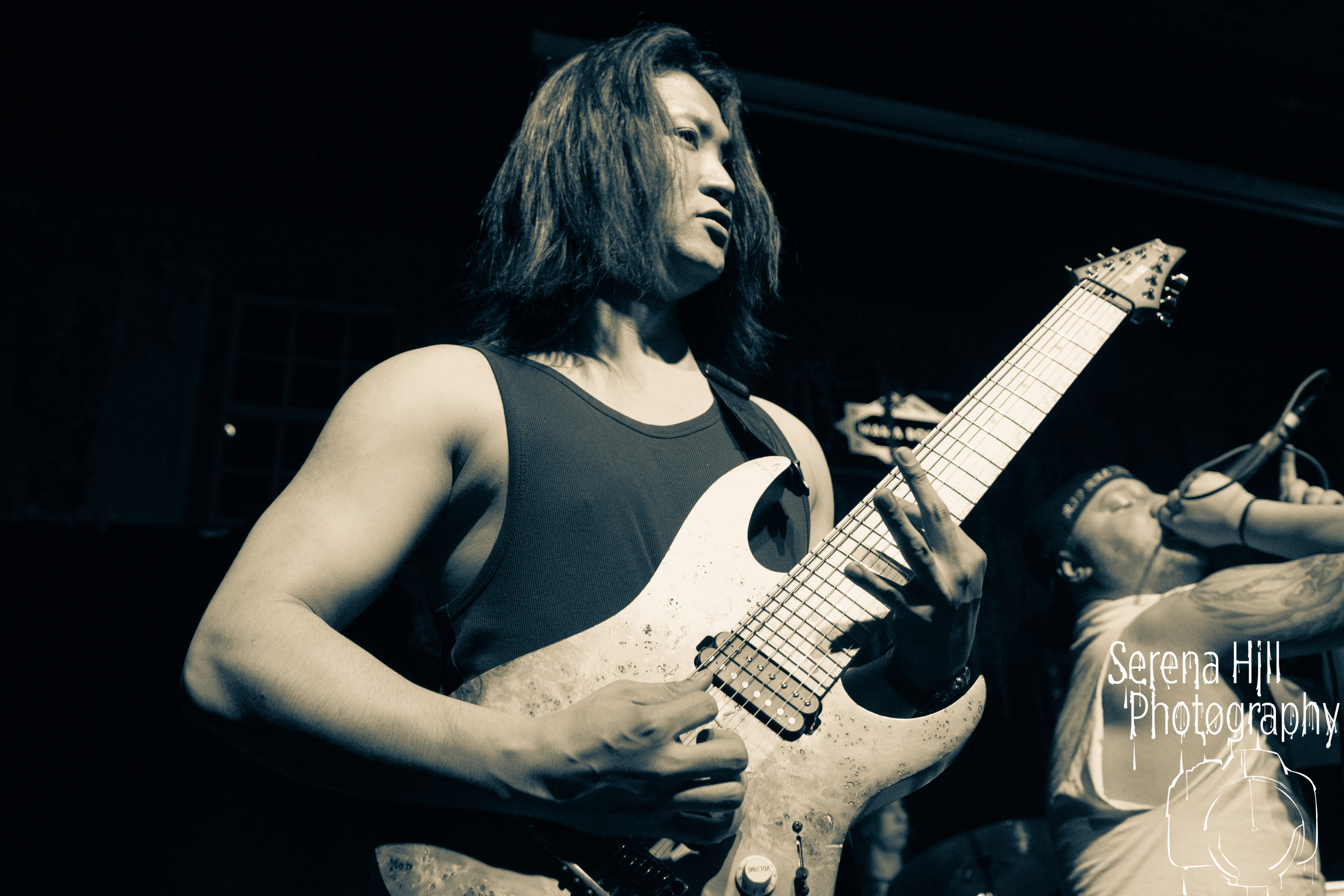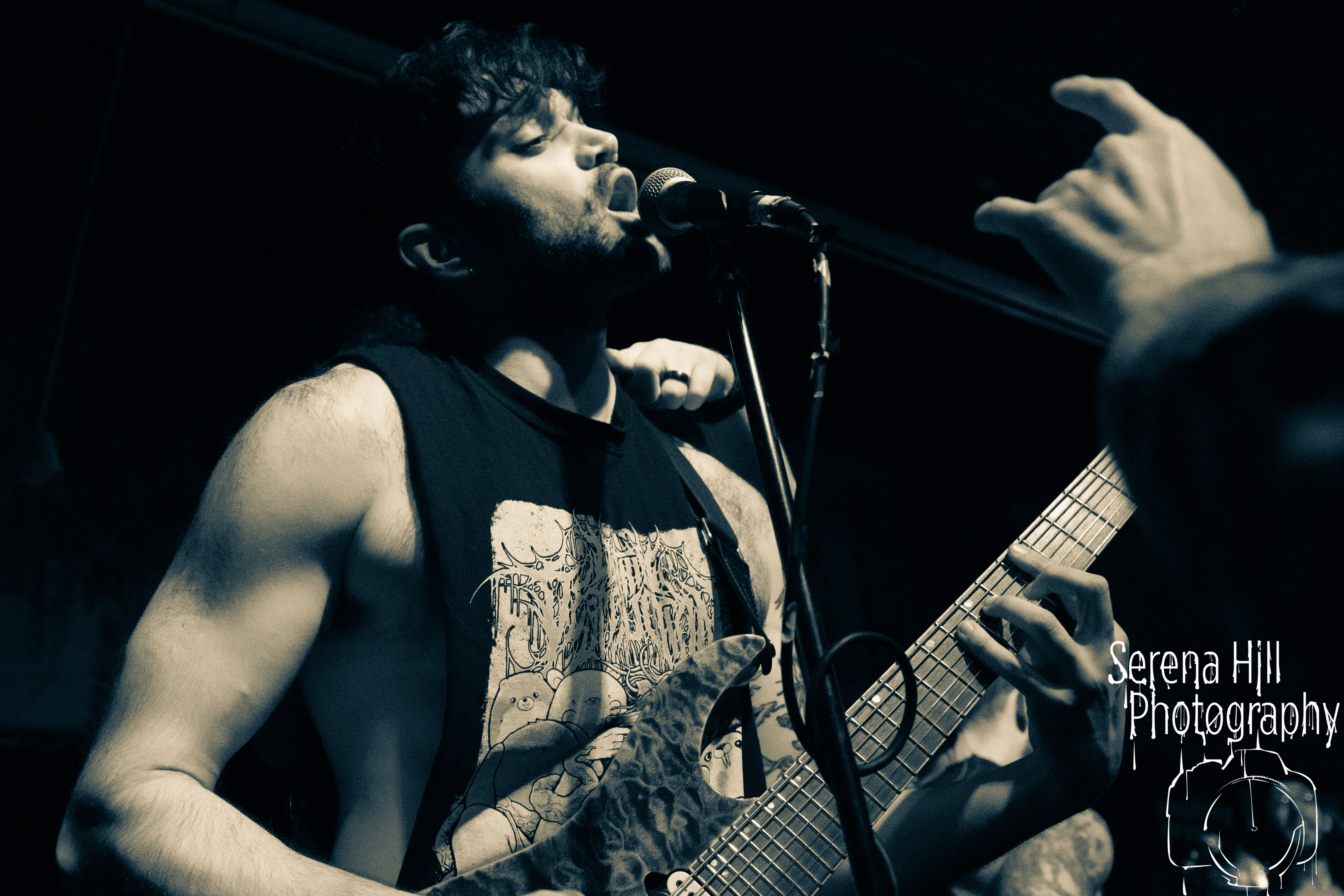 A brief scan of Mama Rouxs swelling floor reveals a sea of bodies sporting RINGS OF SATURN merch and as the extreme metal genre-benders hit the stage amidst a barrage of noise, the time has come to get extra-terrestrial. Unleashing an inhuman barrage of indecipherable screams amongst atonal guitar notes, demented riffs and propulsive drumming, Ian Bearer stomps, stalks and seethes over every inch of available space. The classic RINGS OF SATURN grooves are omnipresent along with the punishingly fast blastbeats, but the band’s progressive leanings bleed through the melodic refrains of Lalassu Xul. Senseless Massacre’s merciless shred-cum-slam opens the pits up whilst the playful, carnival-esque intro to Inadequate quickly segues into dirge-laden breakdowns and effortless transitions between low-end gutturals and pig squeals. It is however, guitarist Yo Onityan who might just steal the show via some of the most fluid and clean sweeping we’ve witnessed at a live show and this rapt crowd are quickly transported to 7-string heaven. The cosmos remains RINGS OF SATURNS’s proverbial oyster.