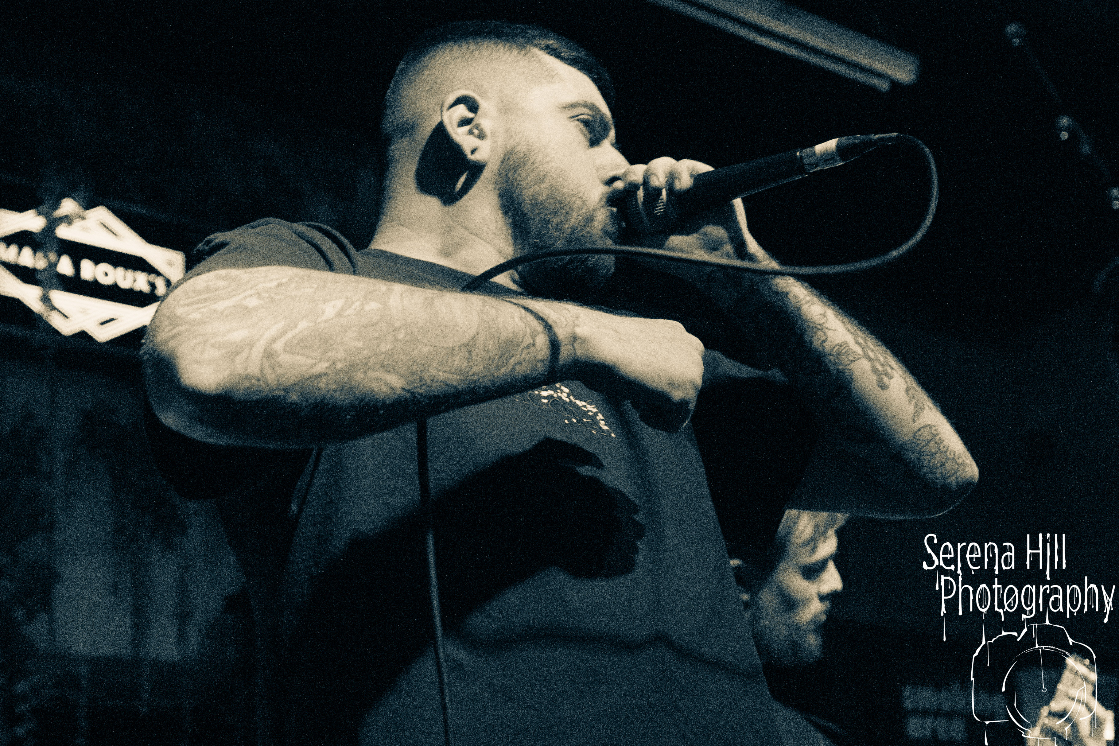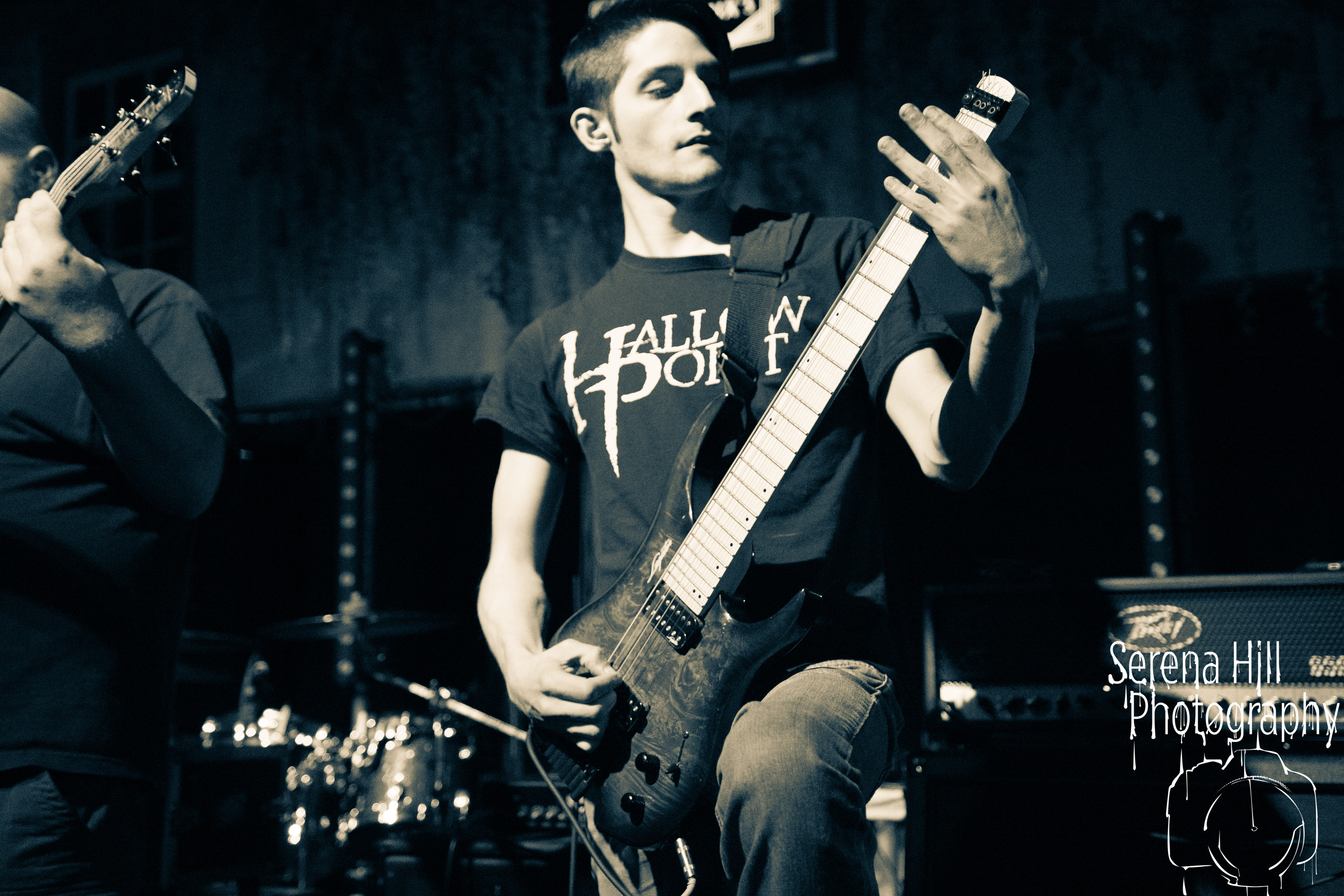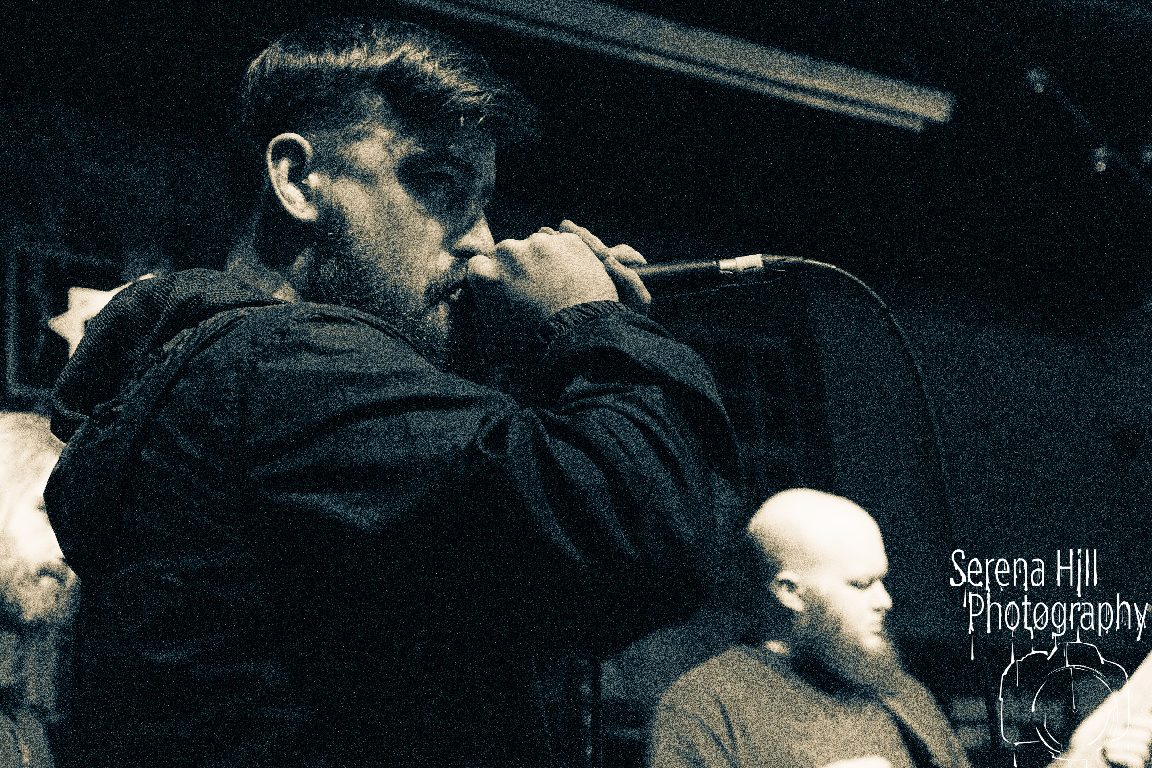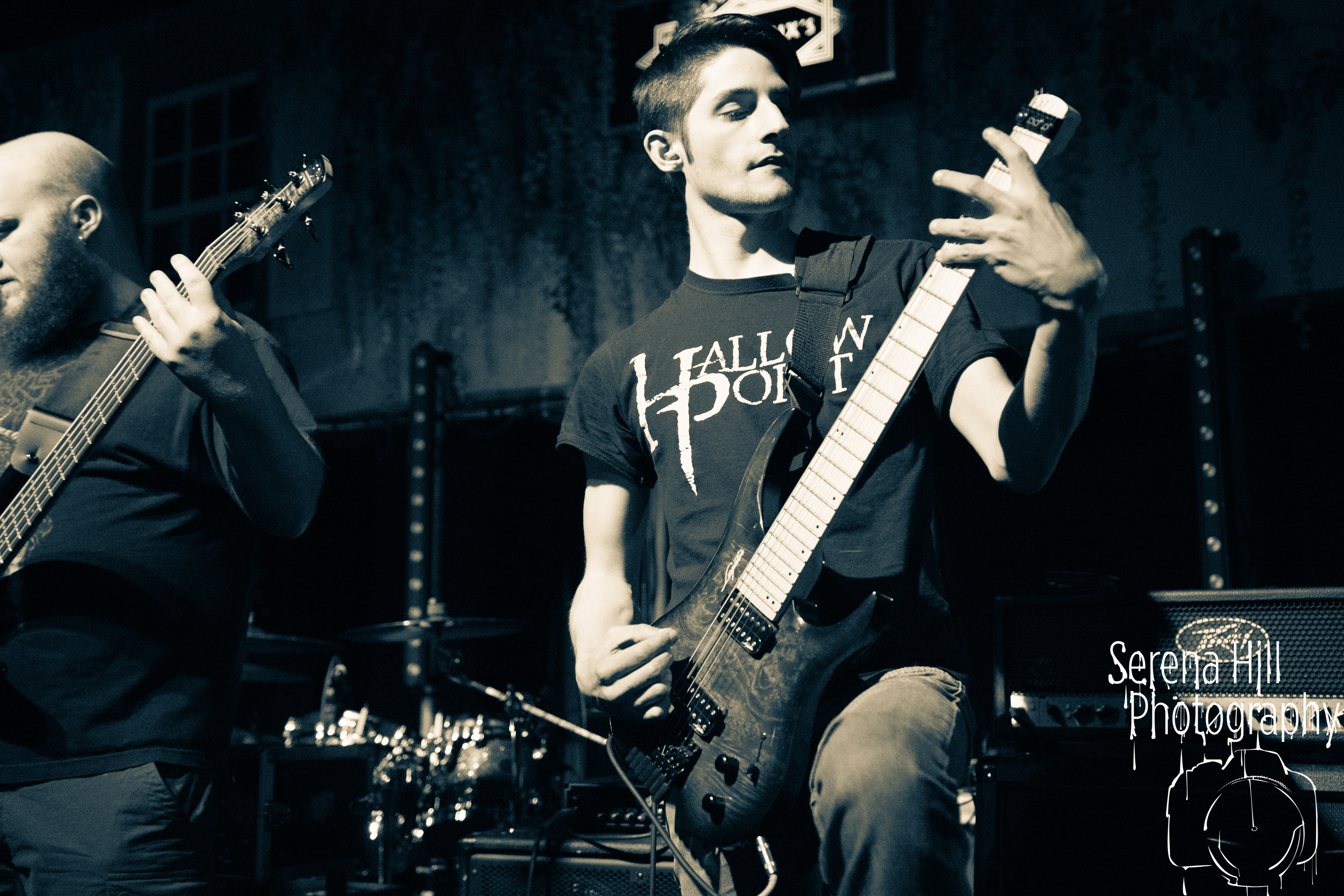 If past appearances suggested they were poised to morph from a promising underground act into titans of the flourishing UK tech-metal scene, then HARBINGER’s performance tonight confirms it. The turnout is modest – the curse of early doors – but Thom Gardener’s impassioned cry of “bang your fucking heads Birmingham!” is obeyed by every single punter gathered around the rumbling stage. The mercury shoots as this London five-piece proceed to roll out a blistering arsenal of riff-drenched maelstrom combining intricate technicality and ferocious rhythms punctuated by sporadic bursts of enticing melodies. Darkest Days’ throat-ripping proclivities see the band talisman practically turn himself inside out due to the sheer blunt force trauma, but there’s an unmistakable sense of refinement bursting forth from the five brand-new tracks being showcased from debut full-length Compelled To Suffer. Both The Dance of Species and Descendants employ the kind of reverberating riffs plucked straight from the depths of hell, but The Awakening bleeds with atmospheric depth whilst the vitriolic squall of The Fear of Sorrow is tempered by accessible choruses and intricate guitar layers. The skill and execution exhibited tonight is astonishing and the set’s sonic heft is monstrous – if HARBINGER continue down this bludgeoning path they might just barge past the competition on their way to the upper echelons of modern metal.