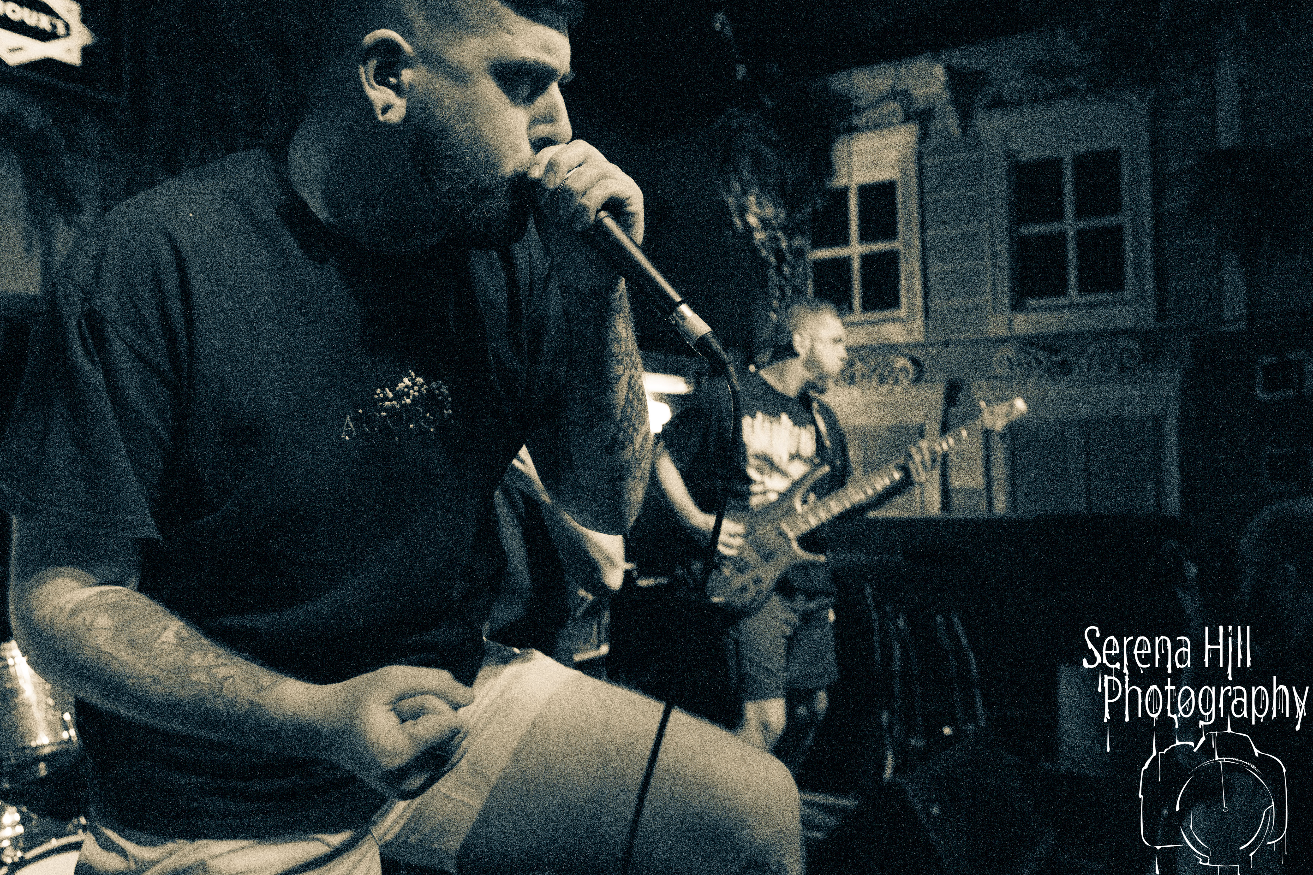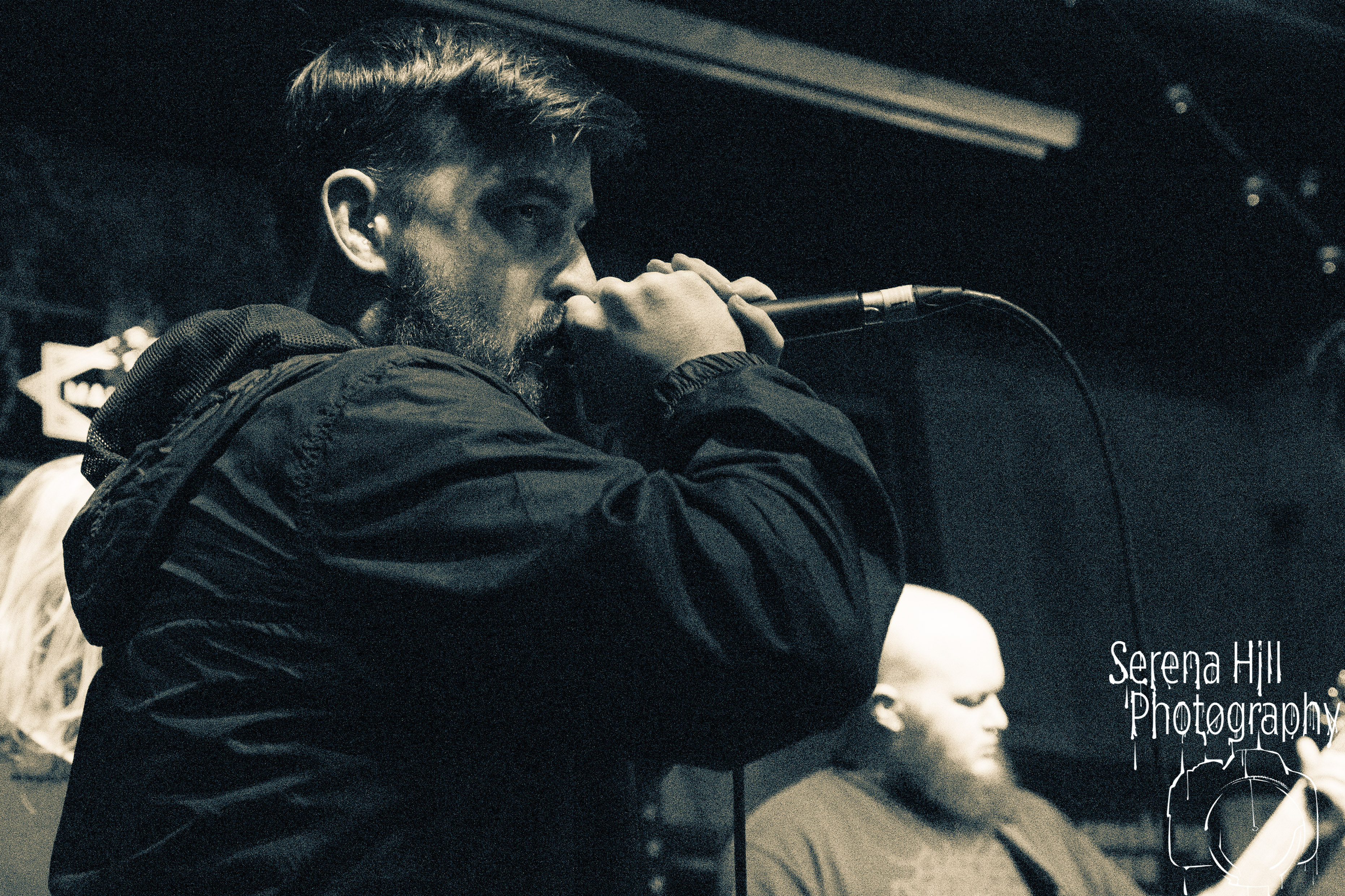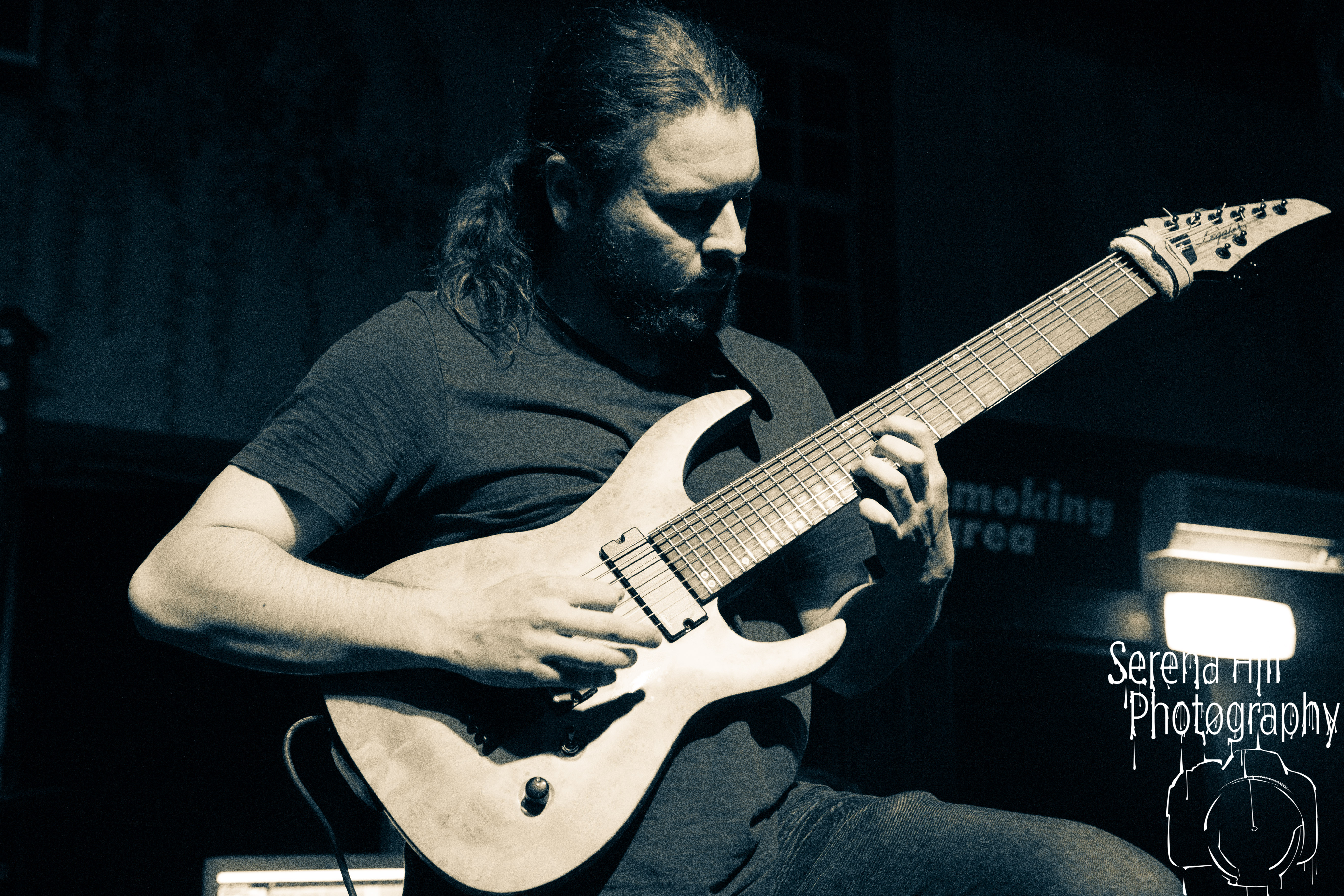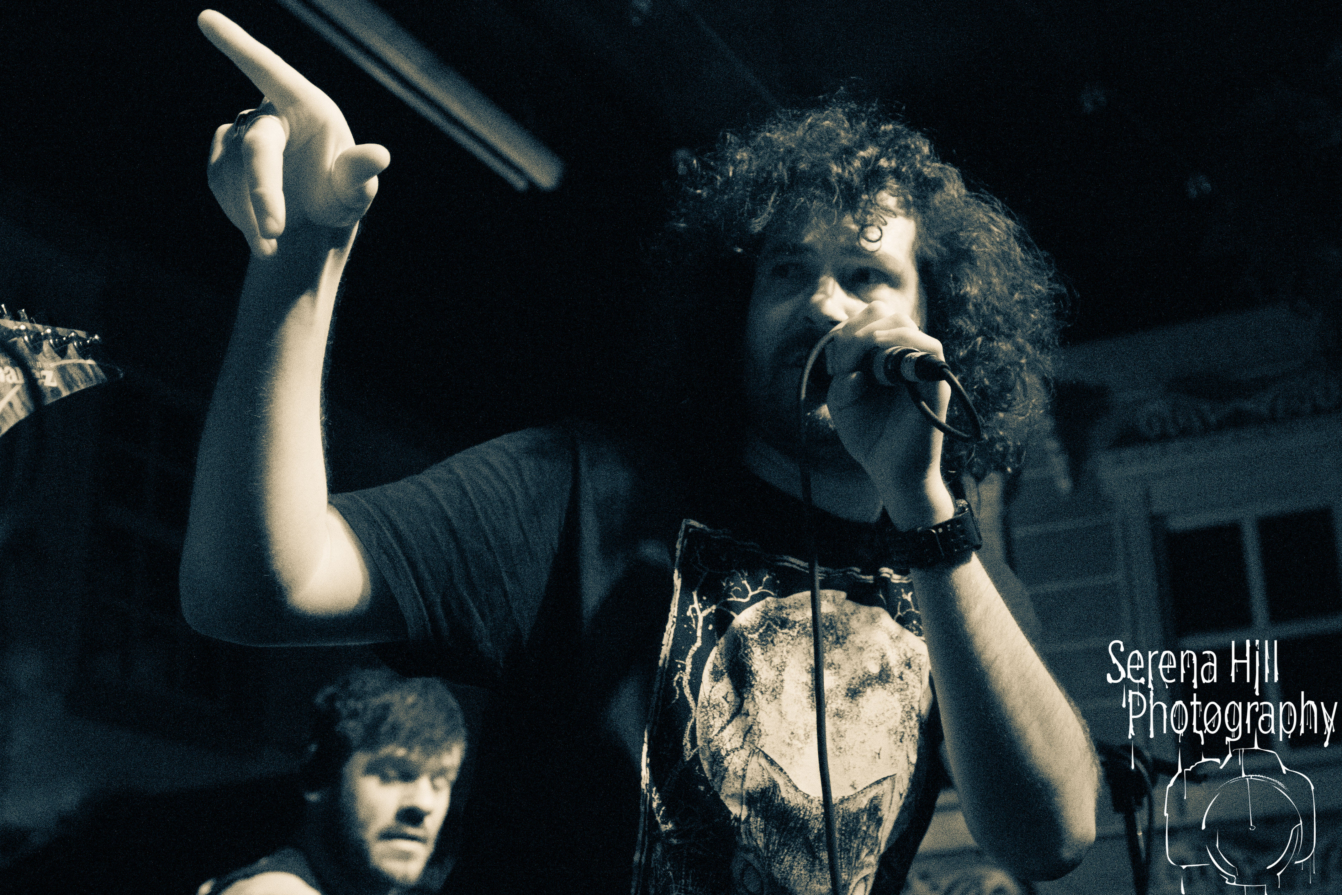 If past appearances suggested they were poised to morph from a promising underground act into titans of the flourishing UK tech-metal scene, then HARBINGER’s performance tonight confirms it. The turnout is modest – the curse of early doors – but Thom Gardener’s impassioned cry of “bang your fucking heads Birmingham!” is obeyed by every single punter gathered around the rumbling stage. The mercury shoots as this London five-piece proceed to roll out a blistering arsenal of riff-drenched maelstrom combining intricate technicality and ferocious rhythms punctuated by sporadic bursts of enticing melodies. Darkest Days’ throat-ripping proclivities see the band talisman practically turn himself inside out due to the sheer blunt force trauma, but there’s an unmistakable sense of refinement bursting forth from the five brand-new tracks being showcased from debut full-length Compelled To Suffer. Both The Dance of Species and Descendants employ the kind of reverberating riffs plucked straight from the depths of hell, but The Awakening bleeds with atmospheric depth whilst the vitriolic squall of The Fear of Sorrow is tempered by accessible choruses and intricate guitar layers. The skill and execution exhibited tonight is astonishing and the set’s sonic heft is monstrous – if HARBINGER continue down this bludgeoning path they might just barge past the competition on their way to the upper echelons of modern metal.