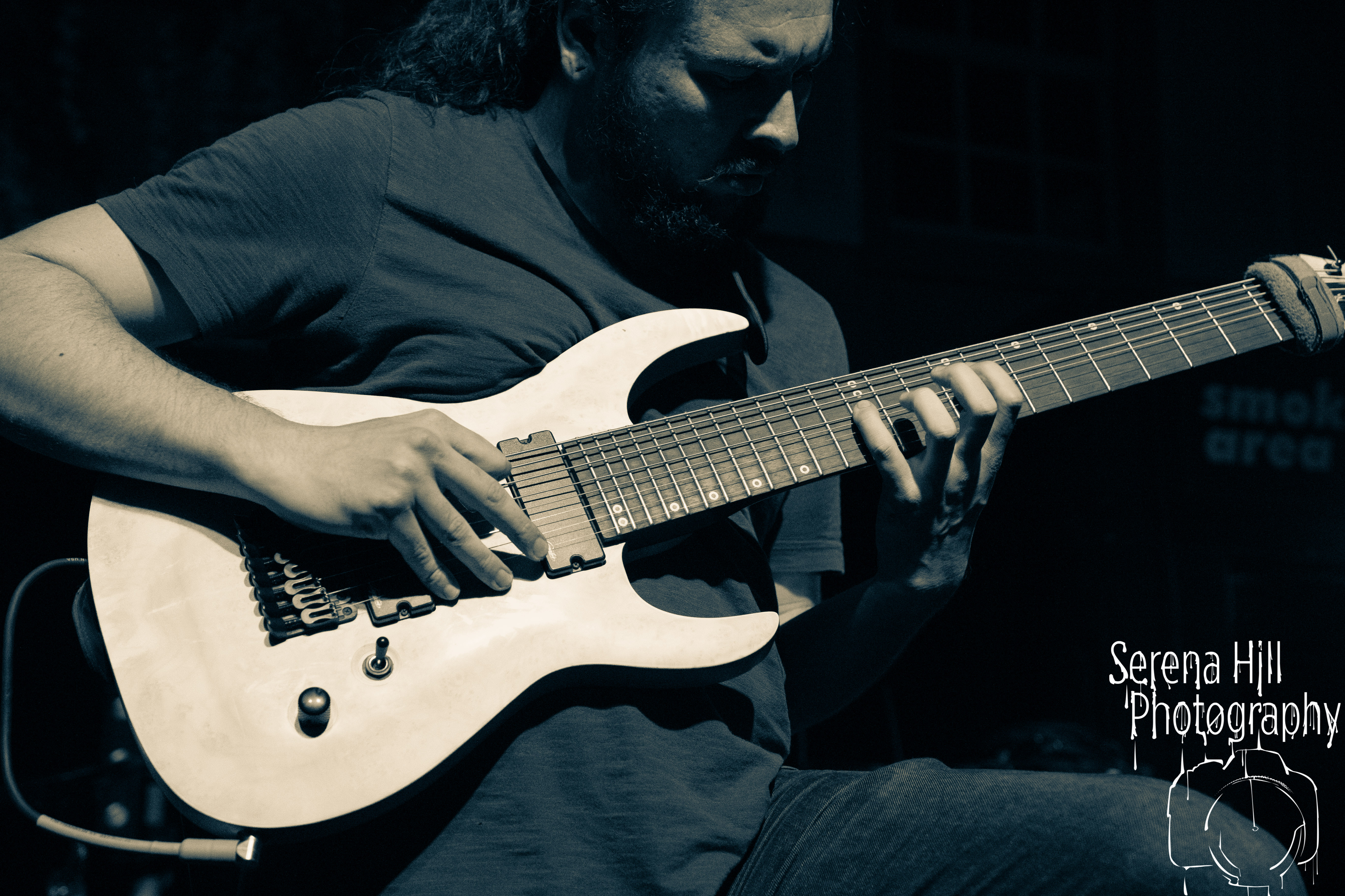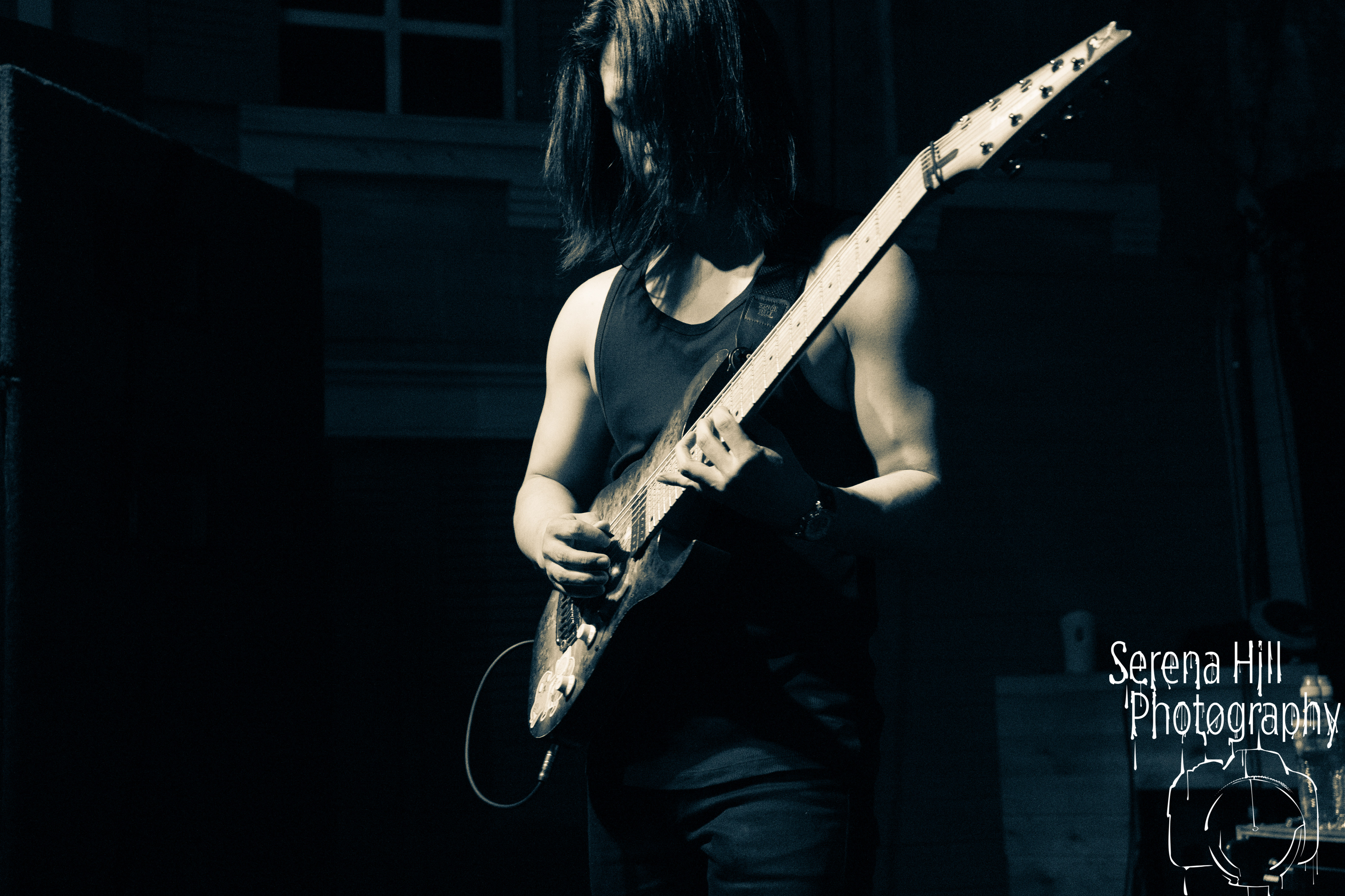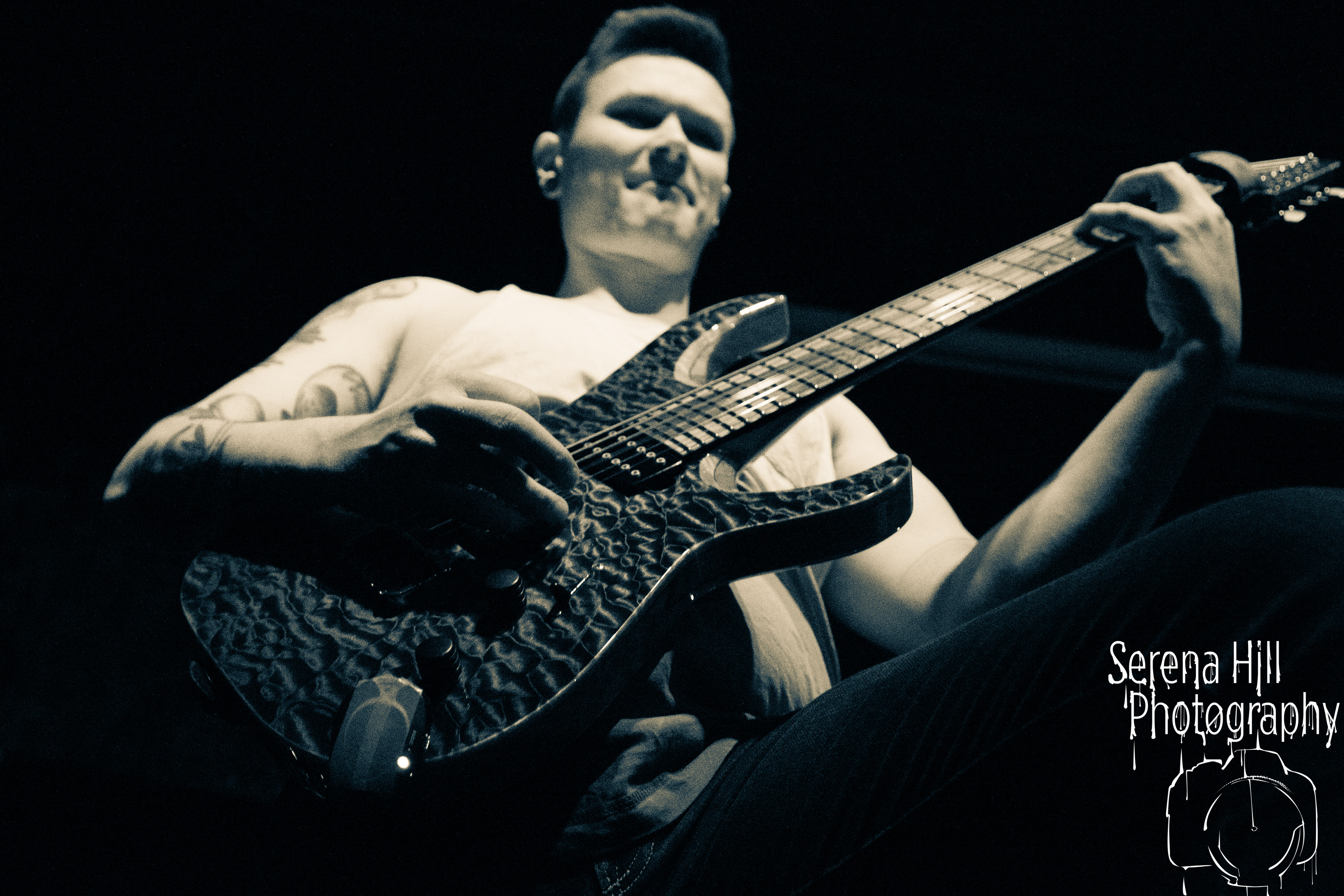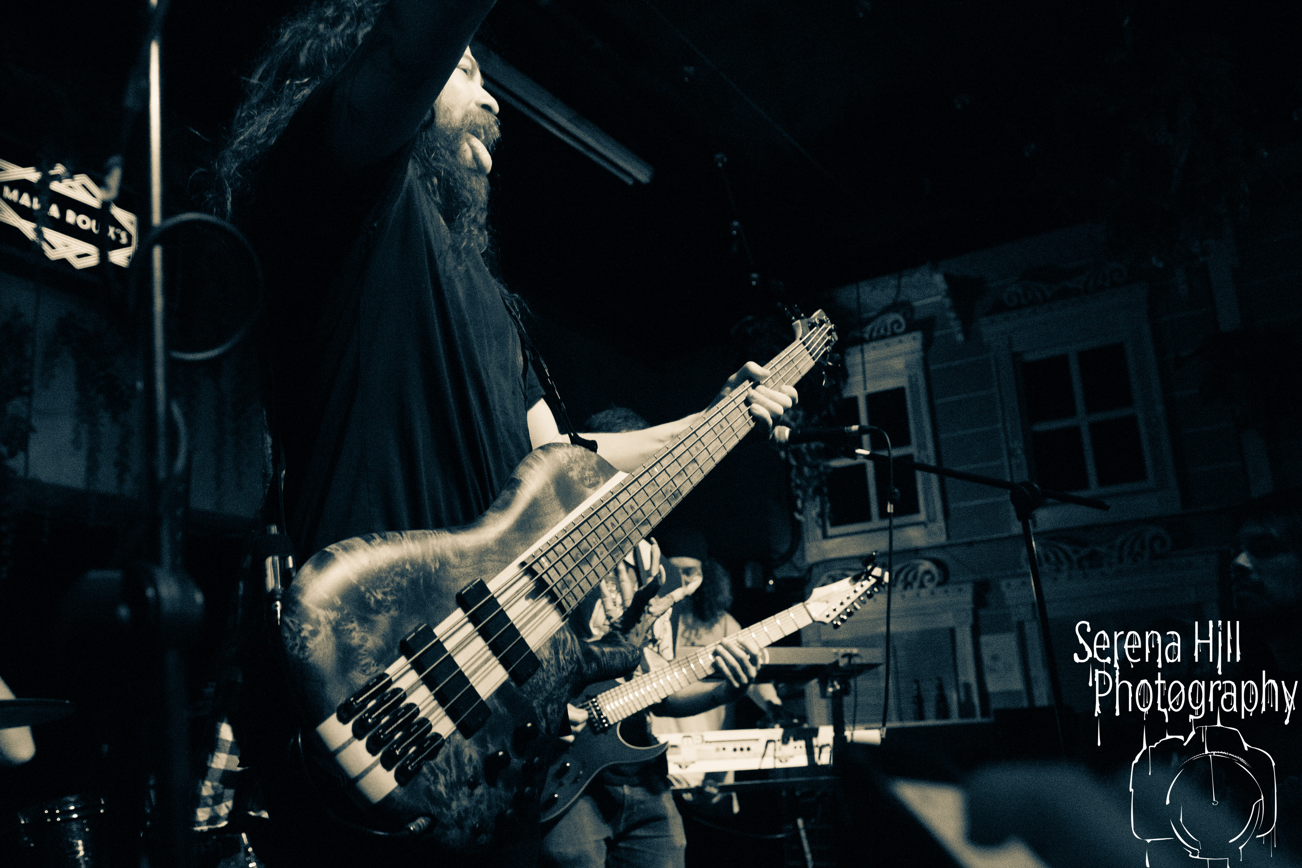 If past appearances suggested they were poised to morph from a promising underground act into titans of the flourishing UK tech-metal scene, then HARBINGER’s performance tonight confirms it. The turnout is modest – the curse of early doors – but Thom Gardener’s impassioned cry of “bang your fucking heads Birmingham!” is obeyed by every single punter gathered around the rumbling stage. The mercury shoots as this London five-piece proceed to roll out a blistering arsenal of riff-drenched maelstrom combining intricate technicality and ferocious rhythms punctuated by sporadic bursts of enticing melodies. Darkest Days’ throat-ripping proclivities see the band talisman practically turn himself inside out due to the sheer blunt force trauma, but there’s an unmistakable sense of refinement bursting forth from the five brand-new tracks being showcased from debut full-length Compelled To Suffer. Both The Dance of Species and Descendants employ the kind of reverberating riffs plucked straight from the depths of hell, but The Awakening bleeds with atmospheric depth whilst the vitriolic squall of The Fear of Sorrow is tempered by accessible choruses and intricate guitar layers. The skill and execution exhibited tonight is astonishing and the set’s sonic heft is monstrous – if HARBINGER continue down this bludgeoning path they might just barge past the competition on their way to the upper echelons of modern metal.