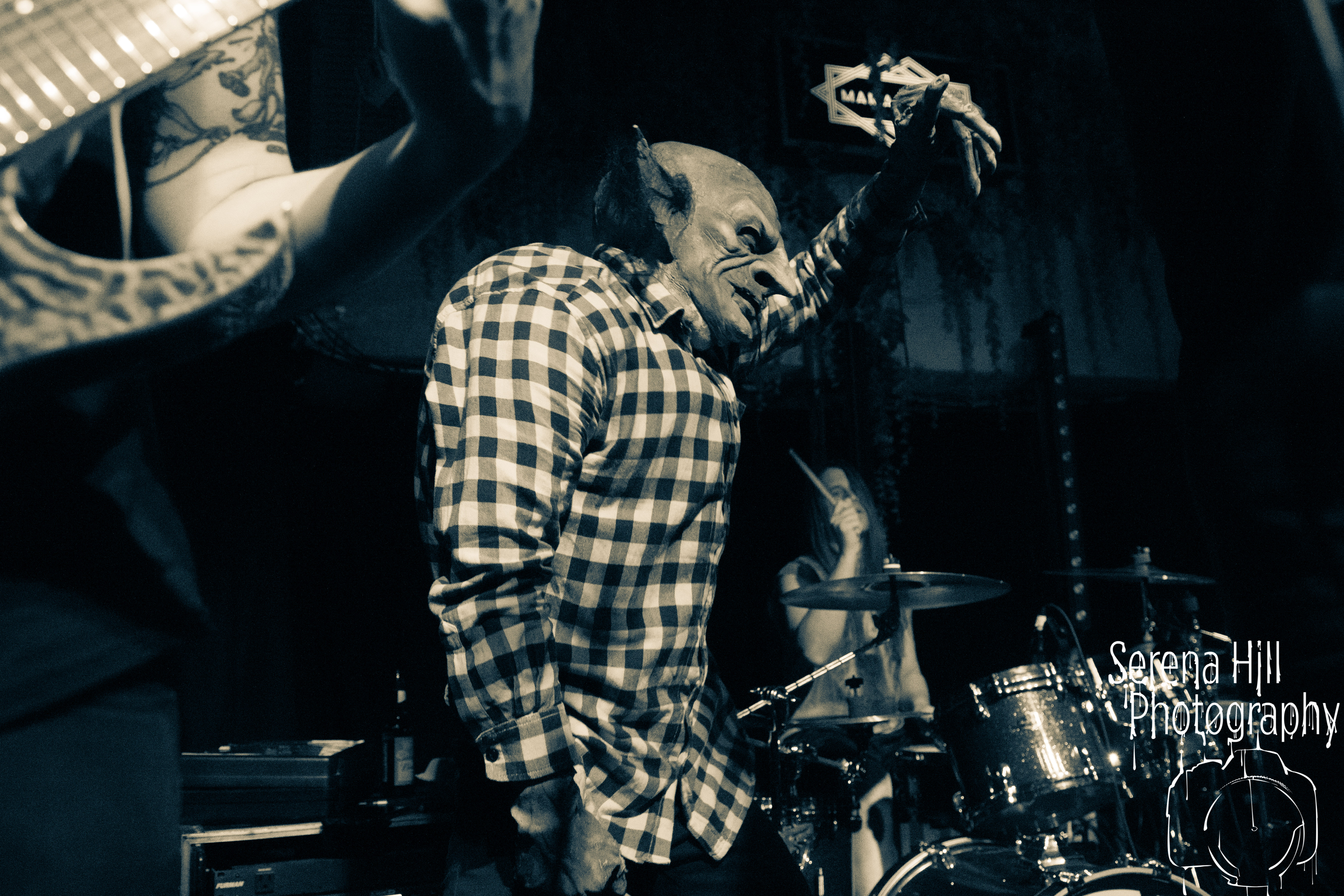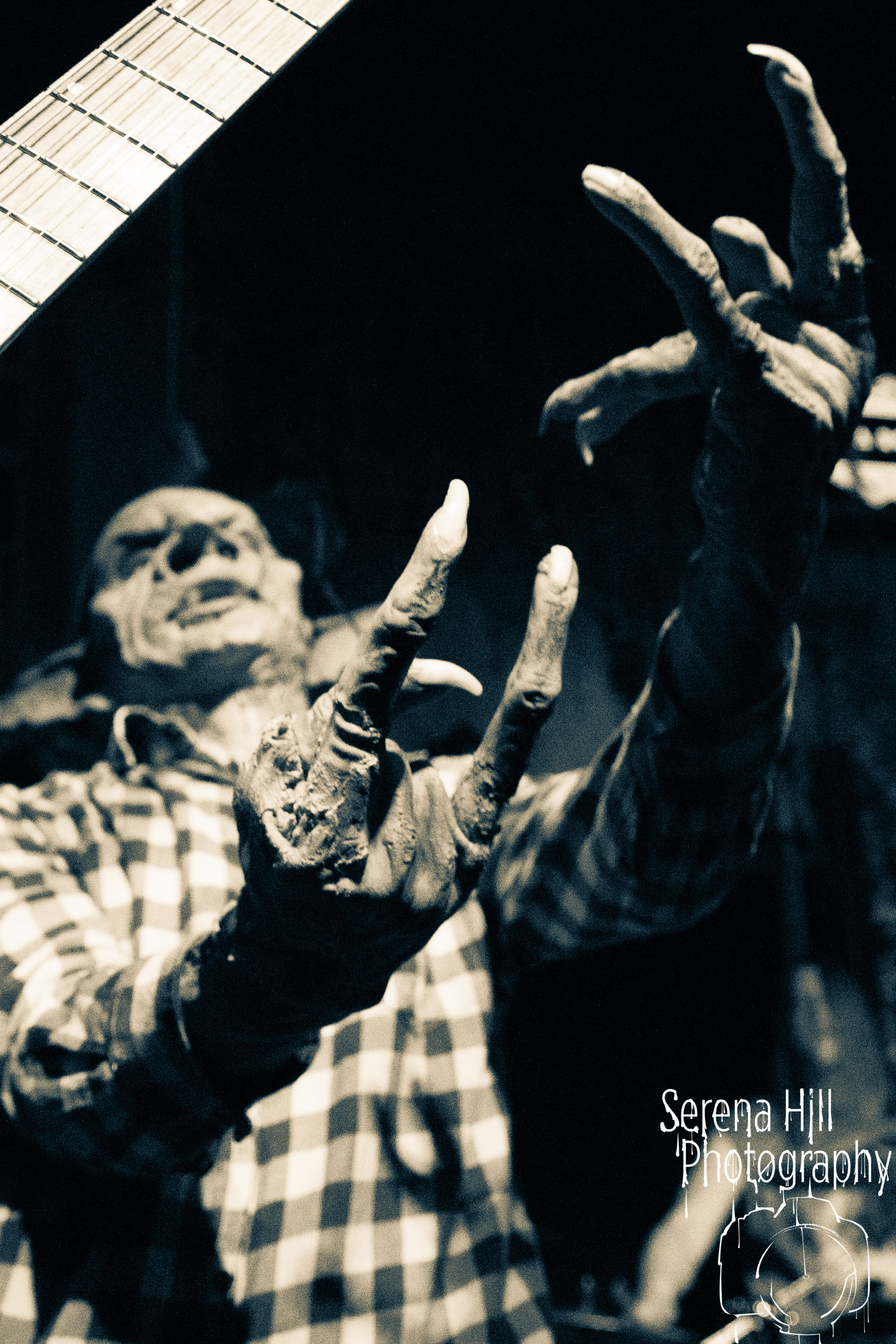 Barely contained chaos. A goblin playing air guitar on what appears to be an oversized house plant. Guitarists running amok in the crowd whilst songs about mythical creatures are unleashed with unashamed glee. Ladies and gentlemen, welcome to bonkers and the stench-filled world of LA’s NEKROGOBLIKON. Granted, the novelty aspect is obvious but the visual schtick works because the melodeath sextet have the legitimate musical chops to back it up. Nicholas ‘Scorpion’ Von Doom veers wildly between vitriolic barks and operatic wails as a rabid opening salvo of Dressed As Goblins and Row elevates the madness to new levels. Bodies bounce along to huge choruses, synth-inflected riffs and galvanising solos that showcase the rhythm section’s technical abilities as well as their penchant for silliness. The balance between the two is perfectly illustrated during the compulsive stomp of No One Survives – the mid-track dance break (led by a maniacally clapping John Goblikon) briefly transforming the whirling room into a giant rave. Swirling melodies are interspersed with furious blastbeats before a crushing rendition of boisterous hit Powercore closes out a set dedicated to unbridled aural carnage. Goblincore is alive and kicking in Birmingham tonight.