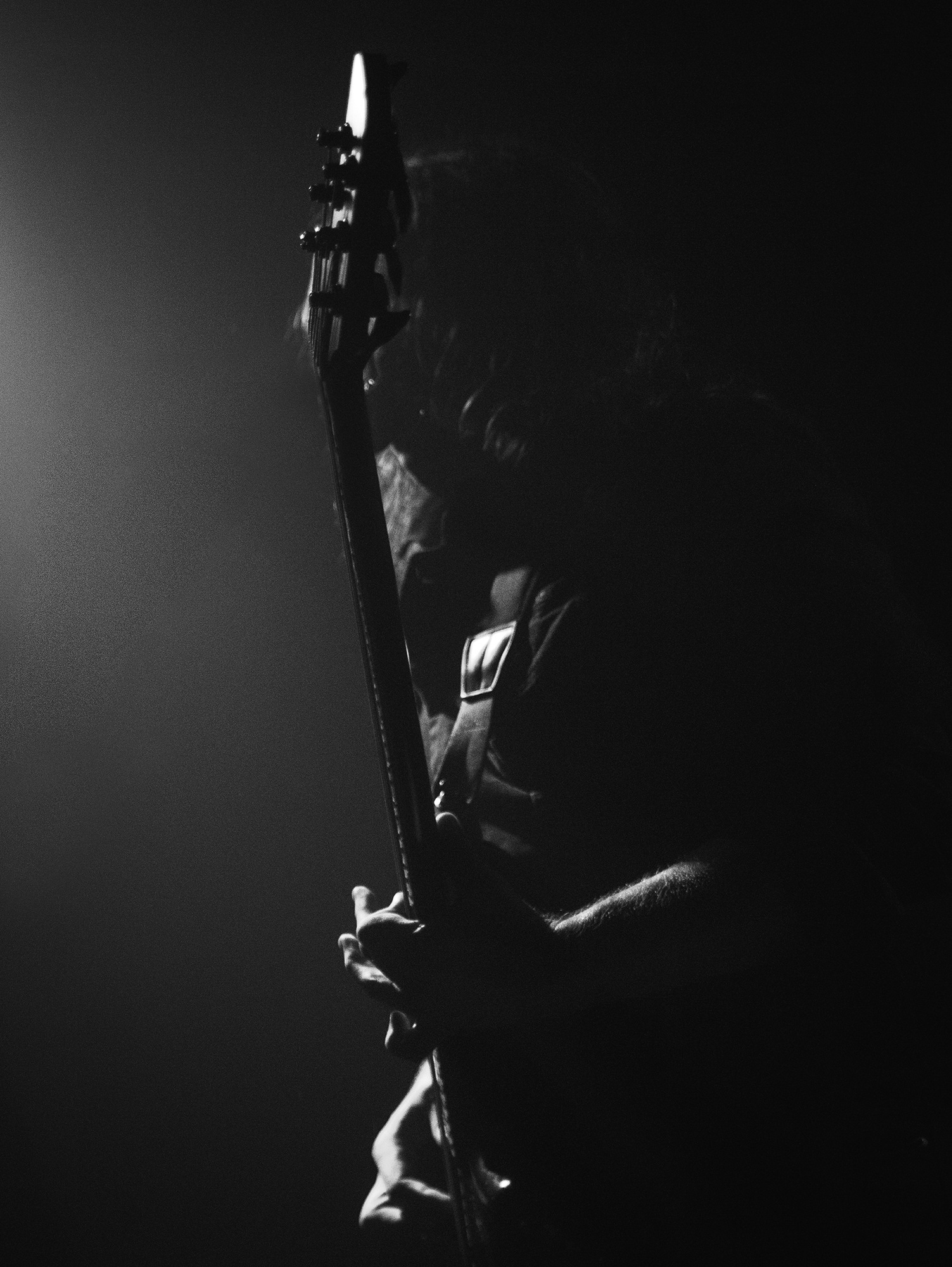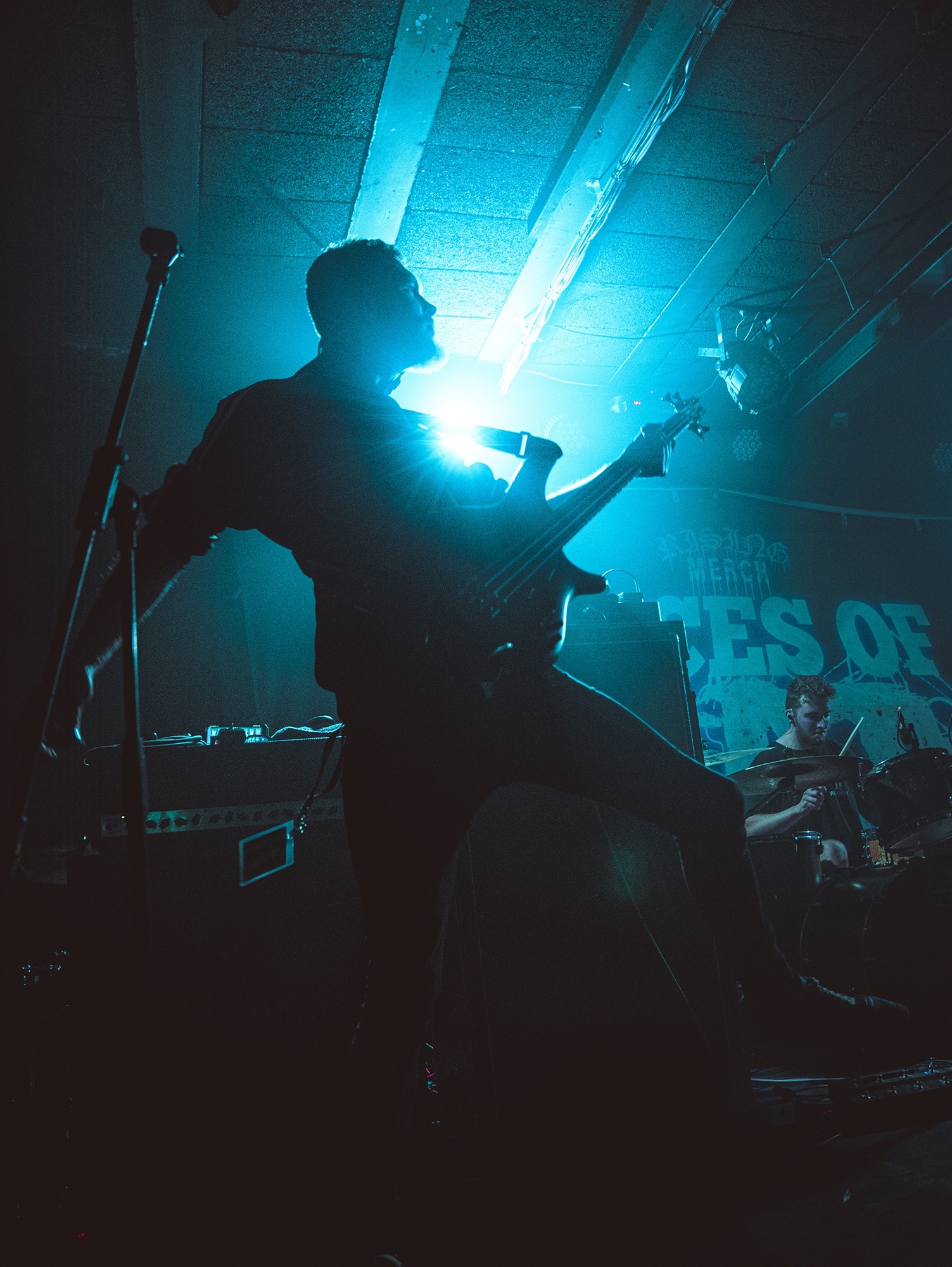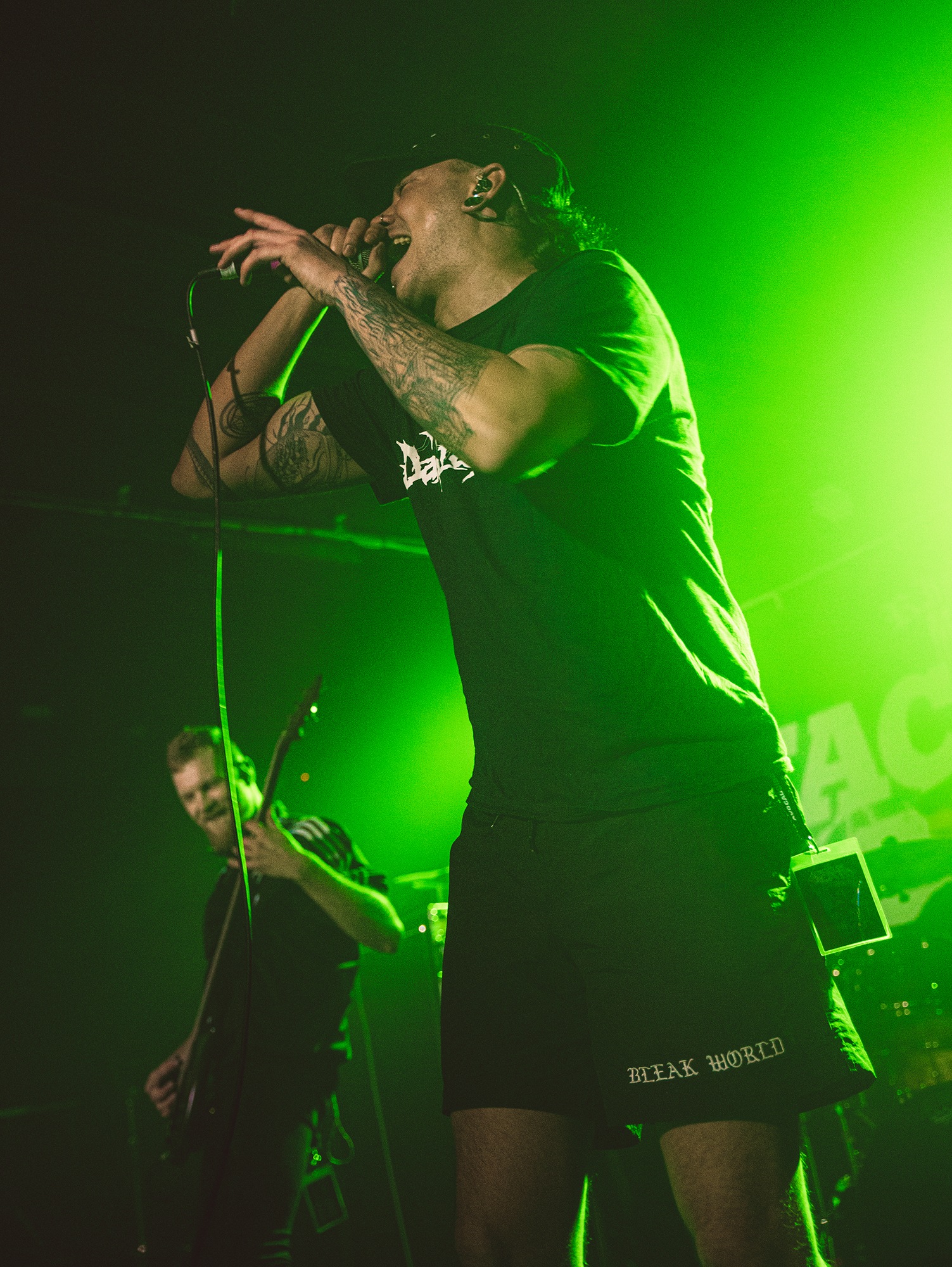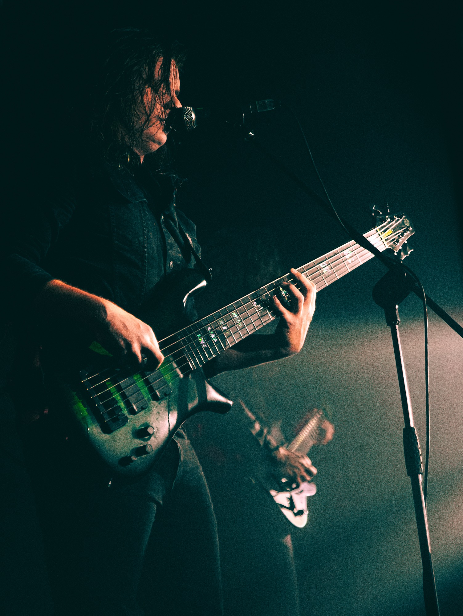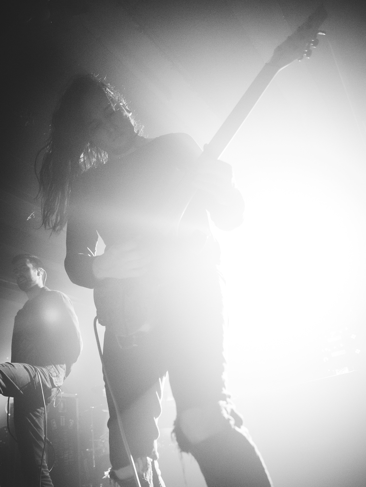 Lineup changes seems to be in the drinking water of this tour’s billing as HARBINGER, ALLEGAEON and FALLUJAH all testify. Headliners RIVERS OF NIHIL didn’t dodge this either, with the sudden departure of long-standing vocalist Jake Dieffenbach coming prior to the tour kicking off. As such, bassist Adam Biggs has stepped up to the role of frontman and largely, he successfully navigates the challenge. Granted, the absence of Dieffenbach is noticeable as Biggs remains rooted to his position on stage in order to dispatch both bass and vocals, rather than prowl and command the stage as his former bandmate did oh so well, but Biggs‘ effectively leads the line and his range of screams and growls sound just fine: especially in a thundering rendition of The Silent Life.