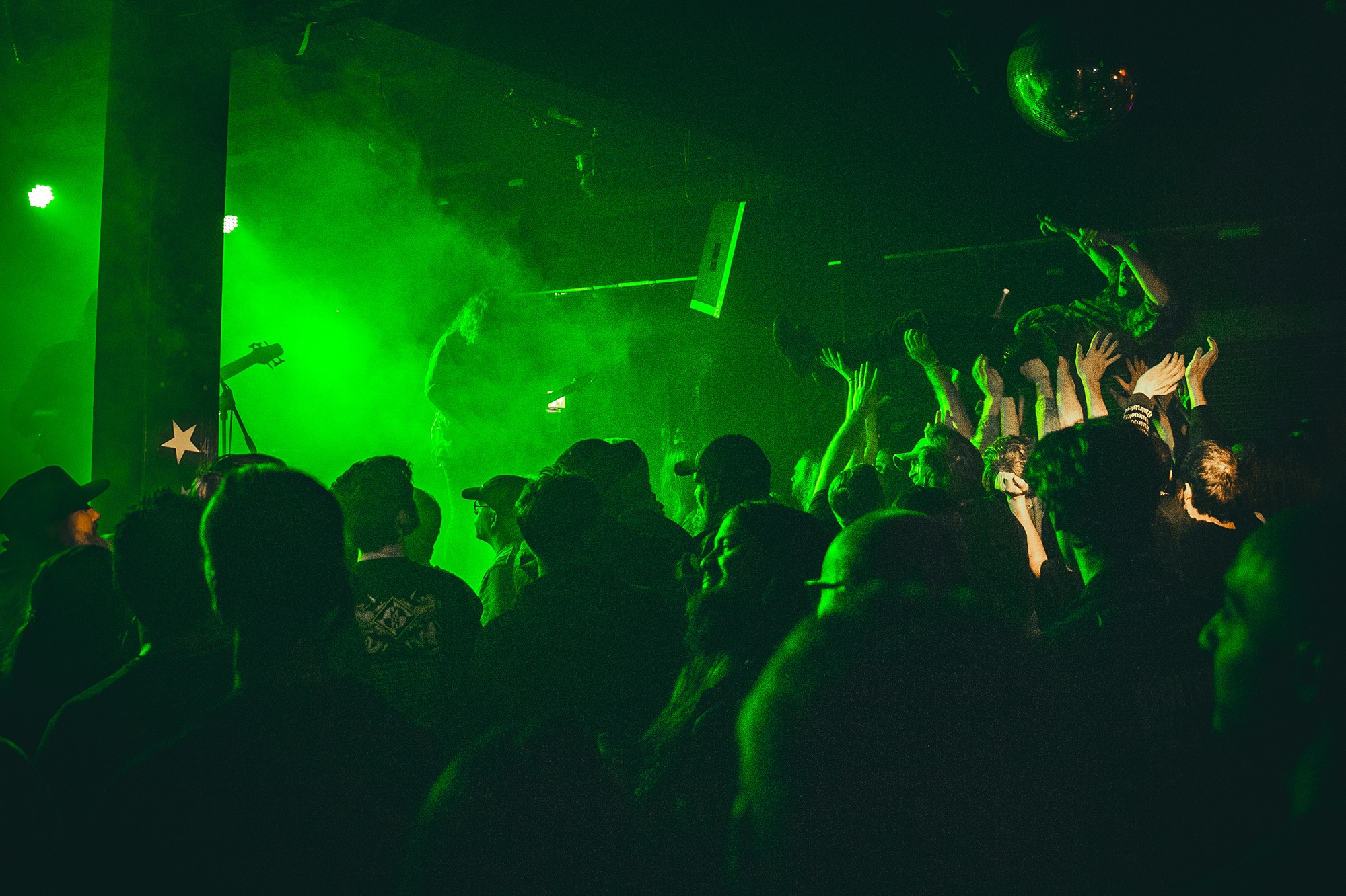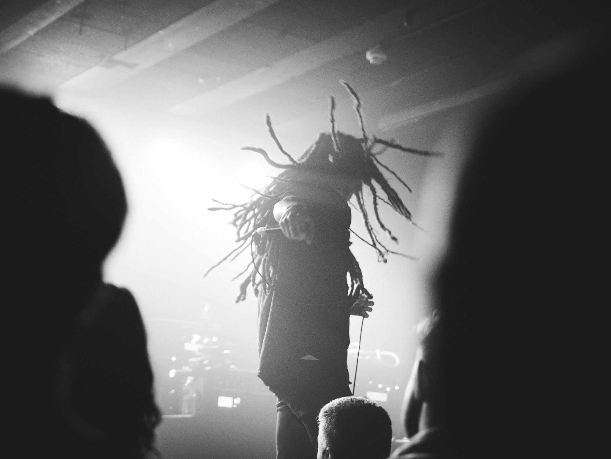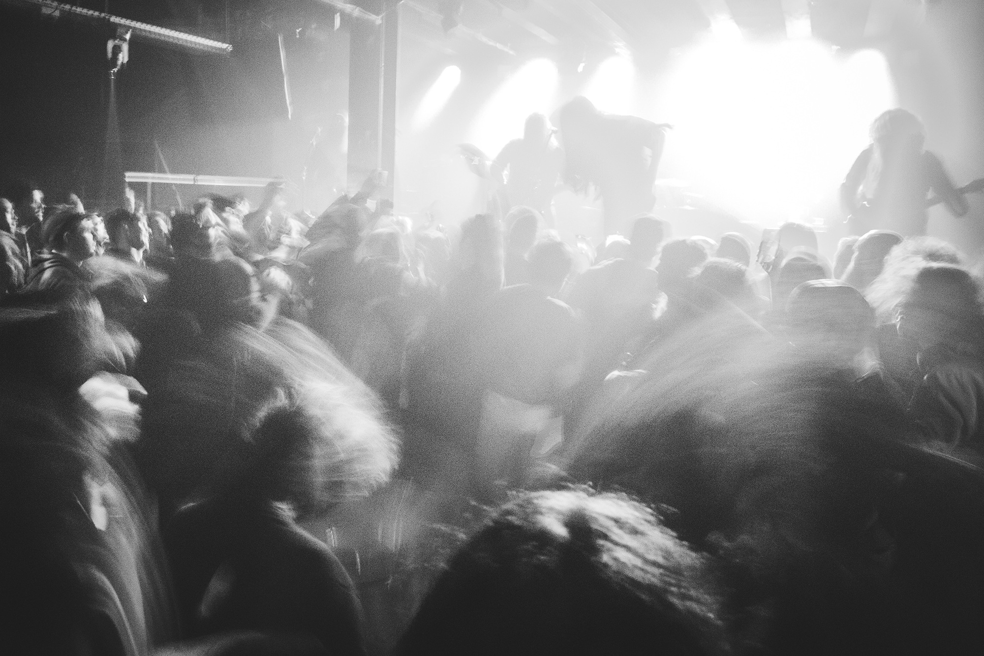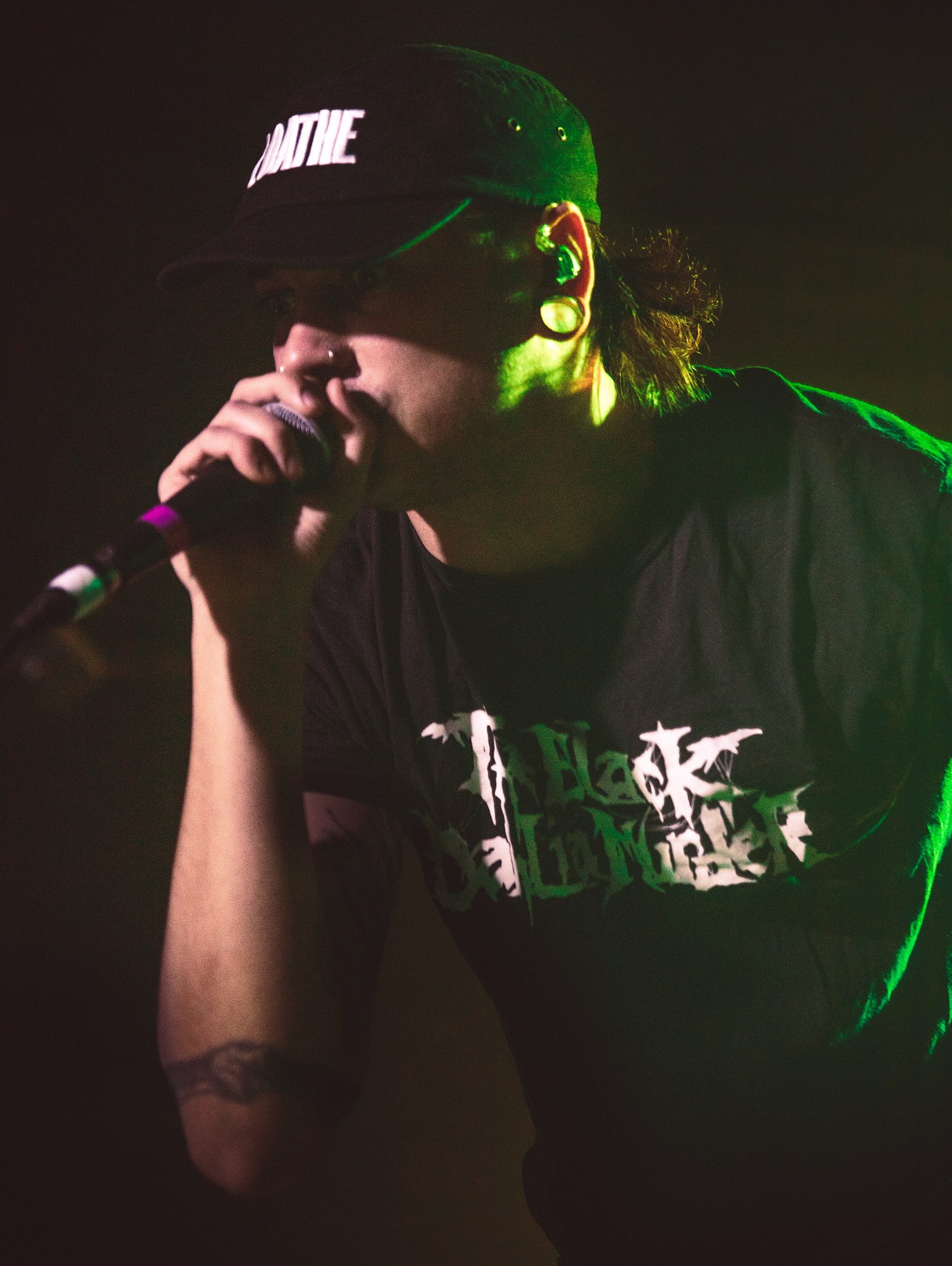 Lineup changes seems to be in the drinking water of this tour’s billing as HARBINGER, ALLEGAEON and FALLUJAH all testify. Headliners RIVERS OF NIHIL didn’t dodge this either, with the sudden departure of long-standing vocalist Jake Dieffenbach coming prior to the tour kicking off. As such, bassist Adam Biggs has stepped up to the role of frontman and largely, he successfully navigates the challenge. Granted, the absence of Dieffenbach is noticeable as Biggs remains rooted to his position on stage in order to dispatch both bass and vocals, rather than prowl and command the stage as his former bandmate did oh so well, but Biggs‘ effectively leads the line and his range of screams and growls sound just fine: especially in a thundering rendition of The Silent Life.