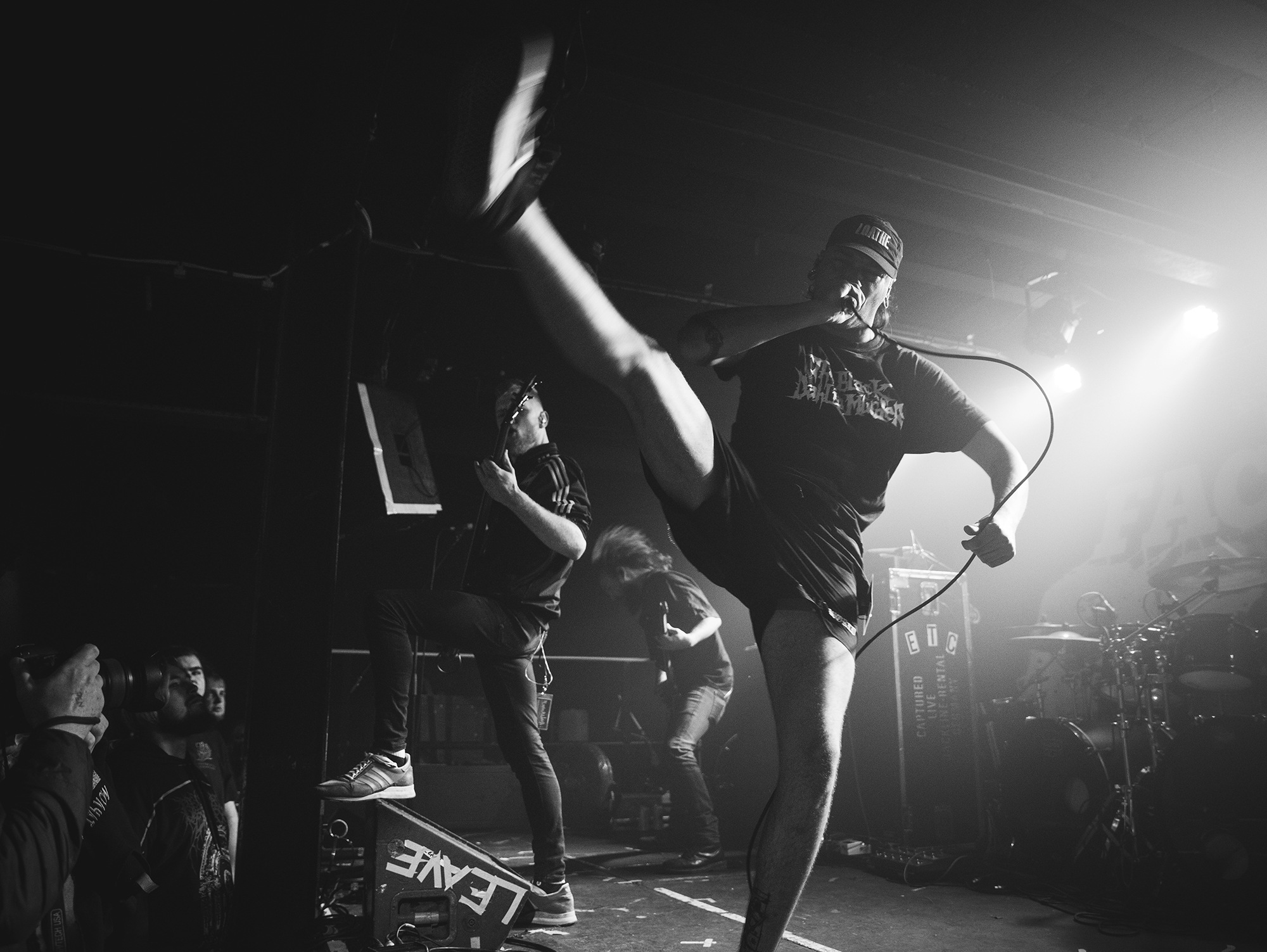 With a healthy number of punters already through the doors, early openers HARBINGER have plenty of eyes gazing towards them as they begin their bludgeoning assault and they succeed in getting the crowd warmed up throughout their short stint on stage. Whilst their craft is left technical than the rest of the bands on the billing, the firepower at HARBINGER posses ensures that the momentum surges as a twin-led assault from guitarists Ben Sutherland and Charlie Griffiths keep the riffs coming and coming whilst new vocalist Dilan Alves shows endless enthusiasm as he prowls the stage and dispatches his range of growls and shrieks with aplomb. A fine outing indeed.