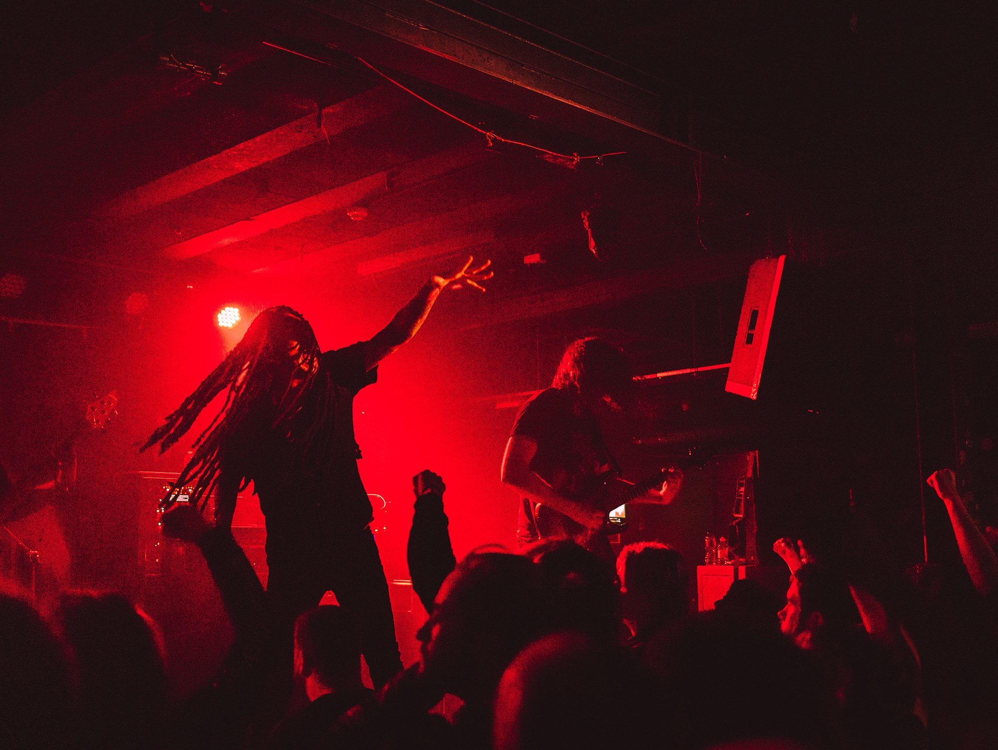 The temperature may be plummeting, the nights may be getting colder and the impending recession may be casting a shadow across the nation but if there is light to be found in the darkness let it be this, the first November for two years where we’ve been blessed with bands (both homegrown talent and from overseas) touring across the land. Originally intended for last November, the Faces Of Death Tour (boasting a ludicrous buffet of tech-death treats in the form of RIVERS OF NIHIL, FALLUJAH, ALLEGAEON, INFERI and HARBINGER) arrives at Manchester and despite the temptation of a clash between England and Wales at the winter World Cup in Qatar, Rebellion is sold out for the occasion.