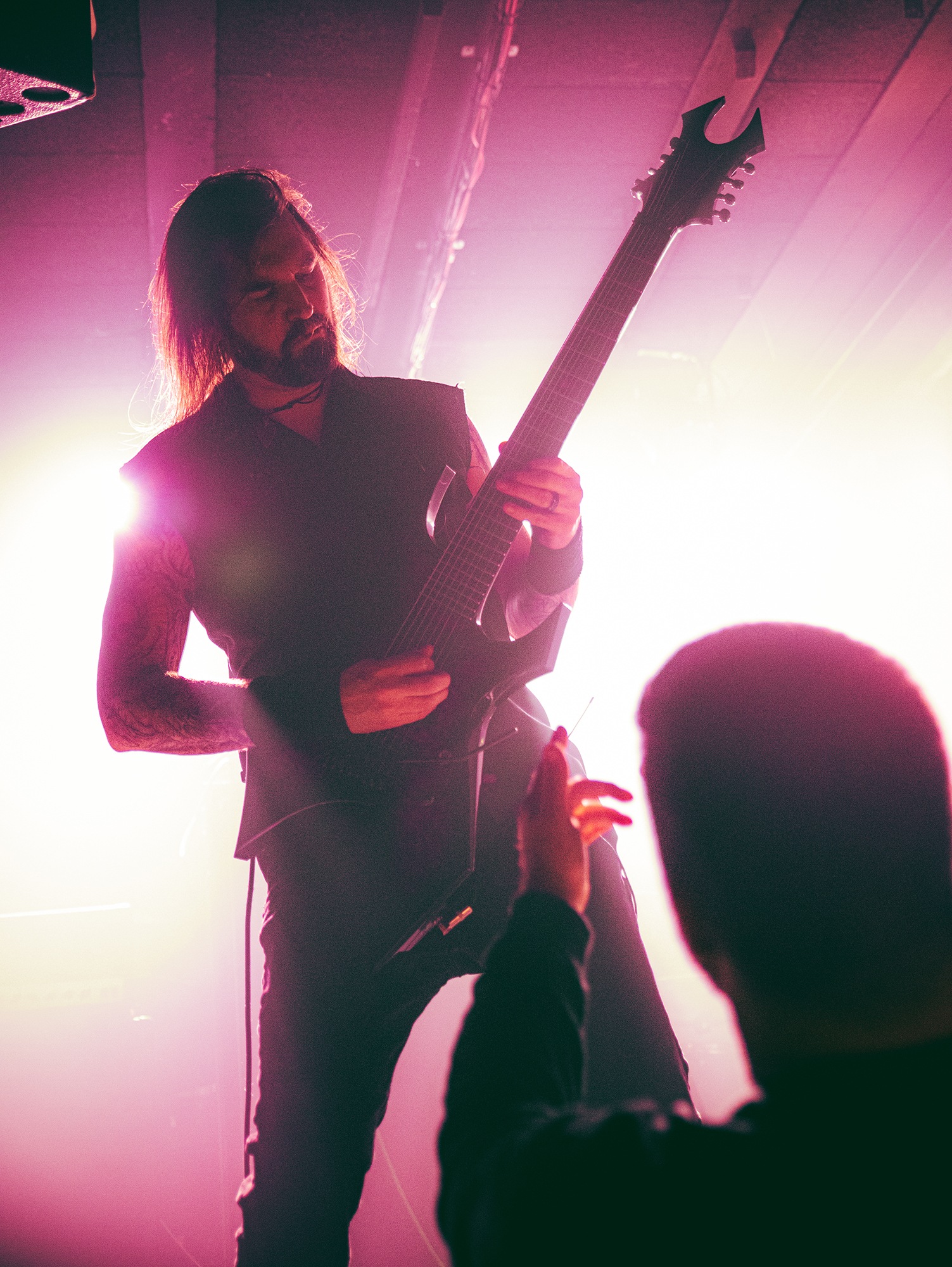 Greg Burgess and Michael Stancel‘s dual riffing chugs which continuously prompts waves of heads banging and the technicality of the soloing is world class, especially in set closer Behold (God I Am), a twin barrage of Vermin and Into Embers (taken from this year’s stellar DAMNUM) sound colossal in the live arena and Ezra Haynes looks like he is having the time of his life as he commands the crowd and dispatches his vocals with aplomb. Filling in temporarily for this run following the departure of Riley McShane earlier this year, the original vocalist feels comfortably at home and it’s heart-warming to experience his joy on his maiden tour across our side of the Atlantic. With little to no drop in momentum, ALLEGAEON more than showcased their craft and now, after three successful European outings, a headlining tour must surely be on the cards.