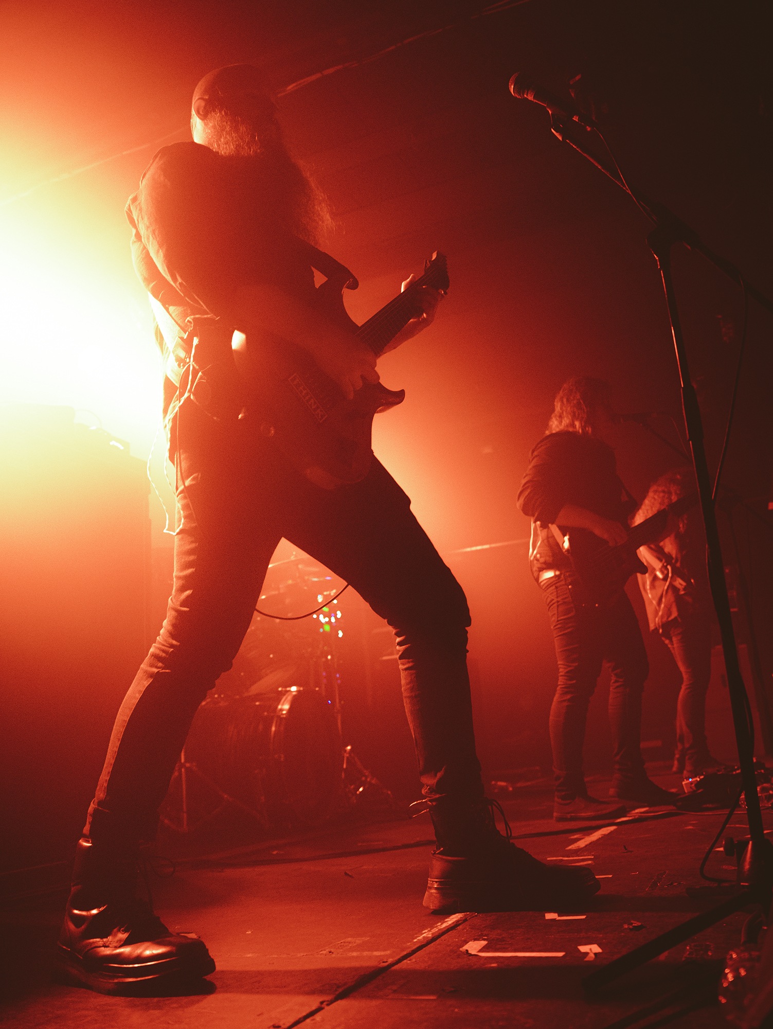 American tech-death wizards INFERI feel right at home on this billing and as they unveil set opener No Gods But Our Flesh it becomes immediately clear that the skill within the band’s ranks is off the charts. Guitarists Malcolm Pugh and Mike Low continuously impress and leave jaws hanging as their complex rhythms intertwine as they twiddle and bend riff after riff, solo after solo as the likes of Maelstrom Prison and Eldritch Evolution are dispatched with the utmost proficiency. Whilst INFERI more than demonstrated that they are technically tight and the level of skill is mightily impressive, there is slight fatigue that permeates at times throughout the set. Fortunately, it’s not enough to derail the band’s impact and although some punters drift away for a refill or smoke break, those front and centre lap up the technical-driven death metal and the appetite is more than whet for what is to follow.