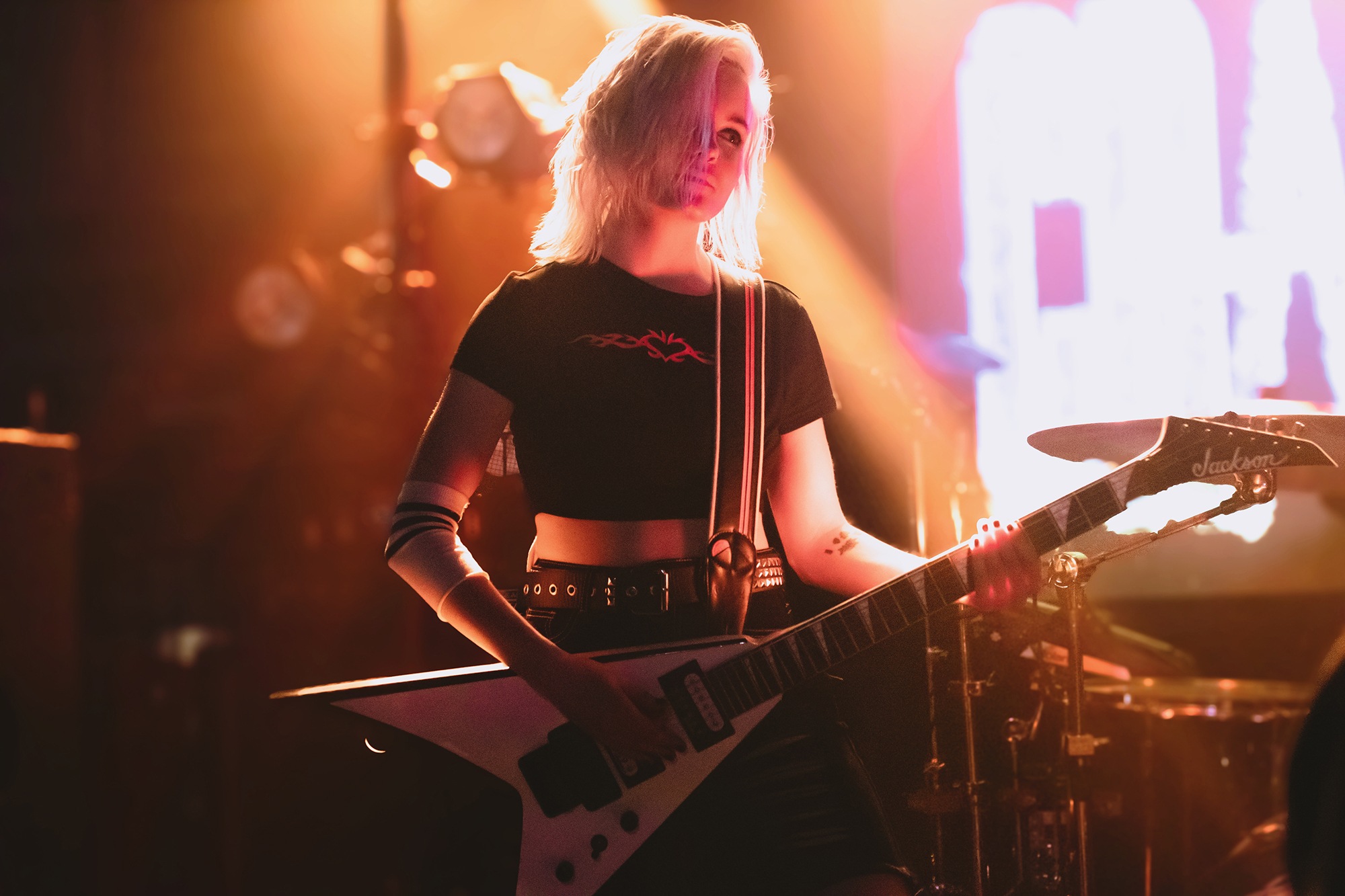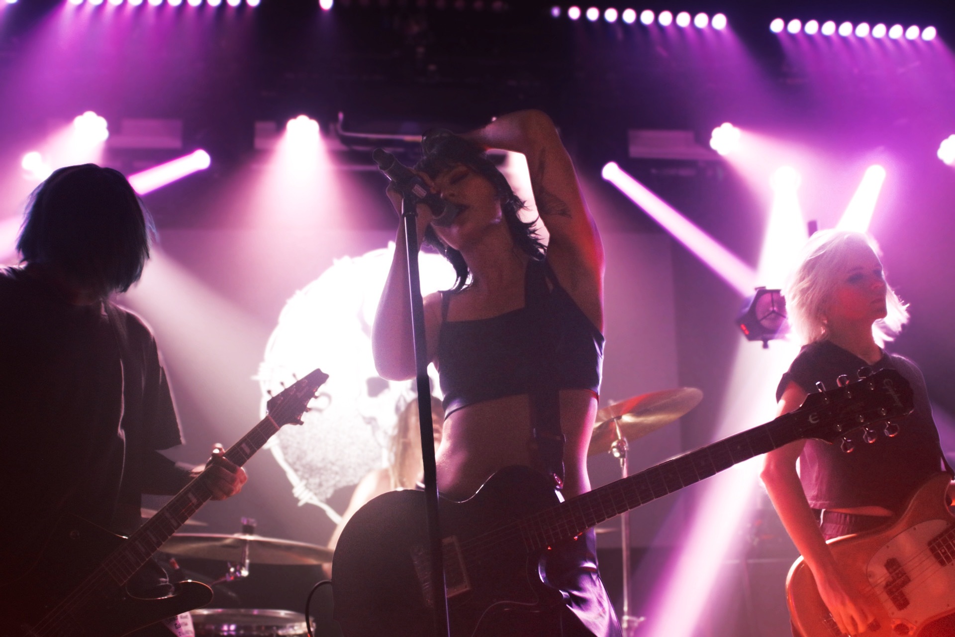 SAINT AGNES have certainly been taking notes from the bands they have opened for over the last couple of years – their intro tape is the perfect length, building anticipation for their show and yet kicking into the title track from Bloodsuckers just when you feel that it might have been going on bit too long. There’s plenty of energy to see from the band and, full credit to Kitty A. Austen here, she’s confident enough to ask for a wall of death in a sizeable, but not sold out room and gets one too. When everything is going to according to plan, SAINT AGNES are a poison-tipped dart, striking a chord with everyone in the room and bringing them over to the dark side, whether it’s through the vampiric vibes in Daughter Of Lucifer or the umpteen pairs of hands flipping the bird during Middle Finger. Most potent is This Is Not The End, a song penned by Kitty about her mother’s passing and is both a sombre and celebratory moment, as she steps from the stage to sing it among the punters.