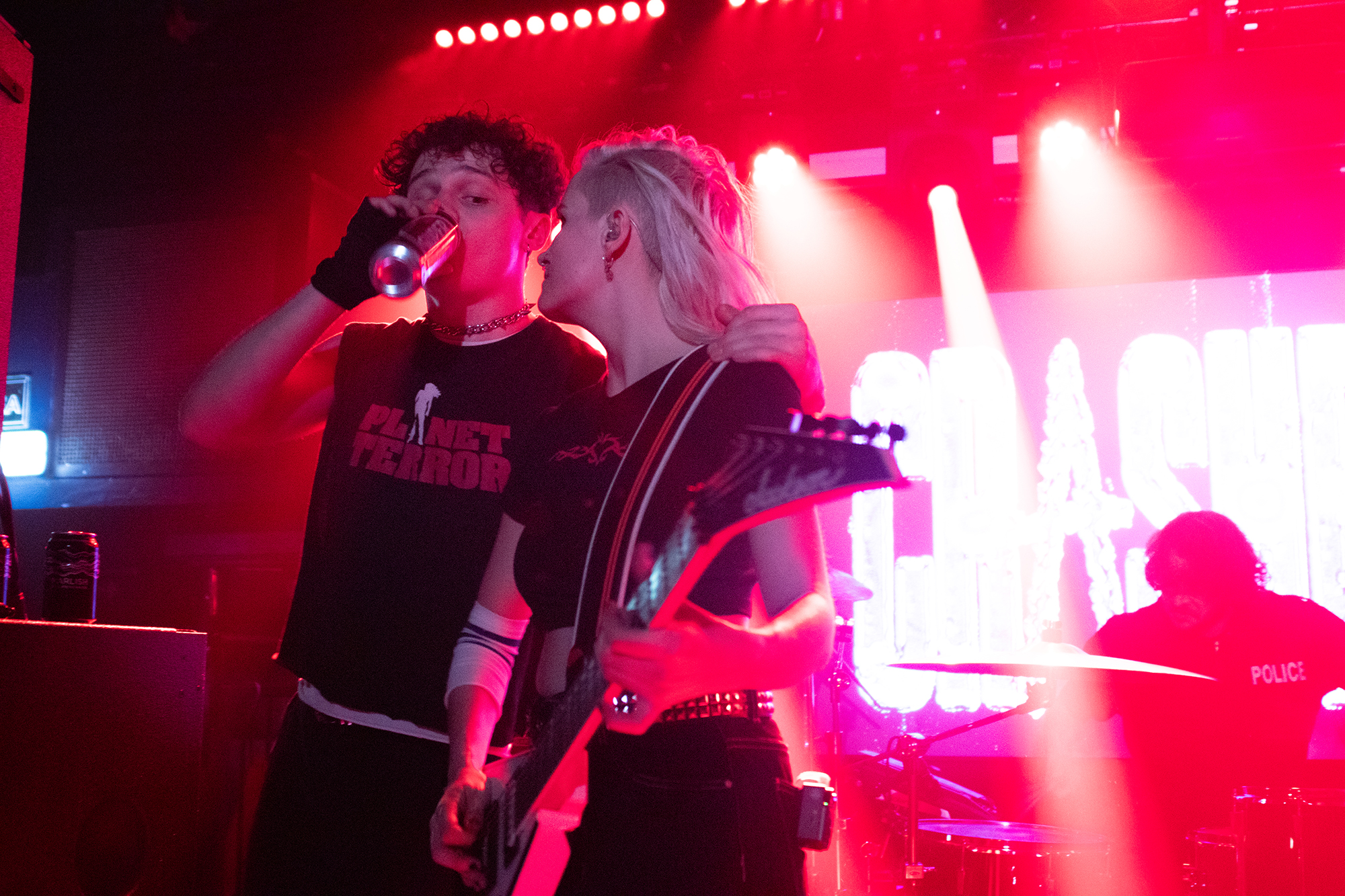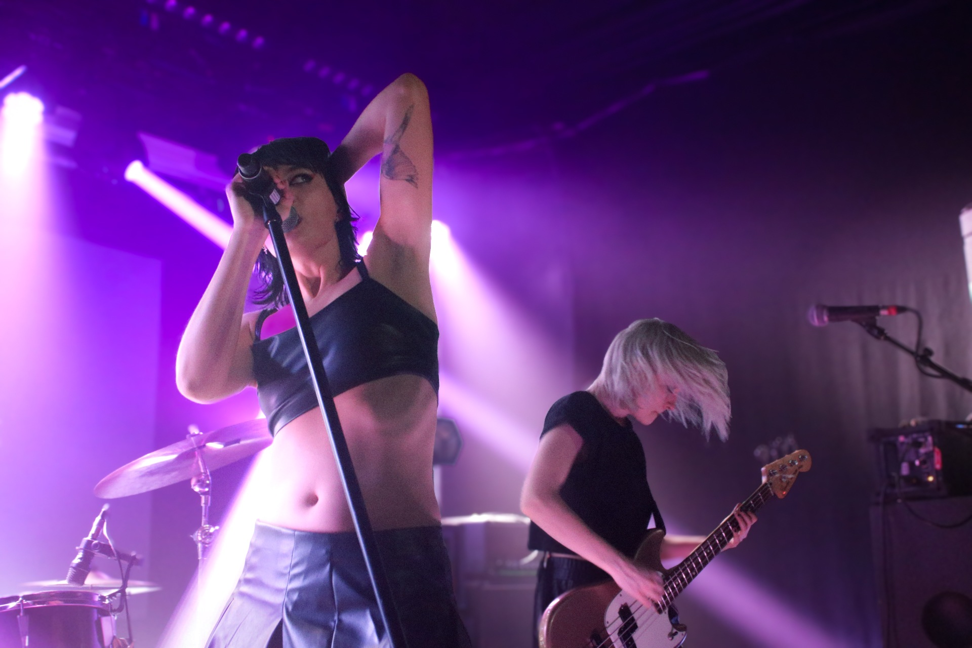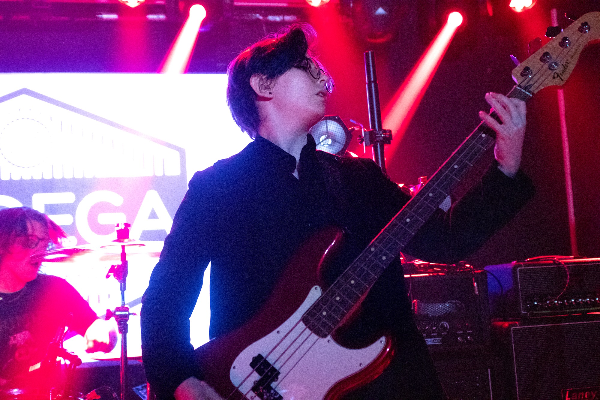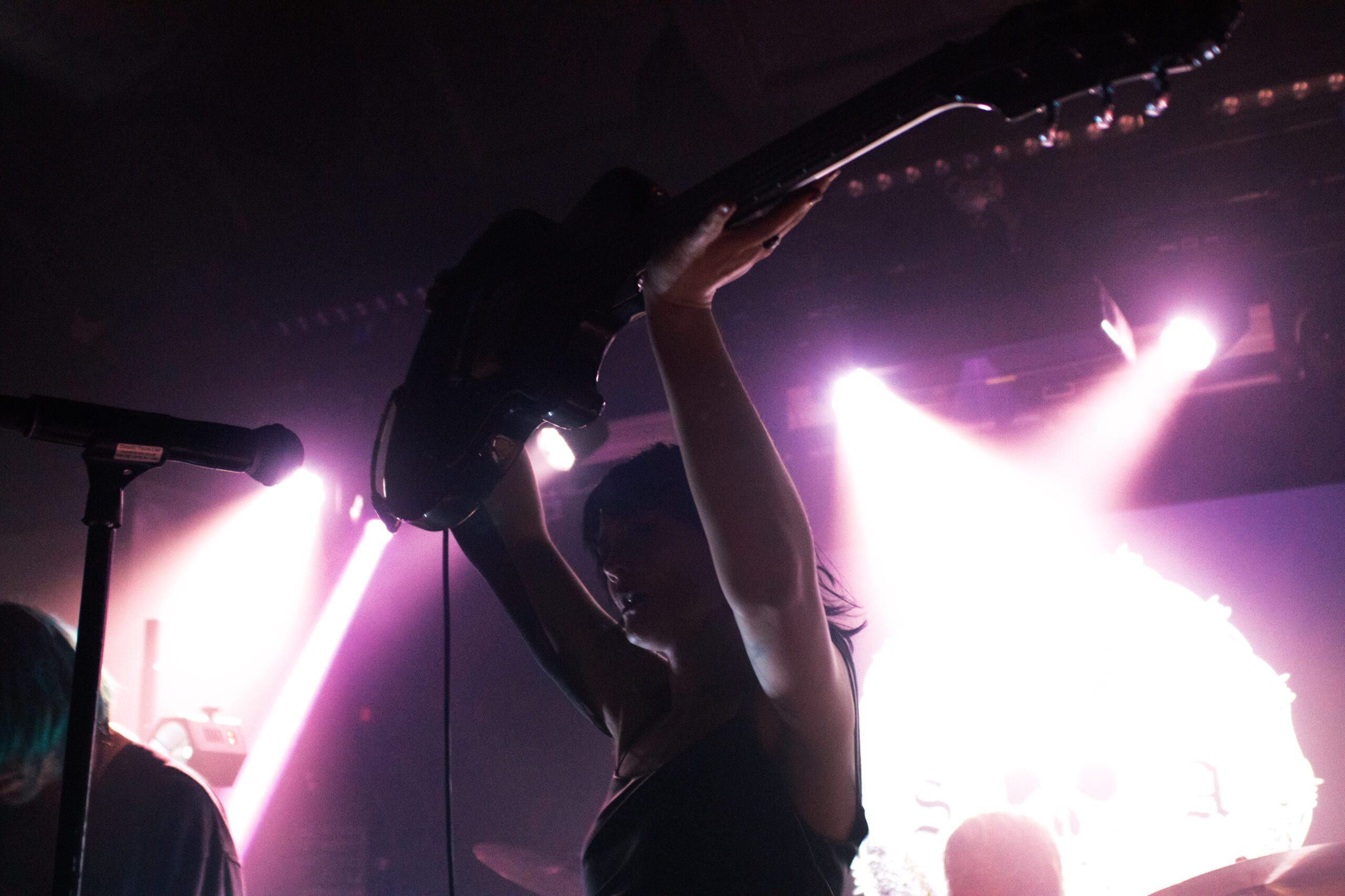 One could argue that the limited stage space at The Bodega is a factor in limited movement from bands, but CRASHFACE buck that trend from the off. The London duo – vocalist Charlie Hinton and bassist Otto Balfour – are ably backed up by a touring guitarist and drummer for this run and are making the best use of what they can in front of them. Rattling through songs like Loading Screen Infinity and Ultraplasticplanetkiller at a rate of knots, they seem quite rough at the beginning but really grow into their set and new song, the nu-metal tinged C.H.A.I.N.S.A.W is going to become a cornerstone of their live show for years to come. Once they’ve learned how to maintain the momentum they have by the end of their set throughout the time they have onstage, they’ll be even more of a force to be reckoned with, but they’re young and that will come in time.