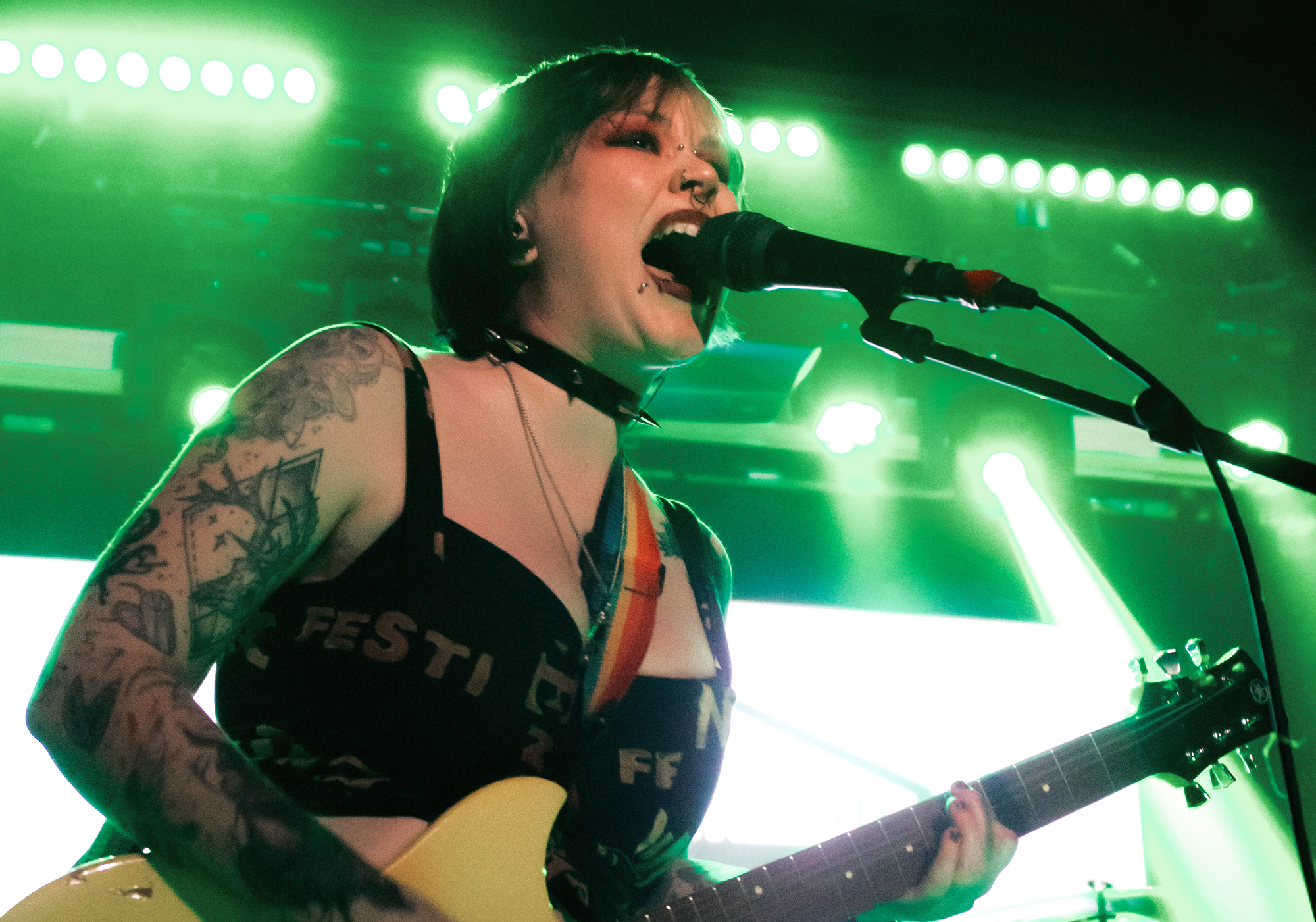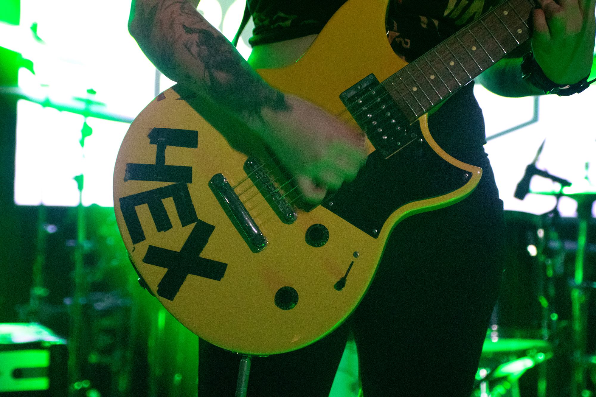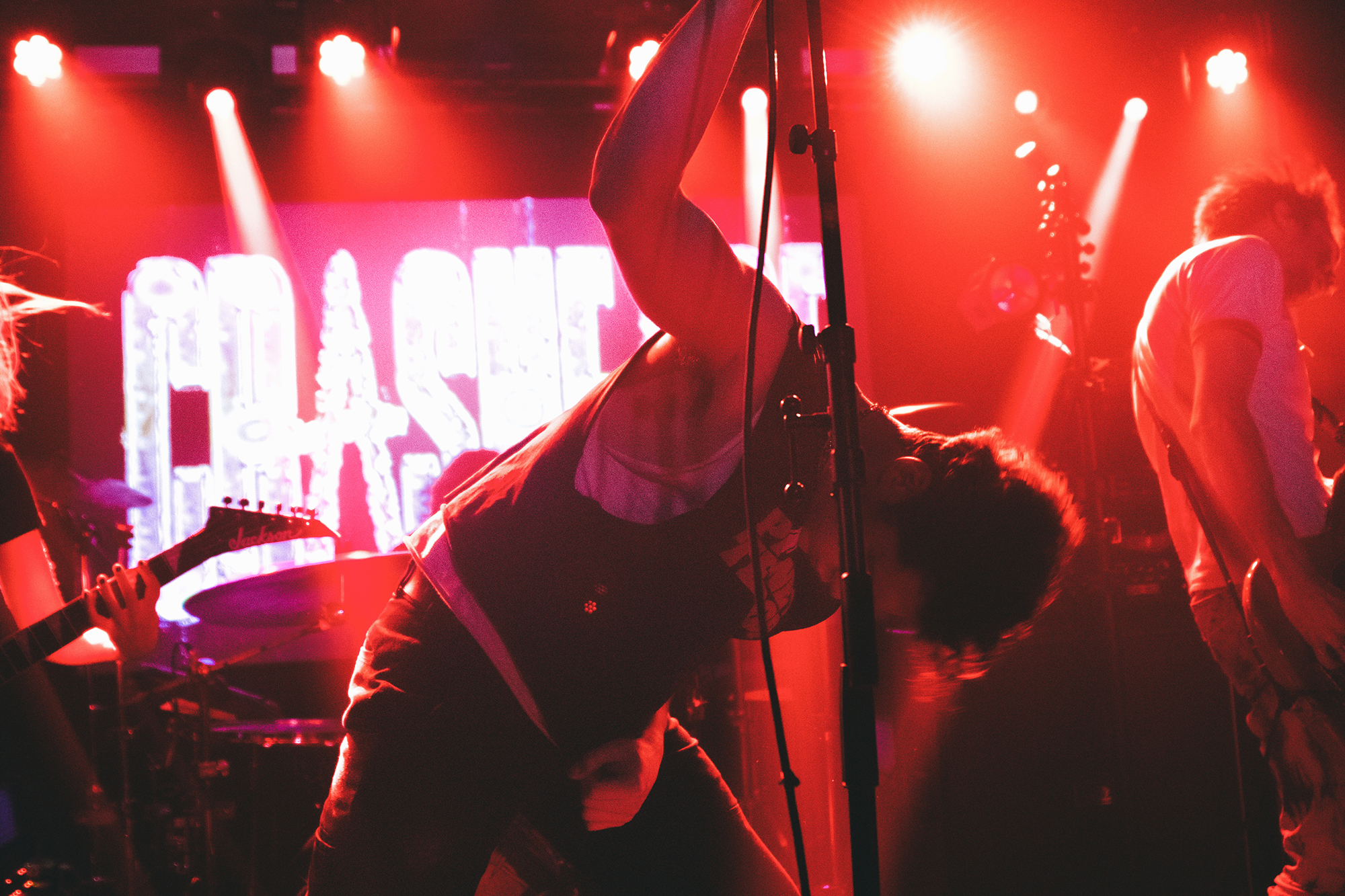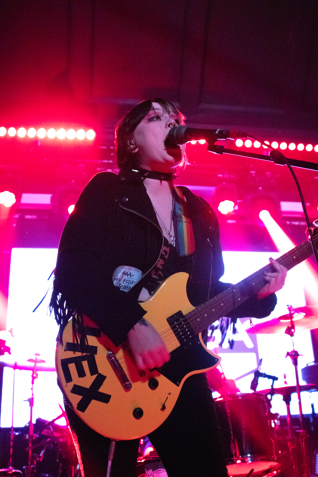 One could argue that the limited stage space at The Bodega is a factor in limited movement from bands, but CRASHFACE buck that trend from the off. The London duo – vocalist Charlie Hinton and bassist Otto Balfour – are ably backed up by a touring guitarist and drummer for this run and are making the best use of what they can in front of them. Rattling through songs like Loading Screen Infinity and Ultraplasticplanetkiller at a rate of knots, they seem quite rough at the beginning but really grow into their set and new song, the nu-metal tinged C.H.A.I.N.S.A.W is going to become a cornerstone of their live show for years to come. Once they’ve learned how to maintain the momentum they have by the end of their set throughout the time they have onstage, they’ll be even more of a force to be reckoned with, but they’re young and that will come in time.