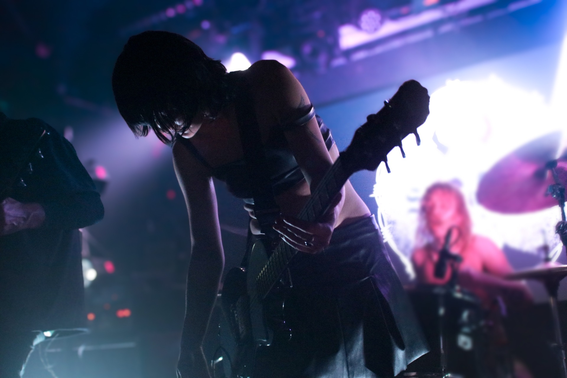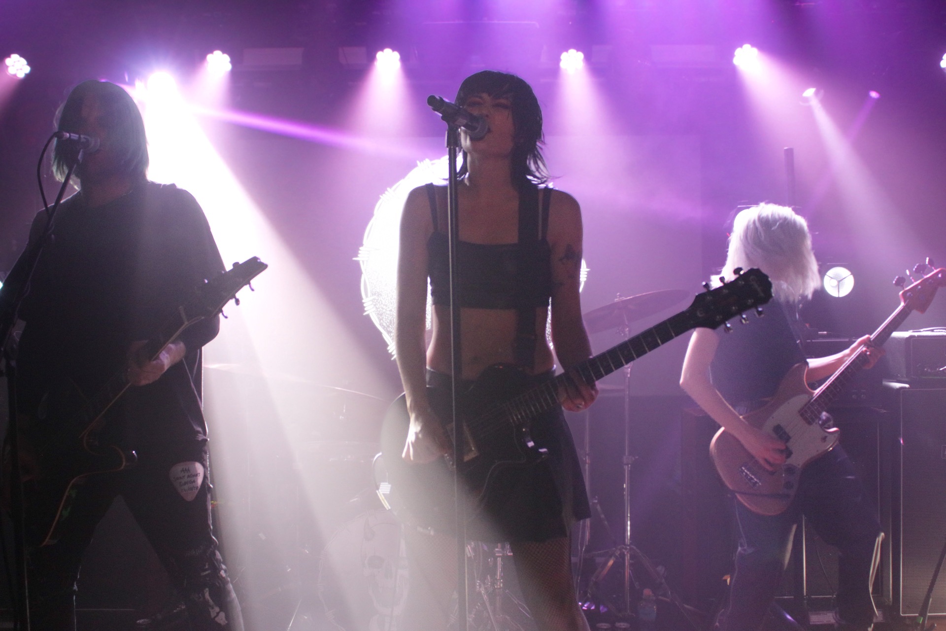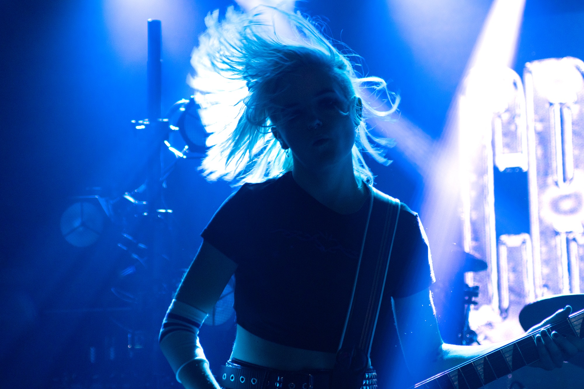 Taking to the stage just fifteen minutes after doors is HEX POSEUR, ably supported at present by drummer Jacob Wakeling and bassists Holly Osborne. Lashings of grunge and punk rock are in her own take on heavy music, which opens rather unsettlingly with Skin, the first track off debut LP Stunning and the sinister opening line of “I want to consume your whole being!”. Showcasing tracks from not just Stunning but both the Hearsay and Keep It Quiet (Vol 1) EPs, there’s a lot of potential here with plenty of anger and rage in the songs, but plenty of bands have done similar things and had a greater impact. A little more delivery in the vocals and a more aggressive stage presence would benefit and turn the decent appreciation for the songs into a great one.