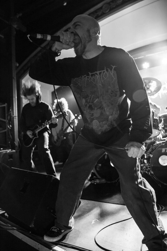 Yet again, The Classic Grand‘s sound blesses the headliners. For this tour, currentĀ SUFFOCATIONĀ drummerĀ Eric MorottiĀ slaps the skins as a temporary replacement. We’re even treated to the main slam offĀ Liege of Inveracity, which hypes the crowd up to no end before it abruptly ends, revealing it’s just a short sample we’re getting.Ā MorottiĀ does an excellent job behind the kit, embellishing the songs with a particularly technical flourish. FrontmanĀ Devin Swank‘s stage persona feels more in line with a hardcore vocalist than a death metal one, most noticeably when he gets the crowd to pogo. However, he does a commendable job of keeping the crowd engaged and earns major Glasgow points for shouting out tech death local legends,Ā INIQUITOUS SAVAGERY. This engagement reaches fever pitch with the concluding twinning of ultimate fan favouritesĀ Dragged by a TruckĀ andĀ Dead as Shit, the latter of which sees the fans actually singing the intro chugs and pinch harmonics. Total, utter chaos ensues as these older tracks barrage the venue, leaving behind a devastatingly sweaty but awesome night of contemporary death metal.