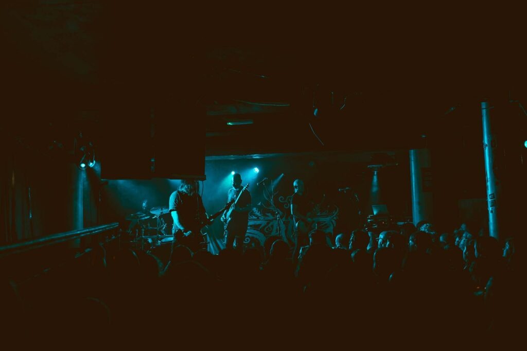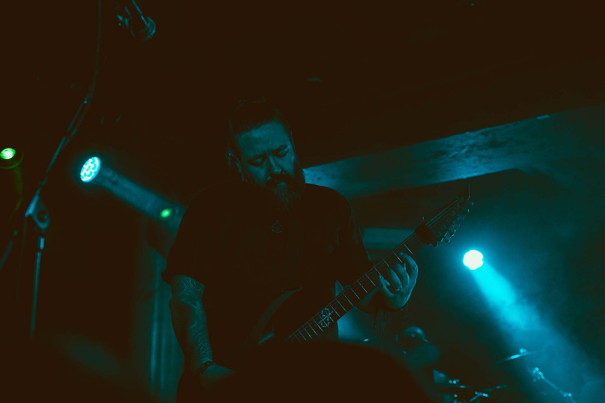 Not too long after doors, Manchester’s OAKENTHRONE take to the stage with a venue that is very much still filling up, but the band instantly impress with a killer display of atmospheric black meal. Fusing doomier undertones with their blackened bite, there’s a lot to like here as compositions unfold from sombre reflective passages that carry plenty of weight through to blistering blast beats and thundering riffs. The likes of Litany of Proper Death and Communion are monoliths, allowing the full breadth of the band’s sound to hit the mark and leave a lasting impression. When you hail from a city that has long produced killer black metal, from WINTERFYLLETH through to WODE, the pressure is on, but OAKENTHRONE deliver a performance that poises them nicely to capitalise on the momentum in a scene that is continuously thriving. A band to watch for sure.