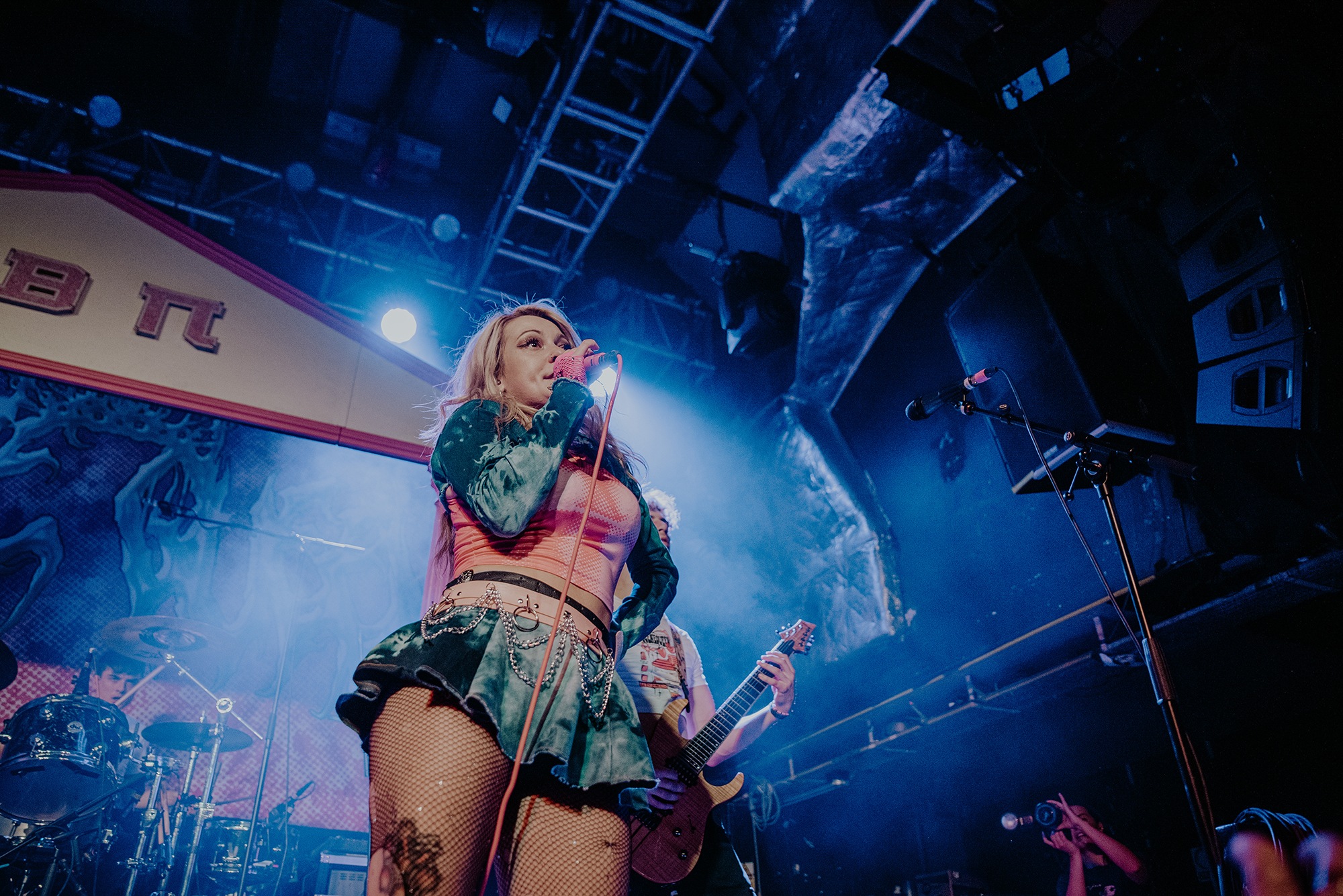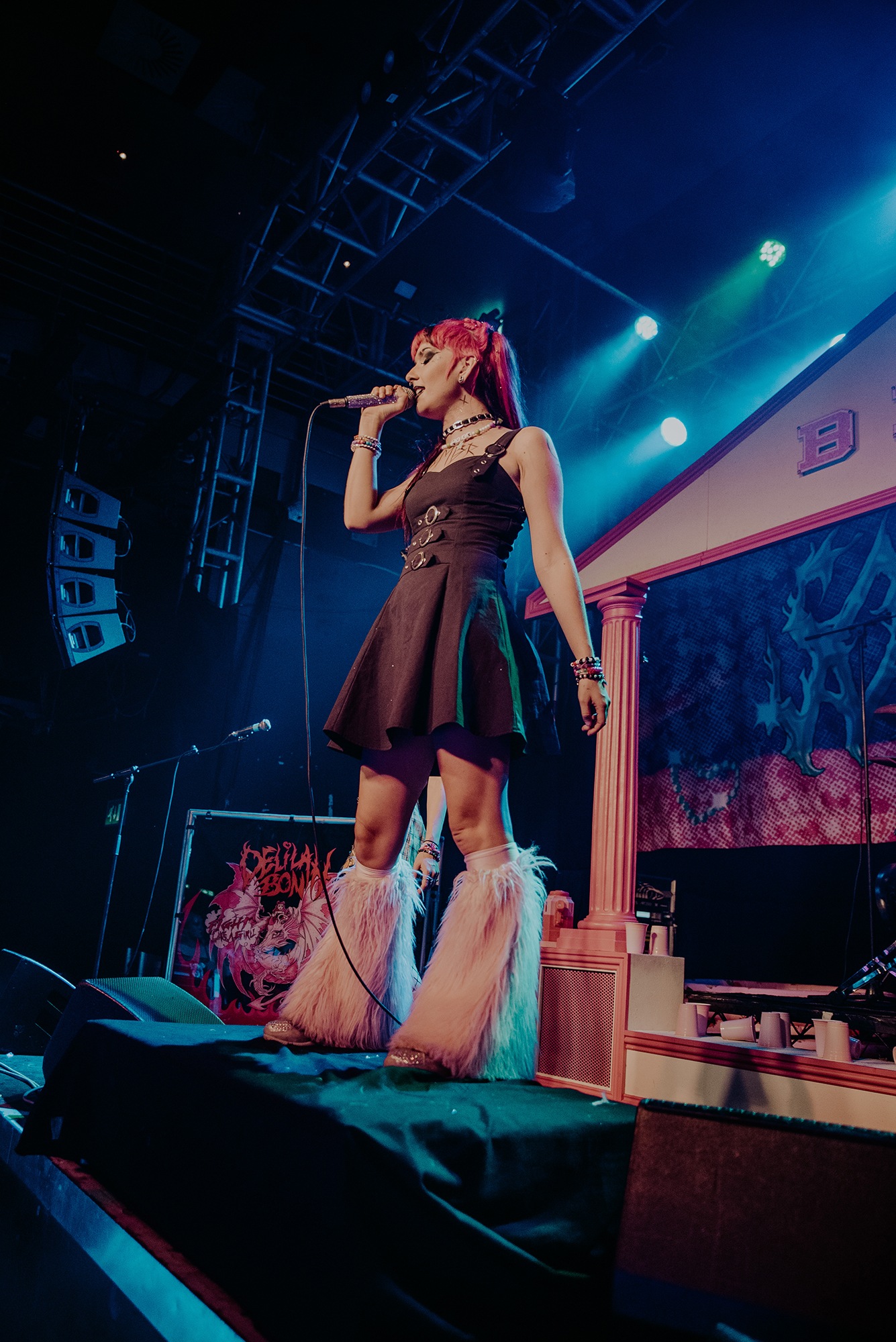 DELILAH BON is the first support act. Whilst she might be best known for being the frontwoman in punk band HANDS OFF GRETAL, she is also an established singer in her own right. Her songs, including the heartbreaking War On Women, feel poignant in the current climate. However, it’s not all sadness, as she also plays songs such as I Don’t Listen To You, which is about reclaiming your body for your own self. The empowering anthems sound even more euphoric as the audience screams the lyrics back. It wouldn’t be surprising if the next time Delilah plays this venue, she’s the headliner.