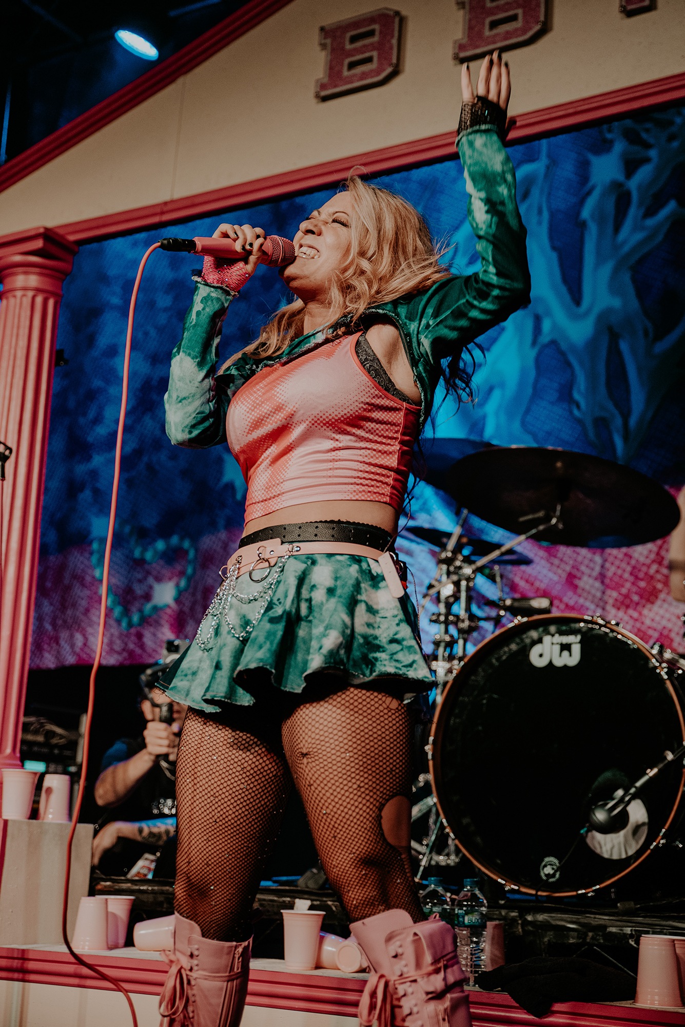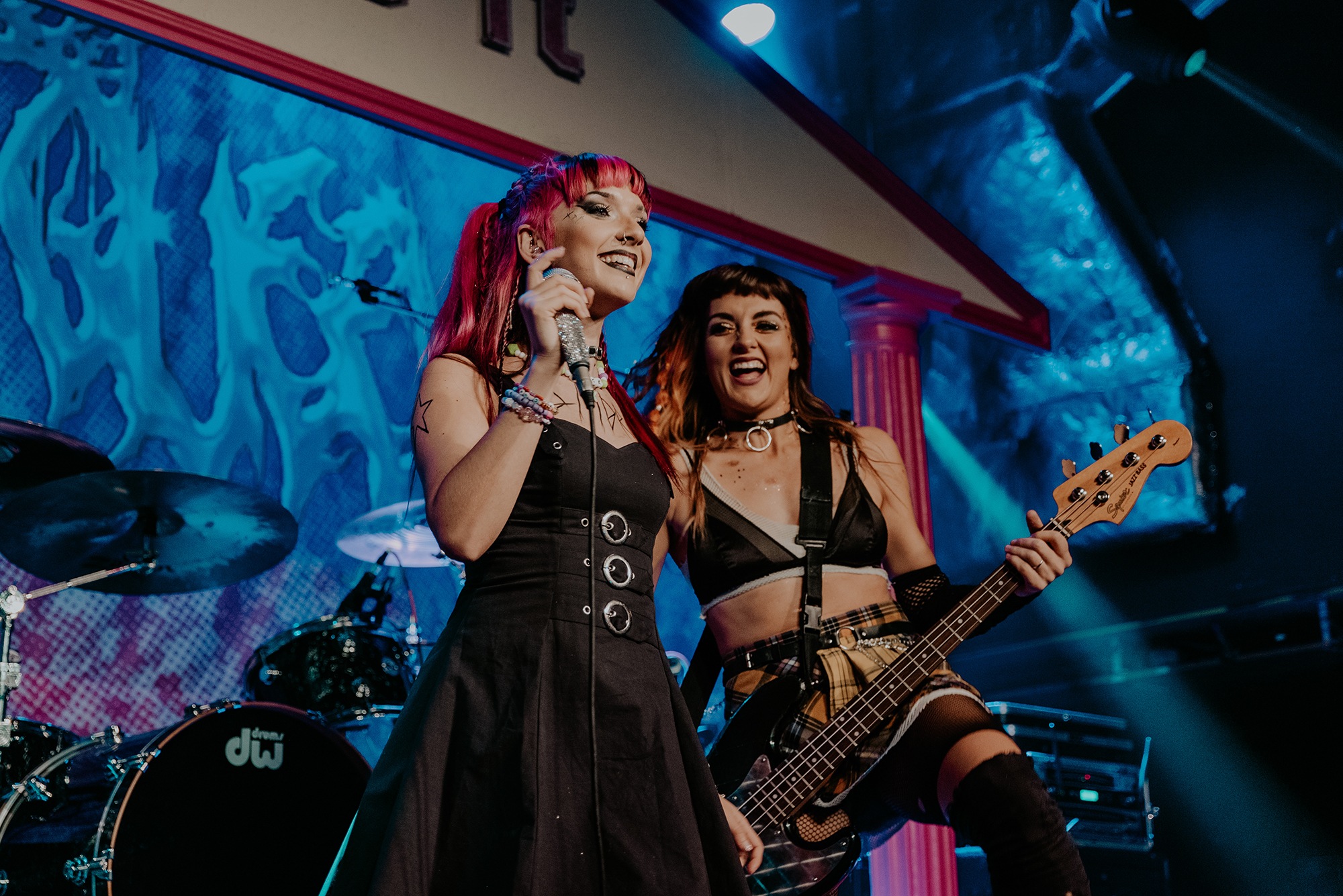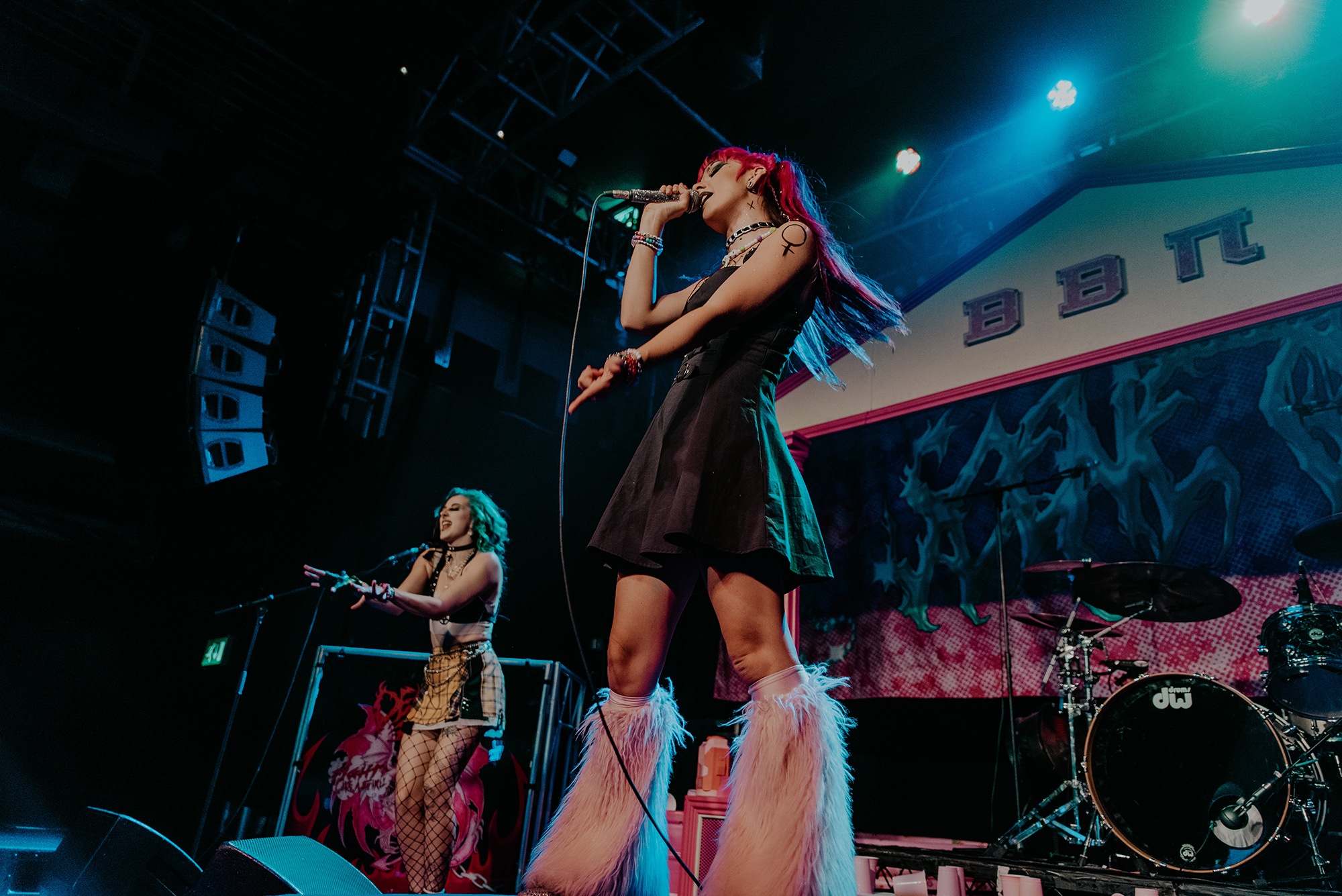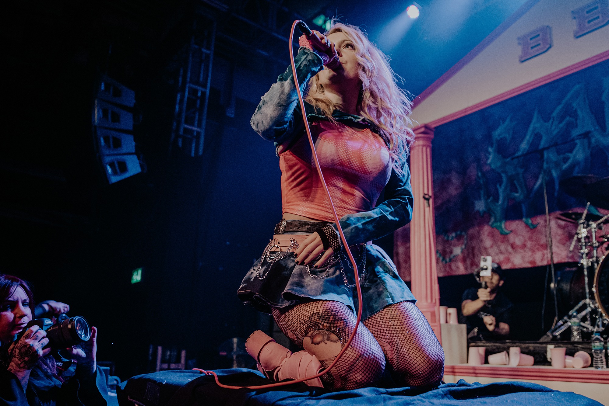 By the time SCENE QUEEN comes onto the stage, the audience are hot with anticipation. They scream the lyrics of Pink Whitney from SCENE QUEEN‘s second EP, Bimbocore Volume 2, and don’t stop moving throughout the hour set. Despite only releasing two EPs so far in her career, there are a lot of songs for SCENE QUEEN to play, from the empowering new single Pink Push-Up Bra, unreleased song MILF and many fan-favourites, including Pink Paper, Pink G-String and Barbie & Ken, which Joey Fleming comes out for. In between the songs, there are two audience members who are picked out to become members of her sorority. As well as getting necklaces, the audience members also look out for others in the crowd.