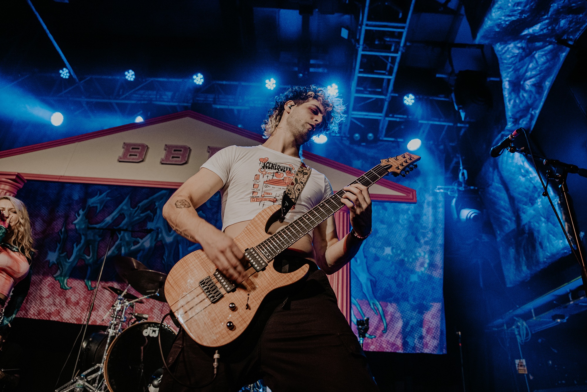 The last time SCENE QUEEN played a headline show in London in May 2022, it was to just over 100 people. As she takes to the stage tonight at O2 Academy Islington, the 800 capacity is a major step-up. Thanks to a mixture of viral success on social media apps, such as TikTok, as well as coining the genre ‘Bimbocore’, which is a mixture of hyperfeminine pop and metalcore. On paper, this sounds like a recipe for disaster, especially as online success is like lightening in a bottle. However, SCENE QUEEN has defied the odds and broken out of that cliché. On the last night of her sold-out Bimbos, Beans and Toast tour, tonight proves how far SCENE QUEEN – real name Hannah Collins – has come in the last year and a half. And yet it also marks the beginning of an exciting new chapter in her career.