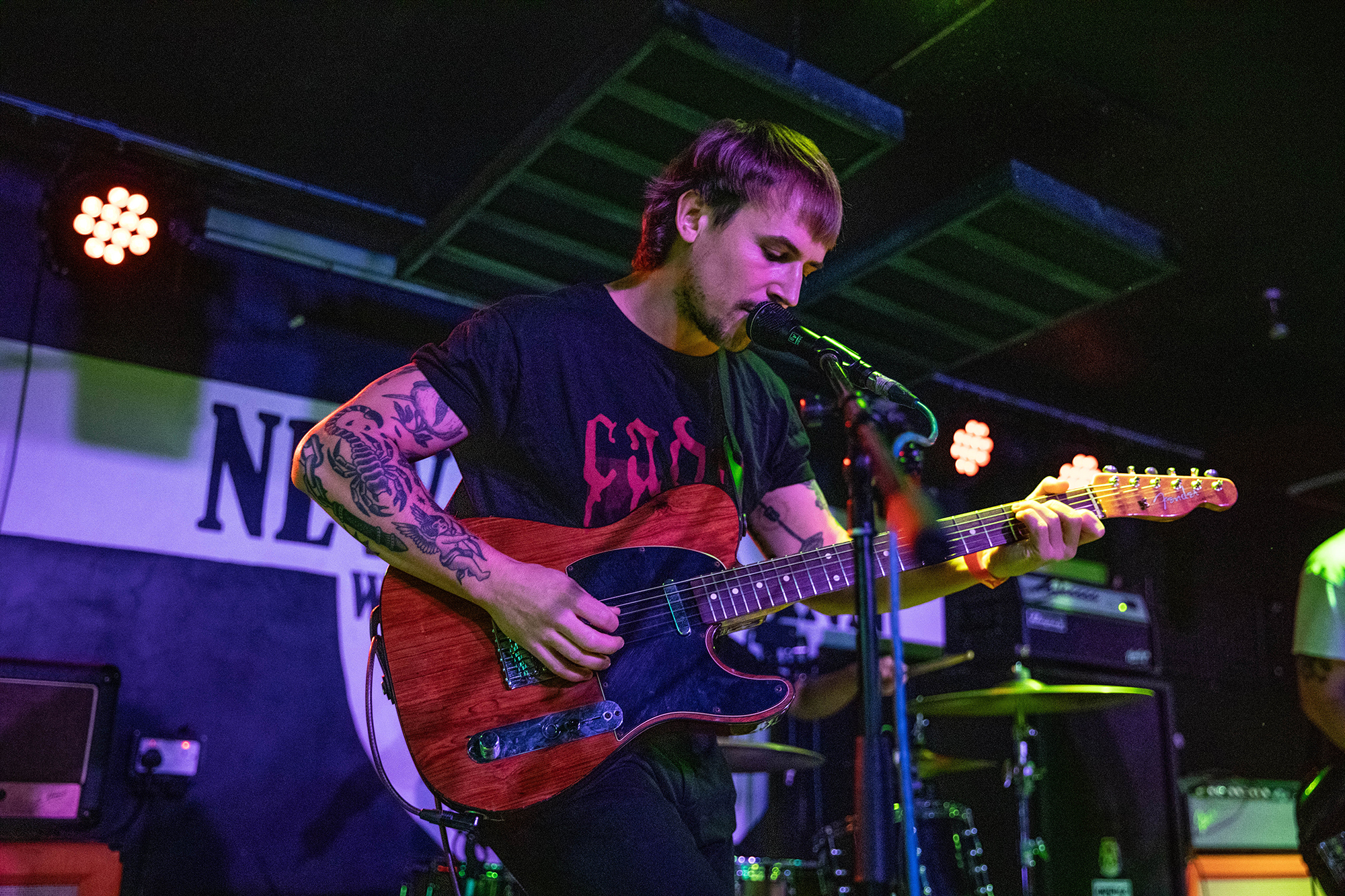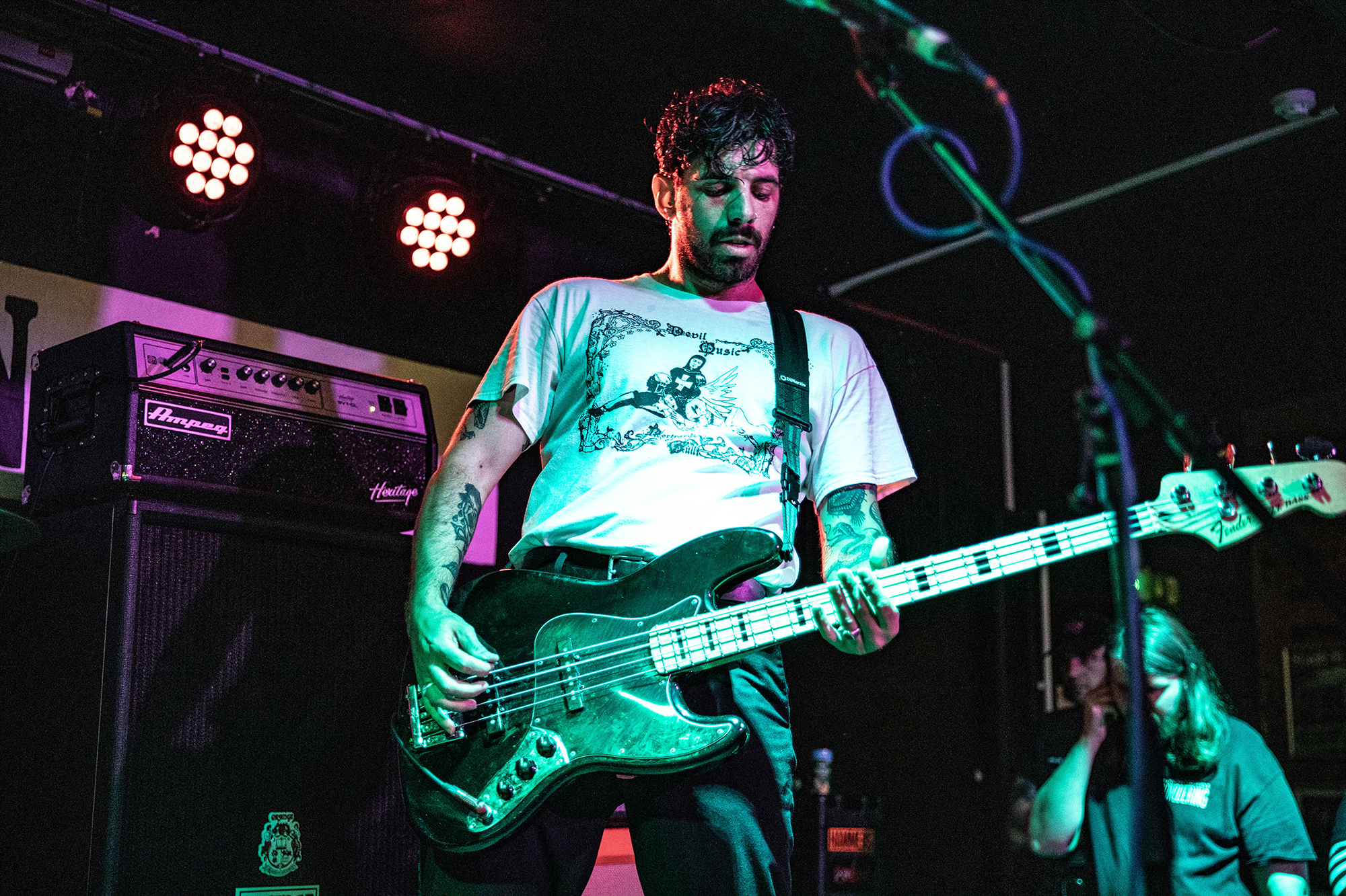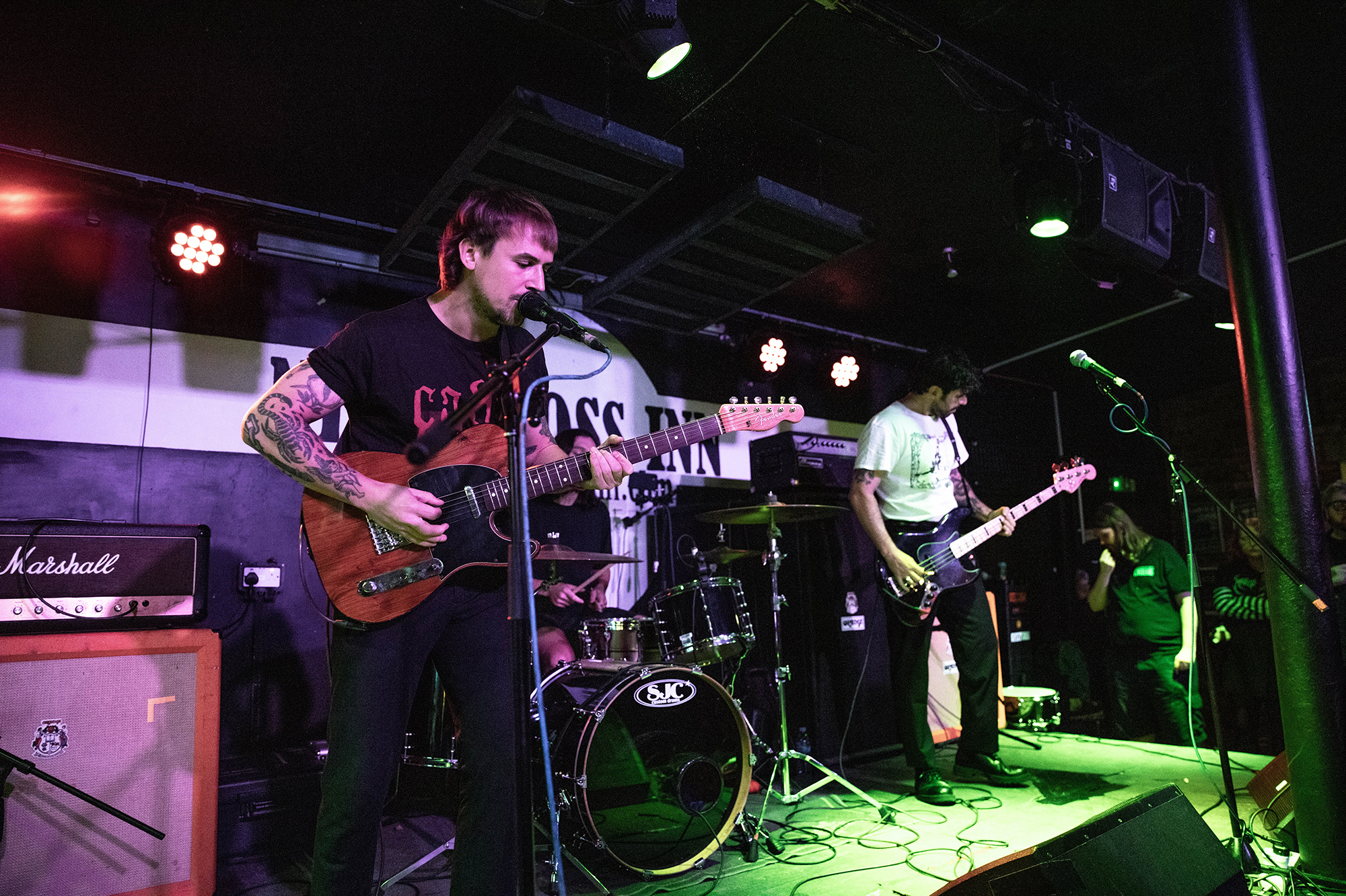 Madridās BONEFLOWER combine the lush ambience of DEAFHEAVEN with the soul-searching emotional pull of TOUCHĆ AMORE, their blend of screamo and atmospheric post-hardcore an incredibly appealing one. Despite their lower billing, itās a solid crowd already at New Cross Inn, possibly due to them having never toured the UK before we they admit early on. With new songs played from their upcoming album for the first time ever, they demonstrate an ear for tortured songwriting that straddles the line of gorgeous instrumentation and pained howling vocals that act like picking open wounds. An extremely promising start and a band that should surely be on more radars.Ā