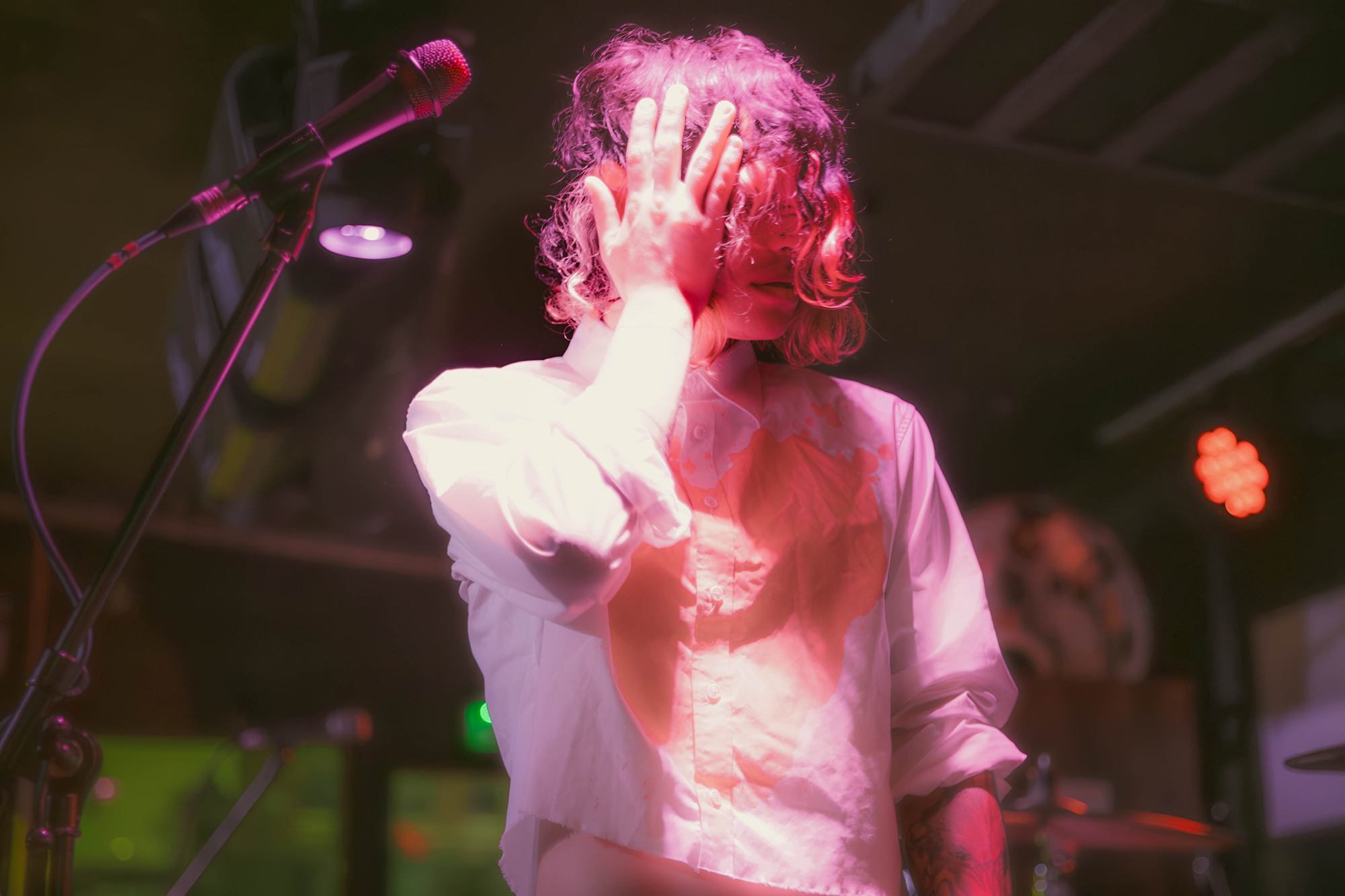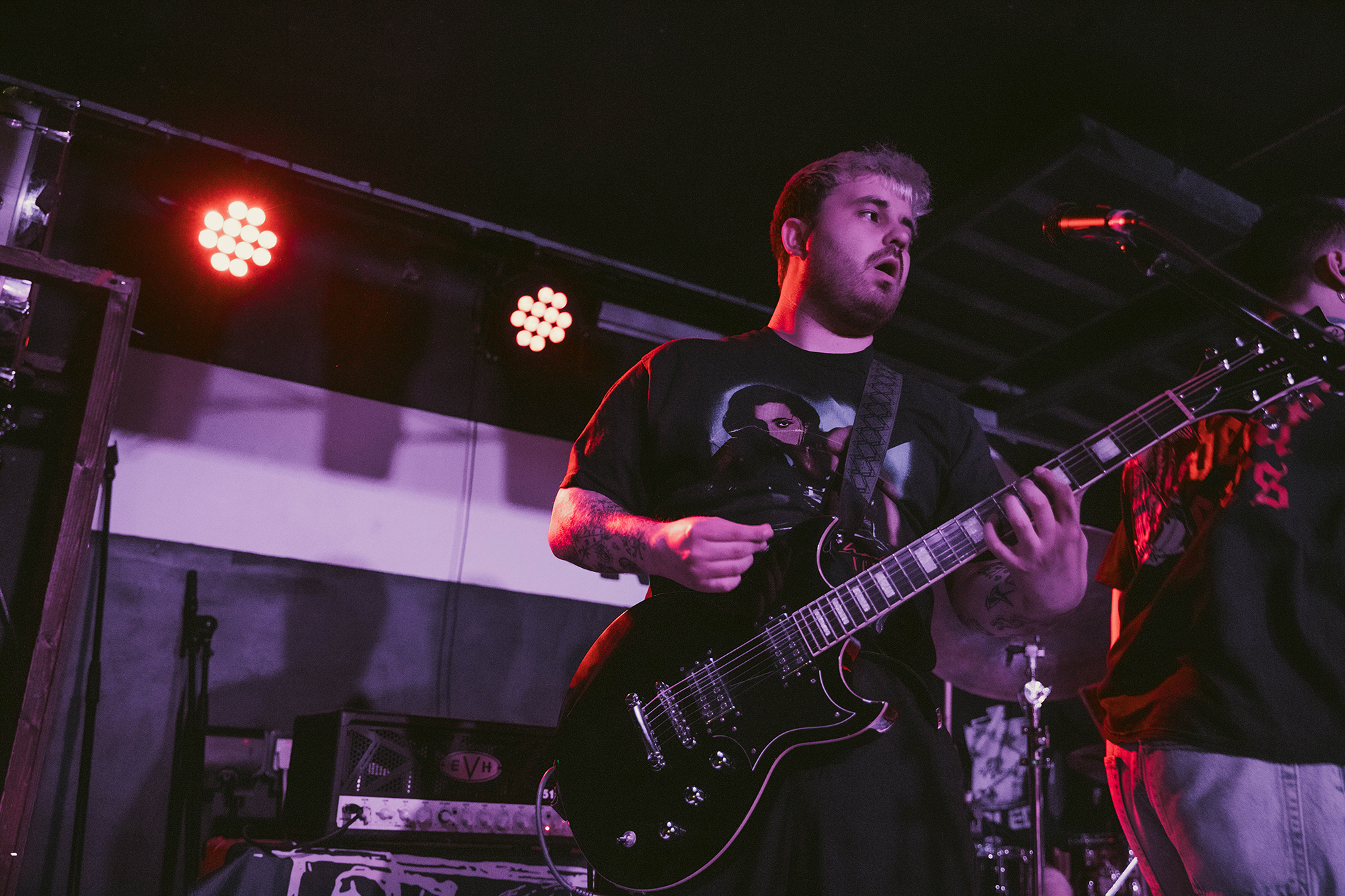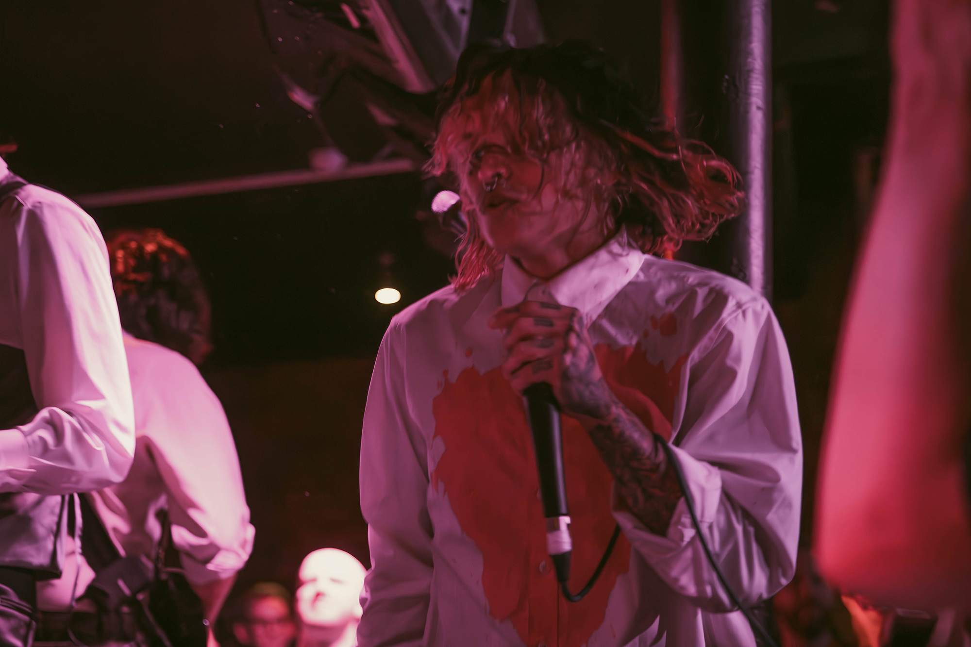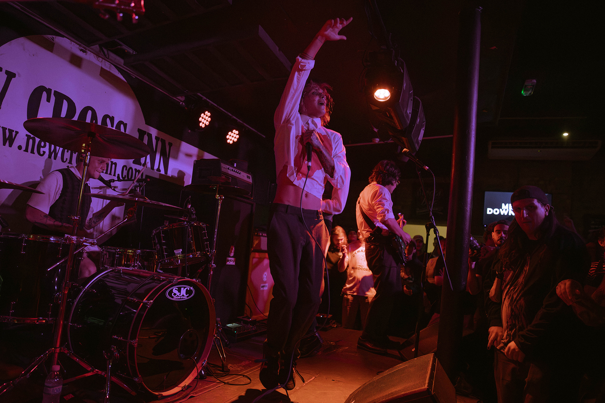 āSEEYOUSPACECOWBOY are on now!ā is the only warning those milling outside waiting, with the band on a full 15 minutes early. Barely seconds after people have piled in, Allow Us To Set The Scene does just that before they follow it with the mass singalong of Subtle Whispers To Take Your Breath Away. Connie Sgarbossa commands the crowd with ease, beckoning them forward and inciting singalongs as much as stage divers. The band are leaning heavily into the Coup De GracĆŖ aesthetic, white shirts for all with Sgarbossaās painted with a huge red heart. Stacking the set list with the new album is the obvious move, and one that pays huge dividends – unsurprising given its quality and the earworm hooks itās shot through with.