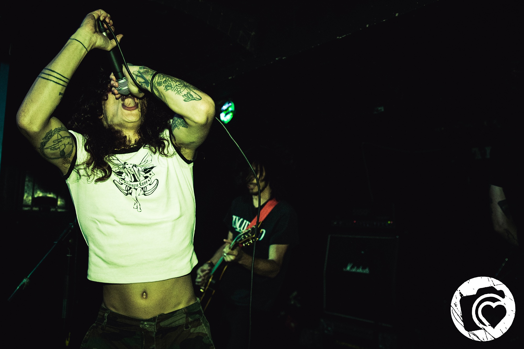 SEEYOUSPACECOWBOY creates the energy of a natural disaster it seems during the short but sweet 911 Call: “Help I’ve Overdosed On Philosophy!” with low gutturals and static riffs — Sgarbossa stands tall as she runs her finger across her neck sadistically. The pit opens all the way to the bar, arms are swinging and seamlessly You Don’t Understand The Liquor Is Calling The Shots Now Randy Bobandy. Bodies collide brutally during the one-minute thrash. People are now heading for the bar in search of water, desperately becoming dehydrated to no end, with one man whose body glistened with sweat like he was a vampire from Twilight making it his mission to find some water. You would have thought we were in the Sahara desert.