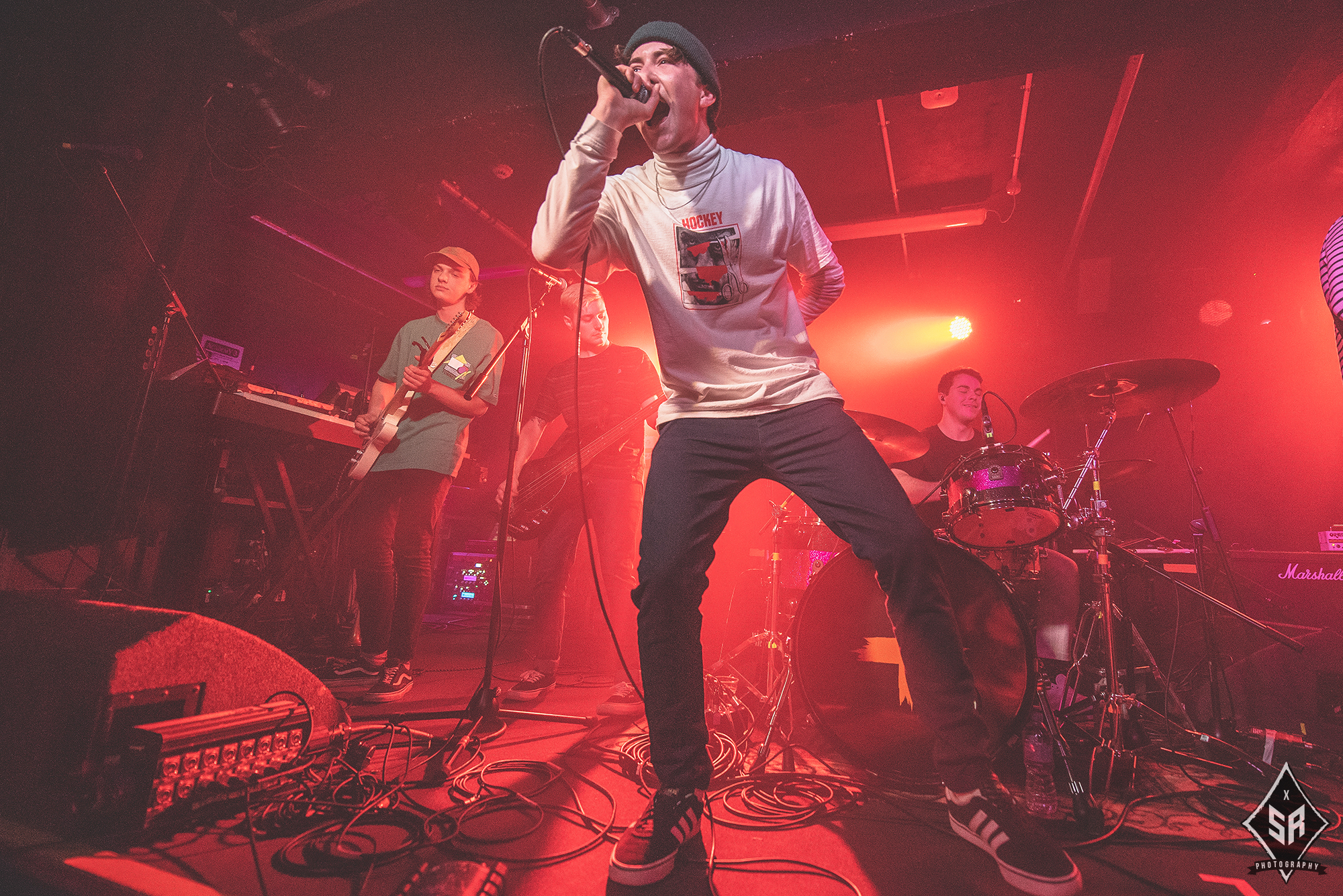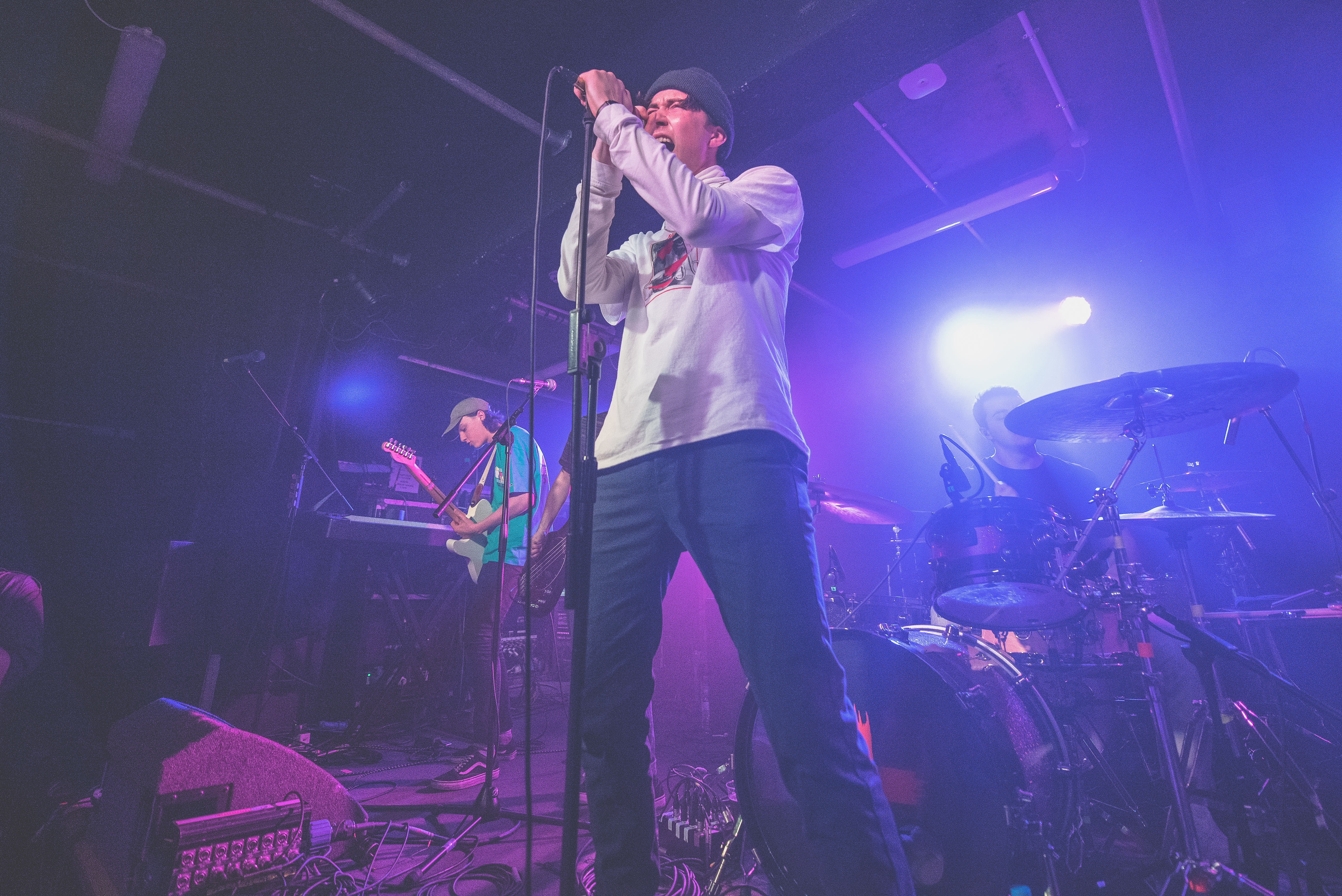 Tasked with getting the night started were Ontario pop-punk up-and-comers Bearings. With excitement for the night ahead sky-high and everyone queuing up early, the band were taking to the stage to a packed room. In a set absolutely bursting with charisma, the band’s boundless energy and catchy pop-punk repertoire quickly won the crowd over and in no time the sold-out crowd were fully behind them. The fact that the band won the whole room over in the span of a relatively short set is a massive testament to how good BEARINGS are. Despite this not being their headline gig and despite the fact the majority of the room weren’t there for them, there is no doubt that they gained themselves a whole cohort of new fans after pulling out all the stops in what was a solid set.