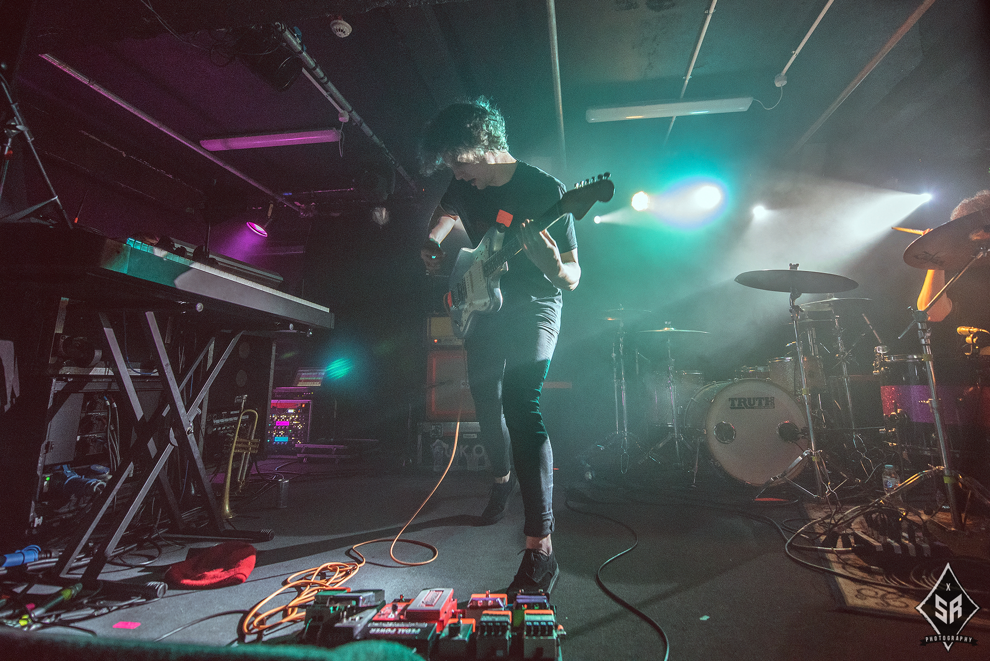 Keeping the night rolling were noisy pop-rockers from the highlands VUKOVI. Battling through illness and quite a few technical difficulties, VUKOVI got off to a lightning start bounding across the stage and showcasing their brand of infectious energy that rapidly spread through the room. It quickly became apparent that the technical difficulties with the monitors and microphone system were interfering with singer Janine Shilstone‘s ability to perform, and if the problem wasn’t going to be resolved, some improvisation was required. Once the opening song was concluded, Janine called for a makeshift box to be placed in the centre of the crowd – and it was stood atop that box that she performed the rest of the set.