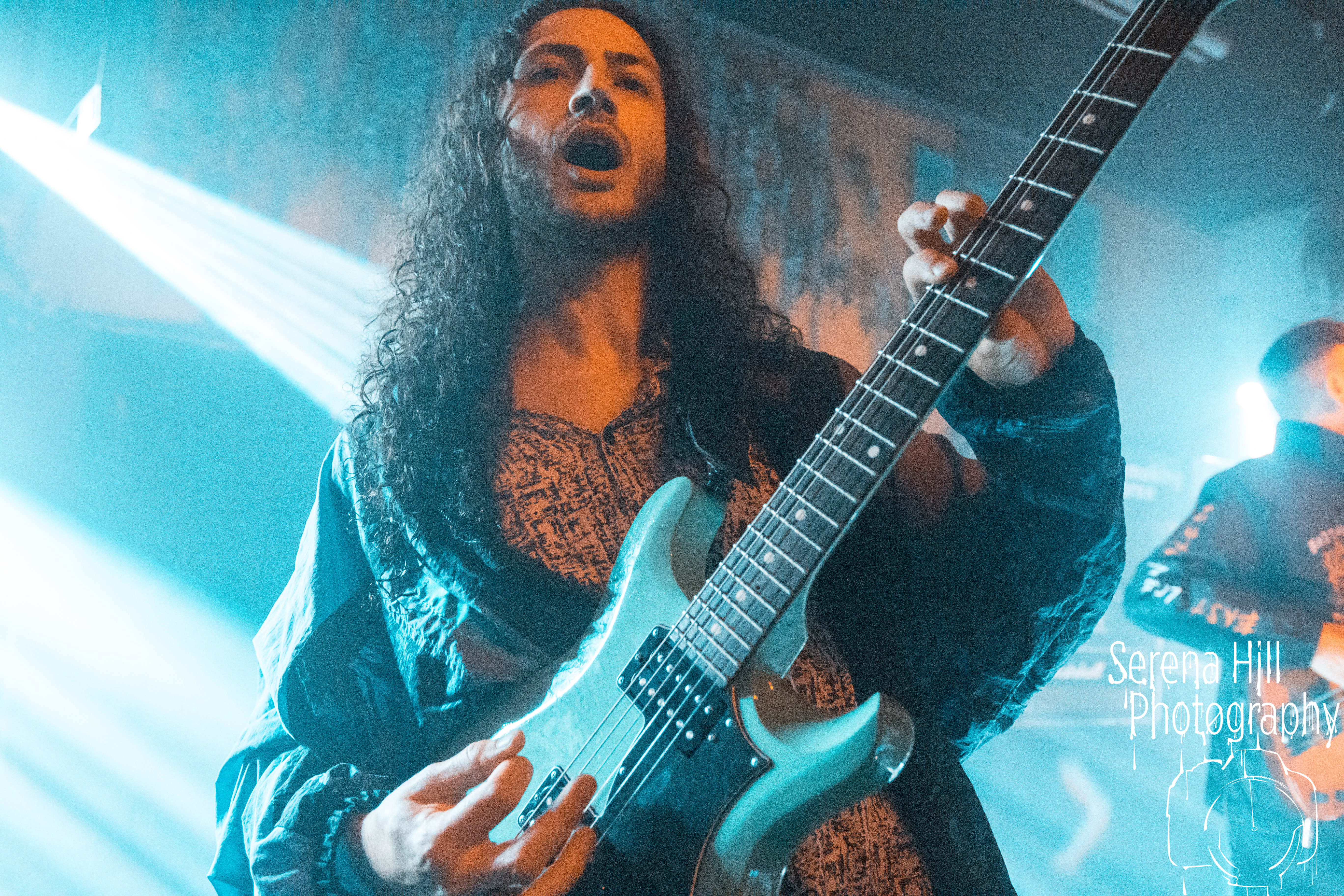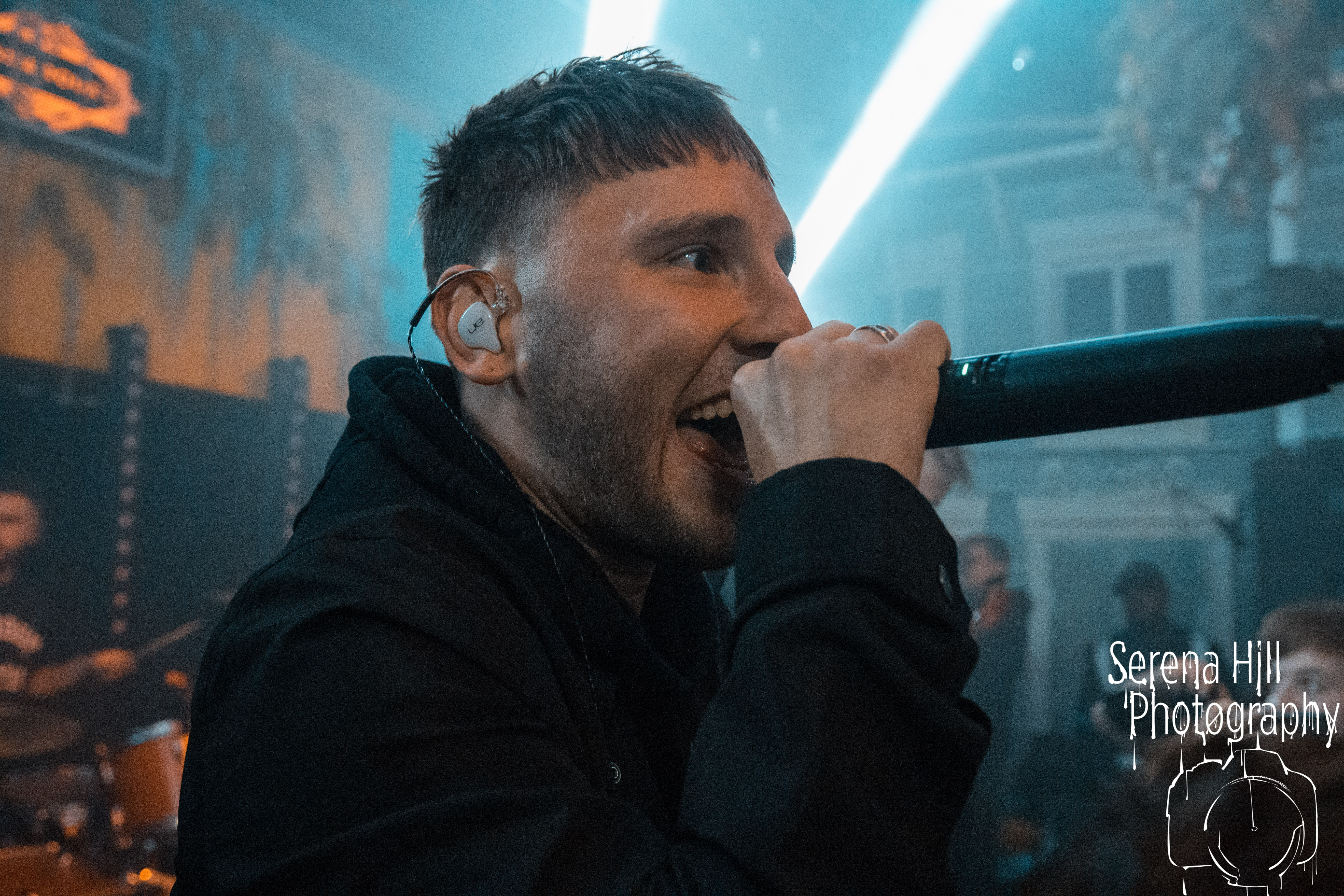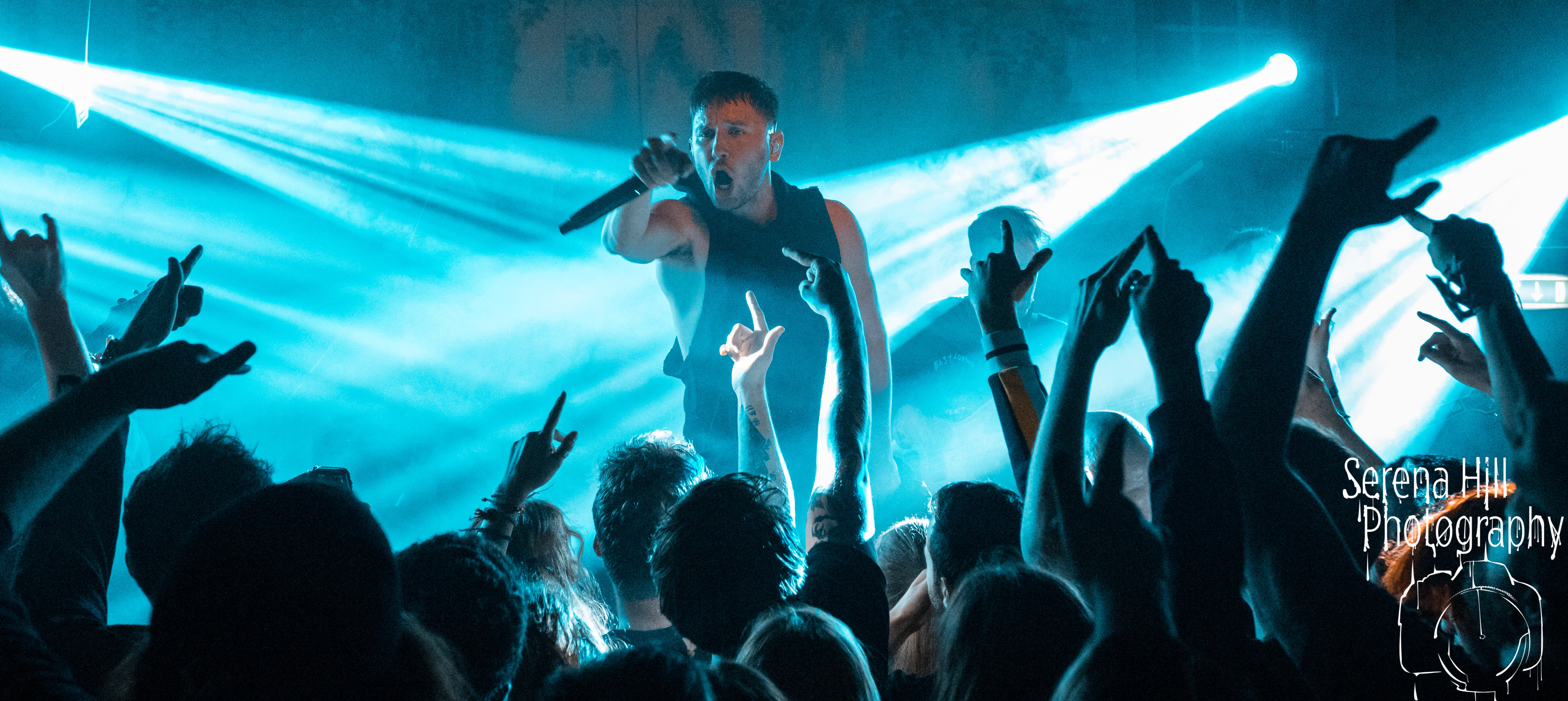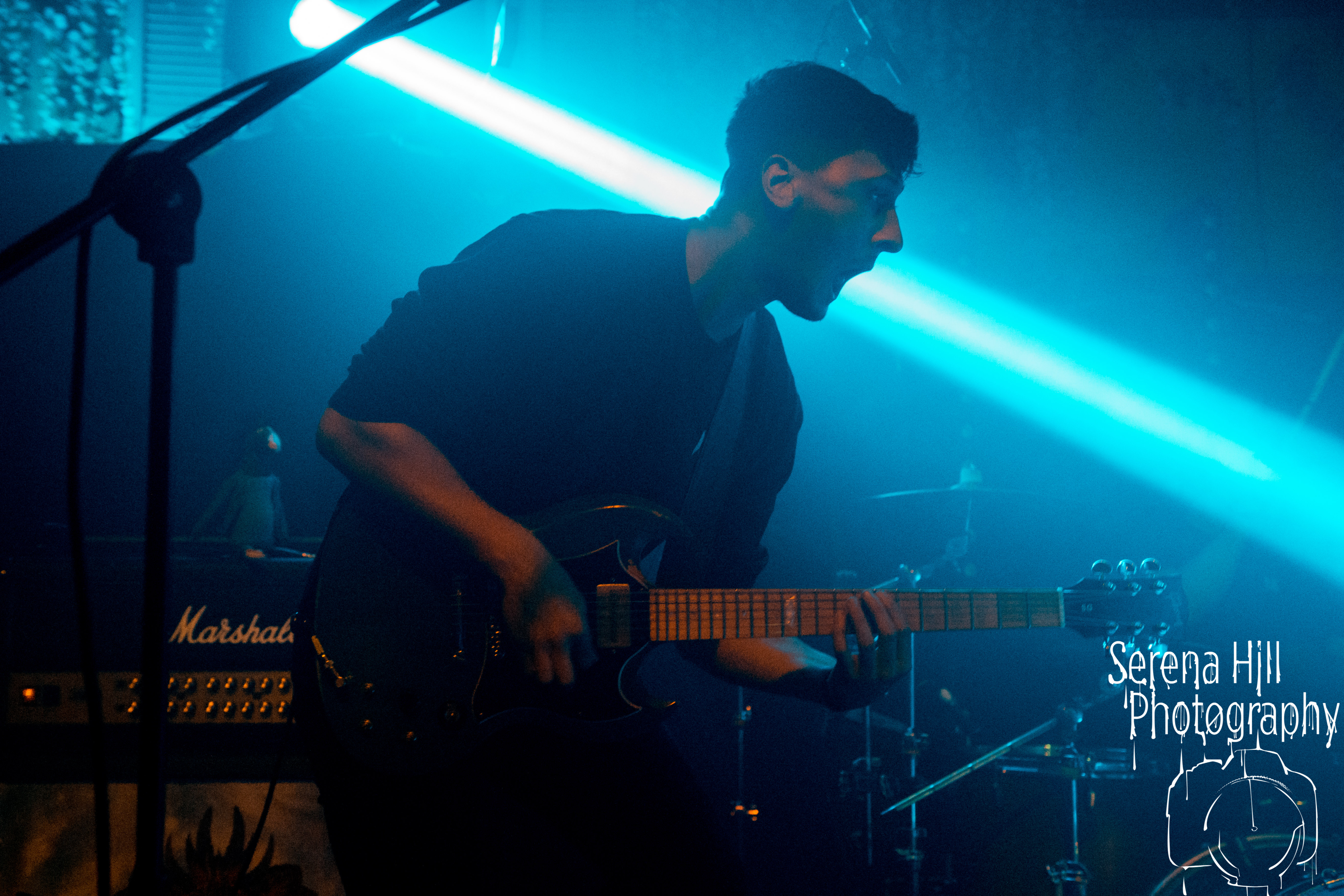With the downstairs head count growing and record company/PR bod-types and family members safely ensconced up on the balcony’s ‘AAA’ section, tonight’s headlining set is also a hometown affair for SHVPES. But if the West Midlands based five-piece are feeling any iota of pressure, it certainly doesn’t show. All it takes is Griffin Dickinson’s rallying cry of “Birmingham make some fucking noise!” and Mama Roux’s is transformed into a supercharged mass of bouncing bodies. The colossal grooves of One Man Army and State Of Mine fuse nu-metal riffs with anthemic sensibilities; the raw energy emanating from each song is infectious and heads are banging from front to back. The band’s penchant for genre-bending manifests itself through the hip-hop inflected Two Wrongs No Rights with Dickinson stalking across the stage thrusting the mic towards the rabid throng before him – his combination of hoarse roars and quickfire rapping giving us fifty shades of Zack De La Rocha. Mosh pits are encouraged, bodies are hoisted on to shoulders during Renegades and there are more walloping choruses that you could shake a stick at; by the time Counterfeit drops the crowd are roaring every single word. It’s a triumphant hometown outing for SHVPES and a potent musical display from a band rapidly rising through the ranks of UK’s metal scene.