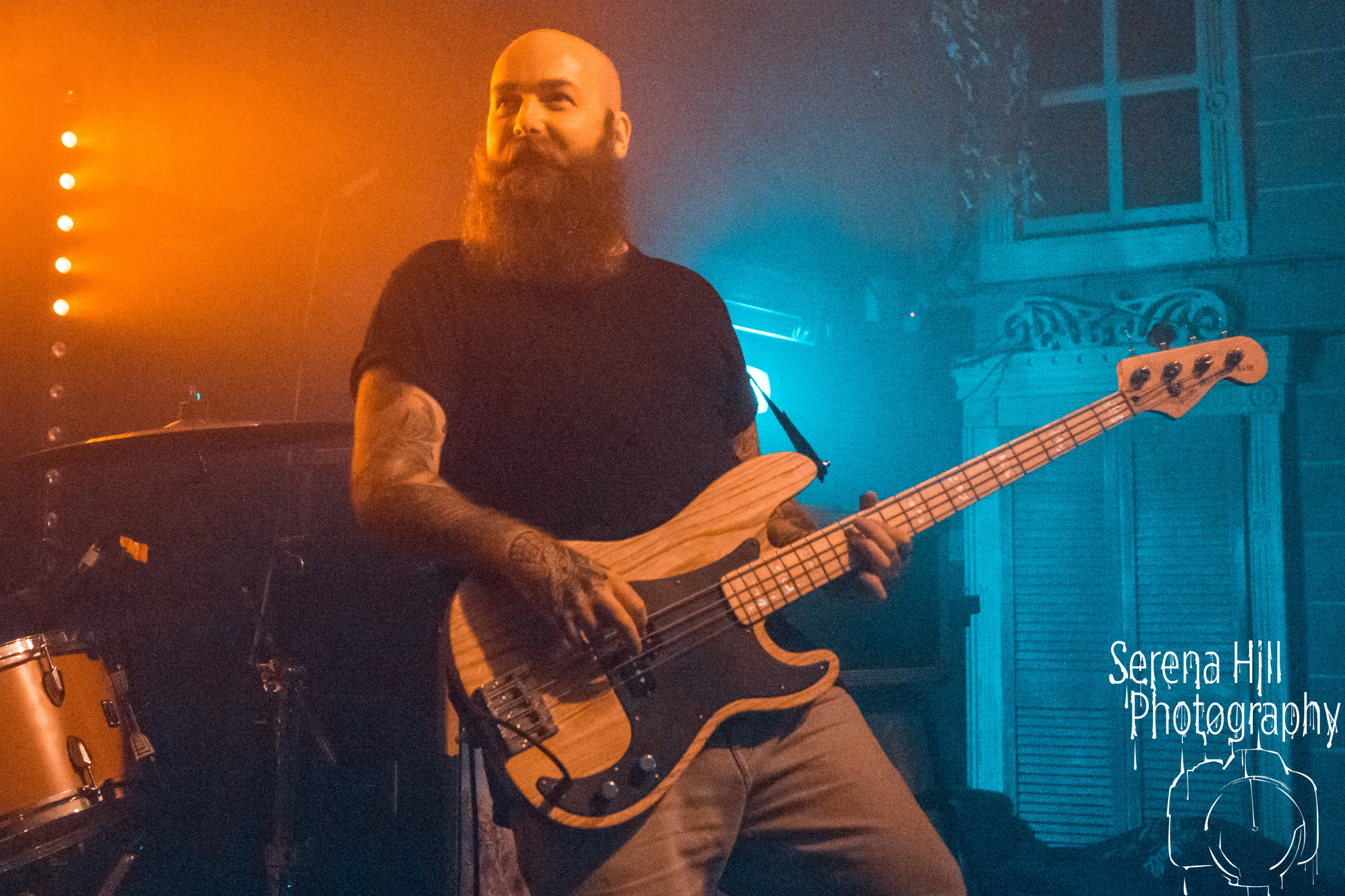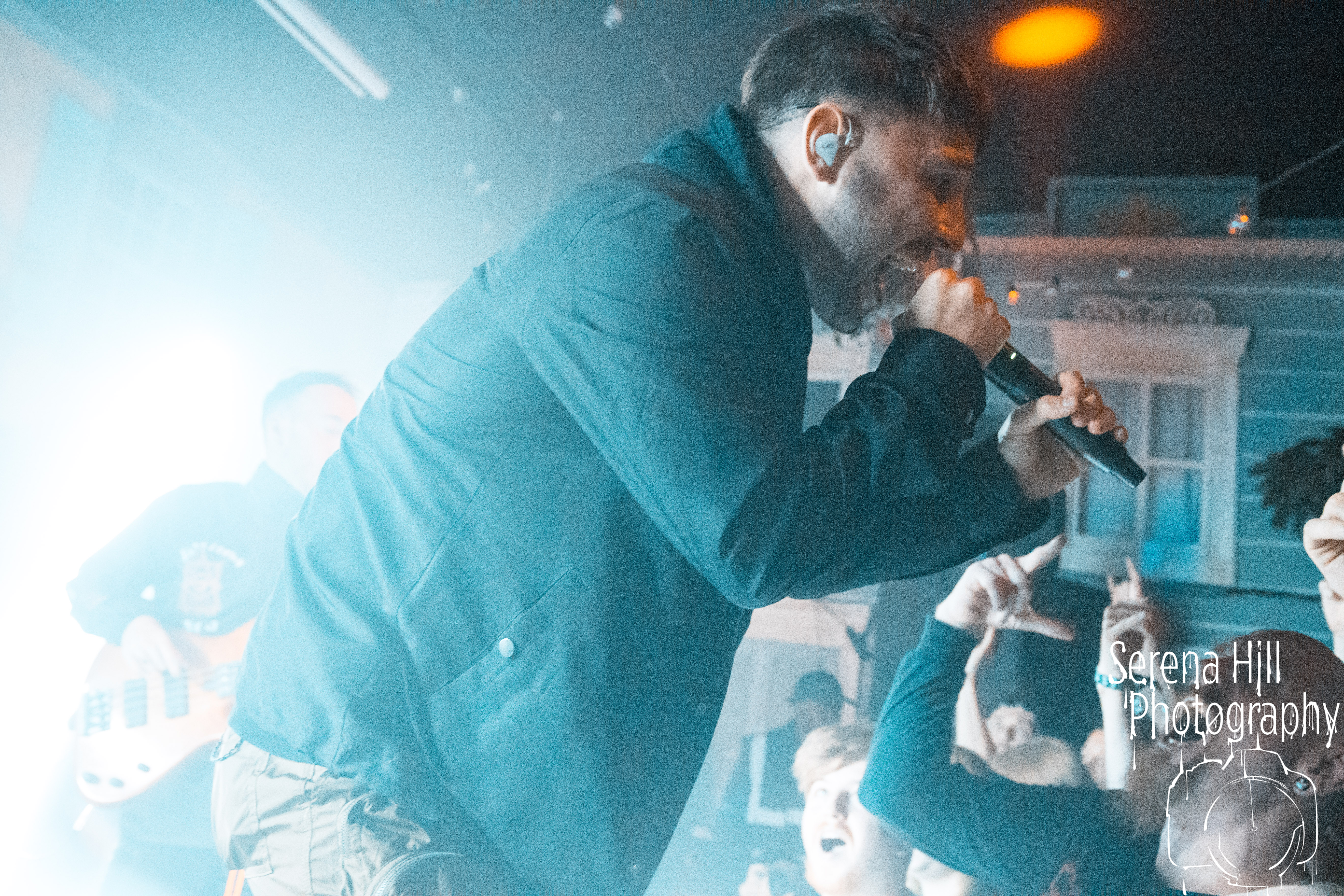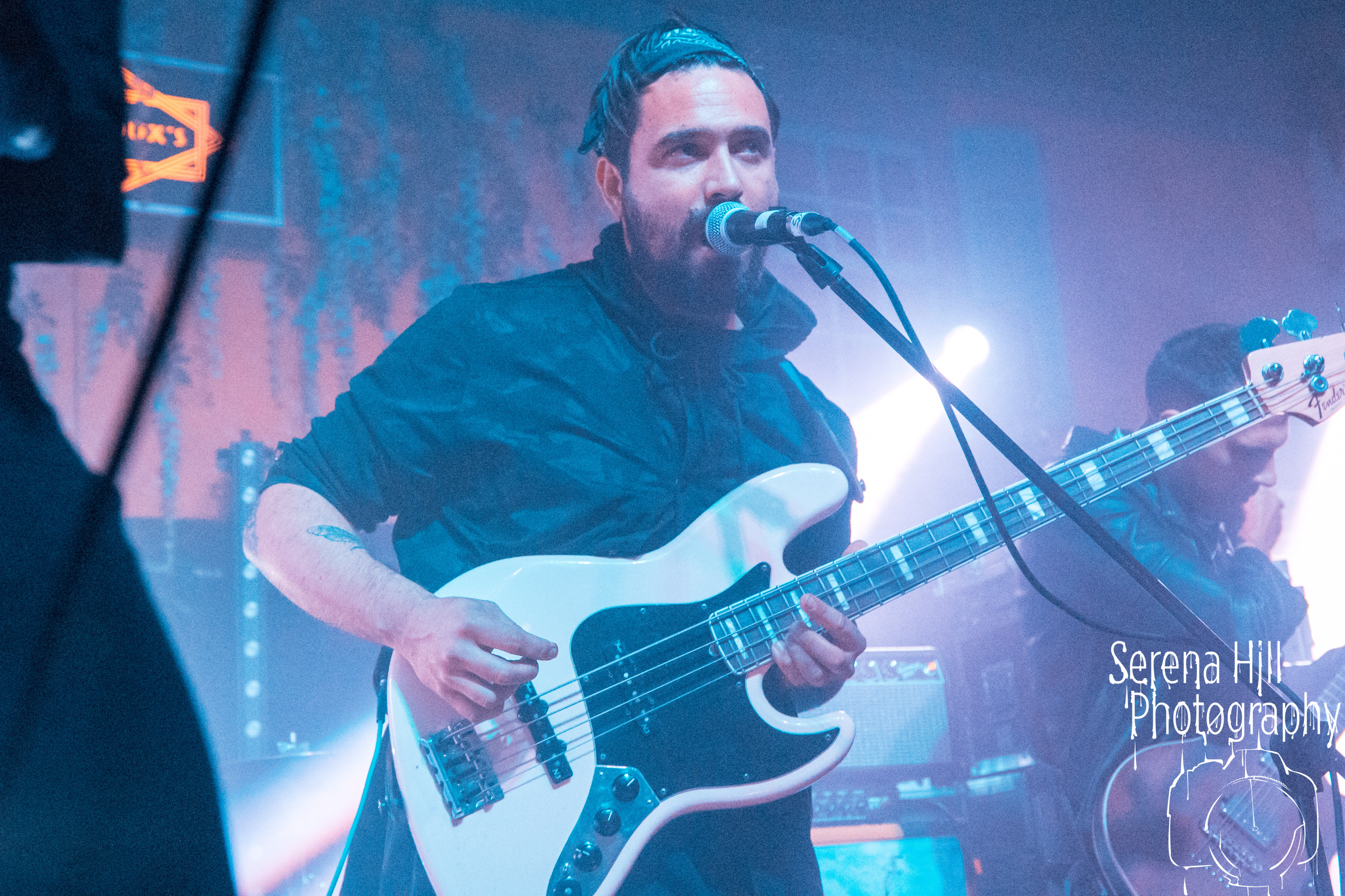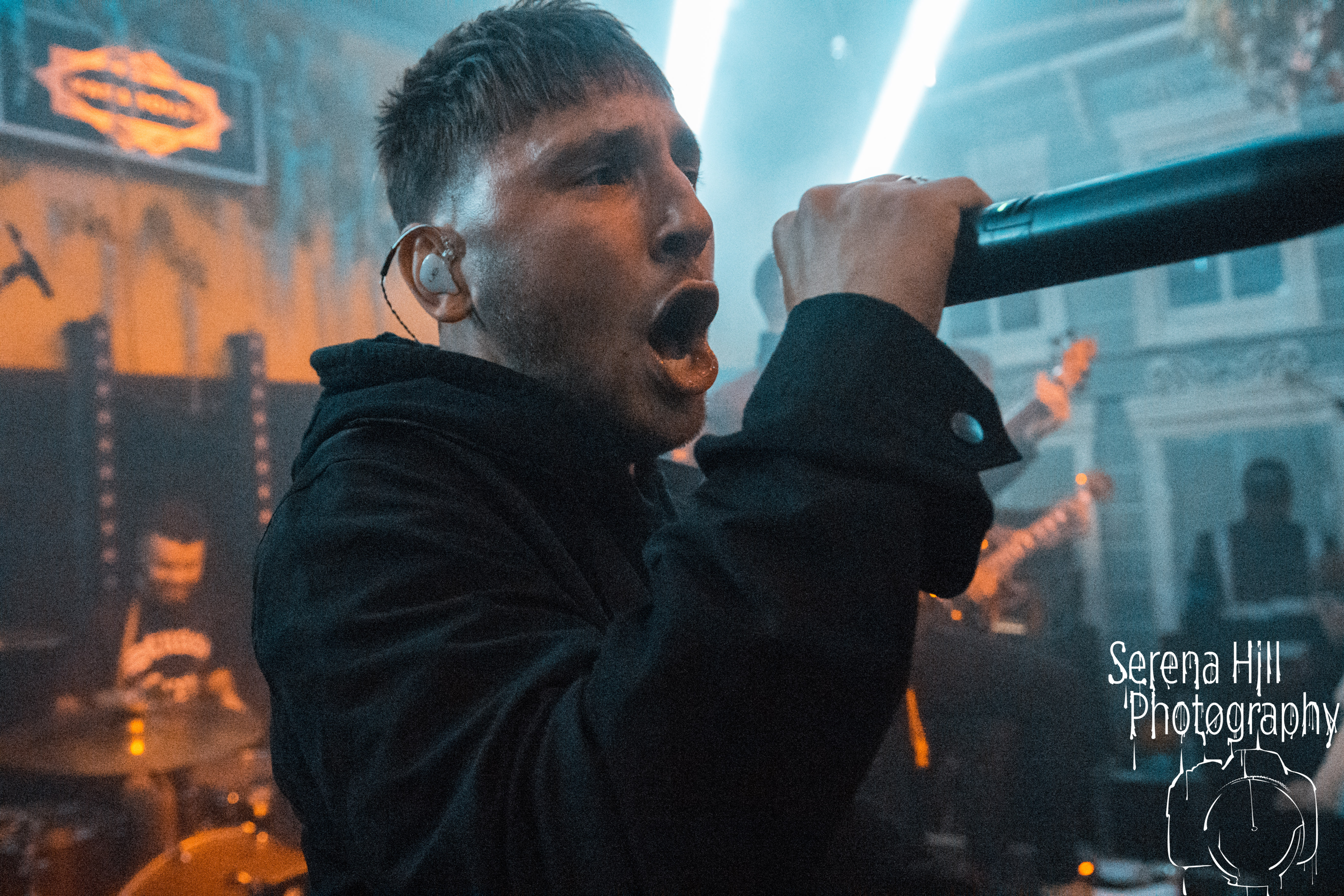 With the downstairs head count growing and record company/PR bod-types and family members safely ensconced up on the balcony’s ‘AAA’ section, tonight’s headlining set is also a hometown affair for SHVPES. But if the West Midlands based five-piece are feeling any iota of pressure, it certainly doesn’t show. All it takes is Griffin Dickinson’s rallying cry of “Birmingham make some fucking noise!” and Mama Roux’s is transformed into a supercharged mass of bouncing bodies. The colossal grooves of One Man Army and State Of Mine fuse nu-metal riffs with anthemic sensibilities; the raw energy emanating from each song is infectious and heads are banging from front to back. The band’s penchant for genre-bending manifests itself through the hip-hop inflected Two Wrongs No Rights with Dickinson stalking across the stage thrusting the mic towards the rabid throng before him – his combination of hoarse roars and quickfire rapping giving us fifty shades of Zack De La Rocha. Mosh pits are encouraged, bodies are hoisted on to shoulders during Renegades and there are more walloping choruses that you could shake a stick at; by the time Counterfeit drops the crowd are roaring every single word. It’s a triumphant hometown outing for SHVPES and a potent musical display from a band rapidly rising through the ranks of UK’s metal scene.