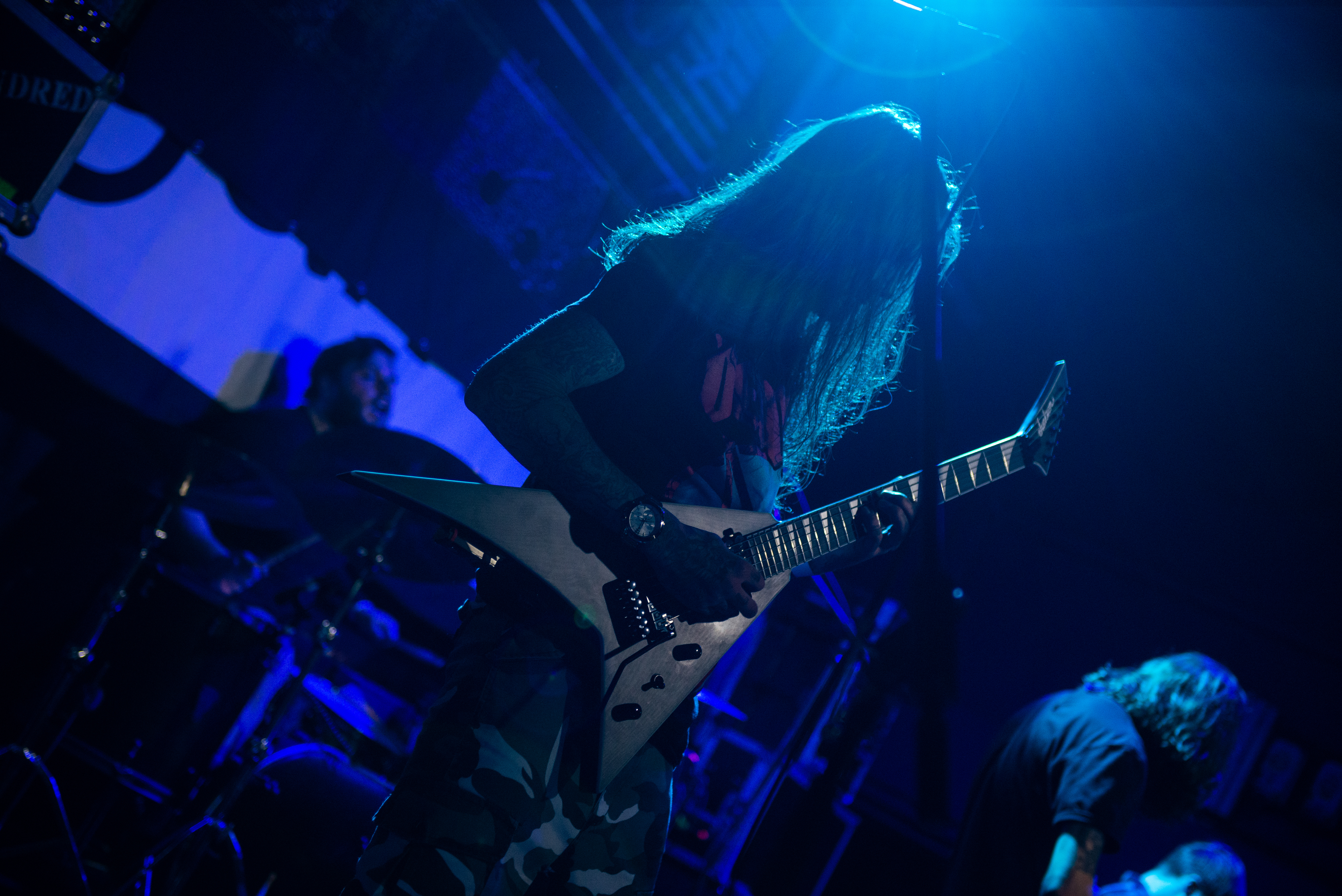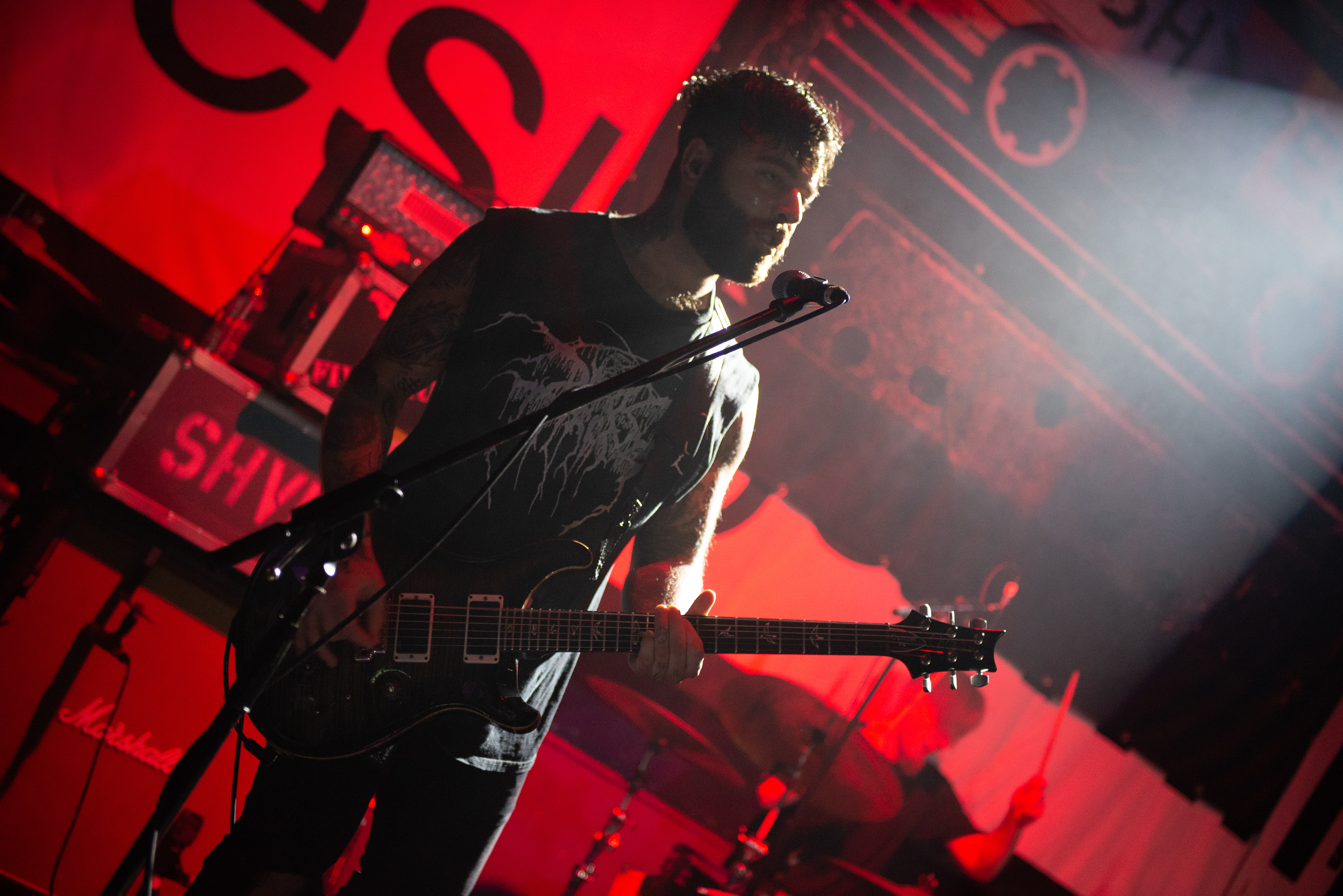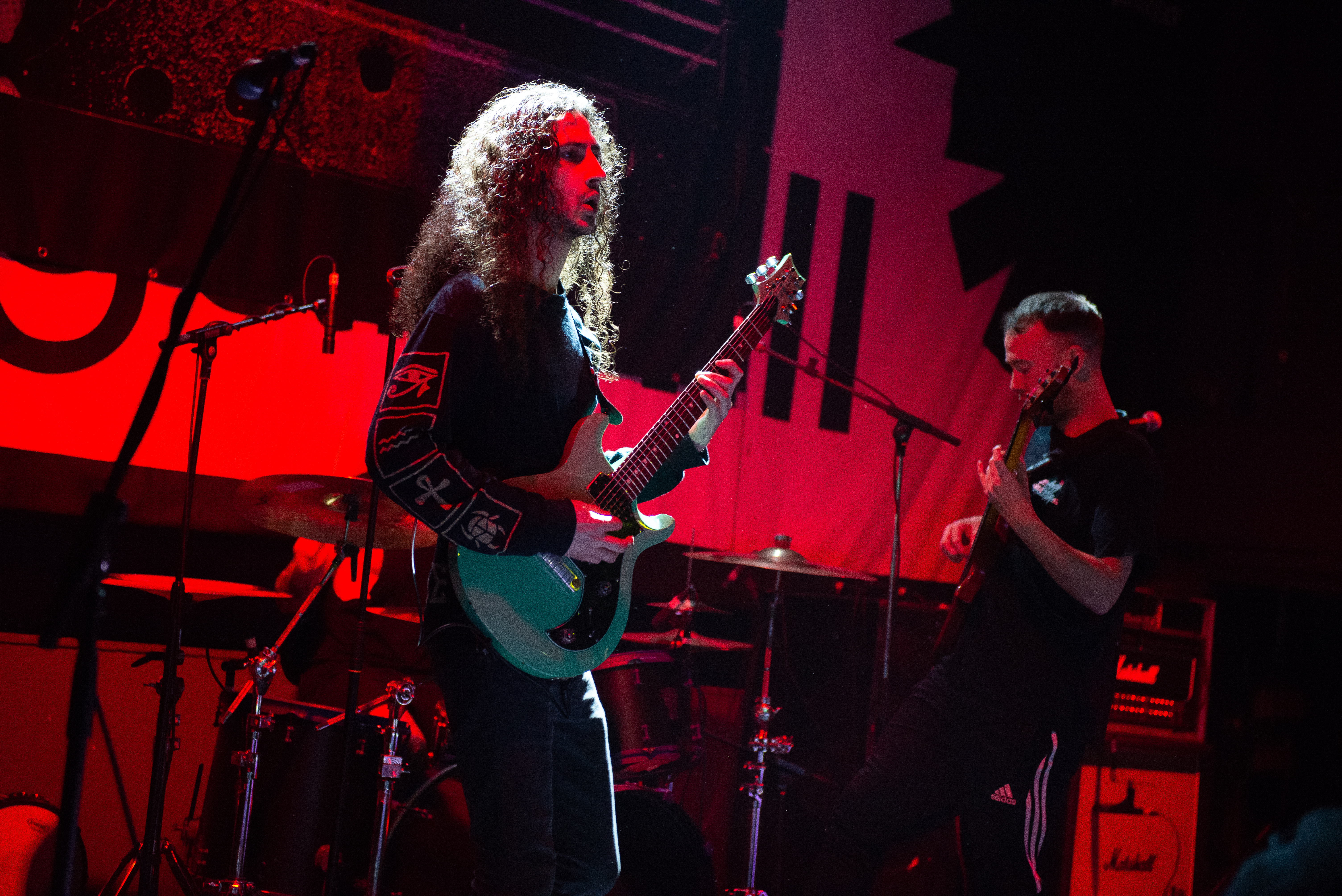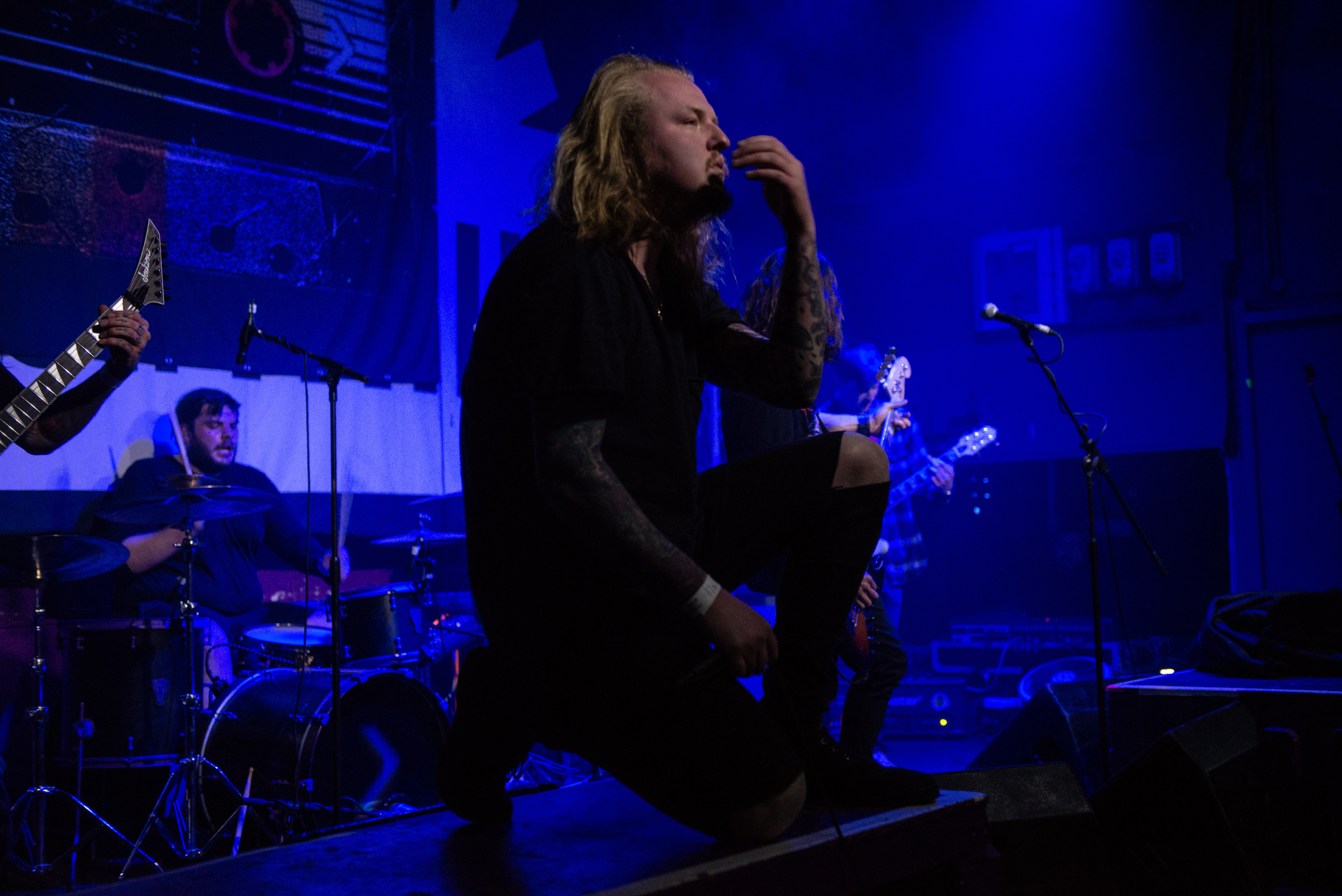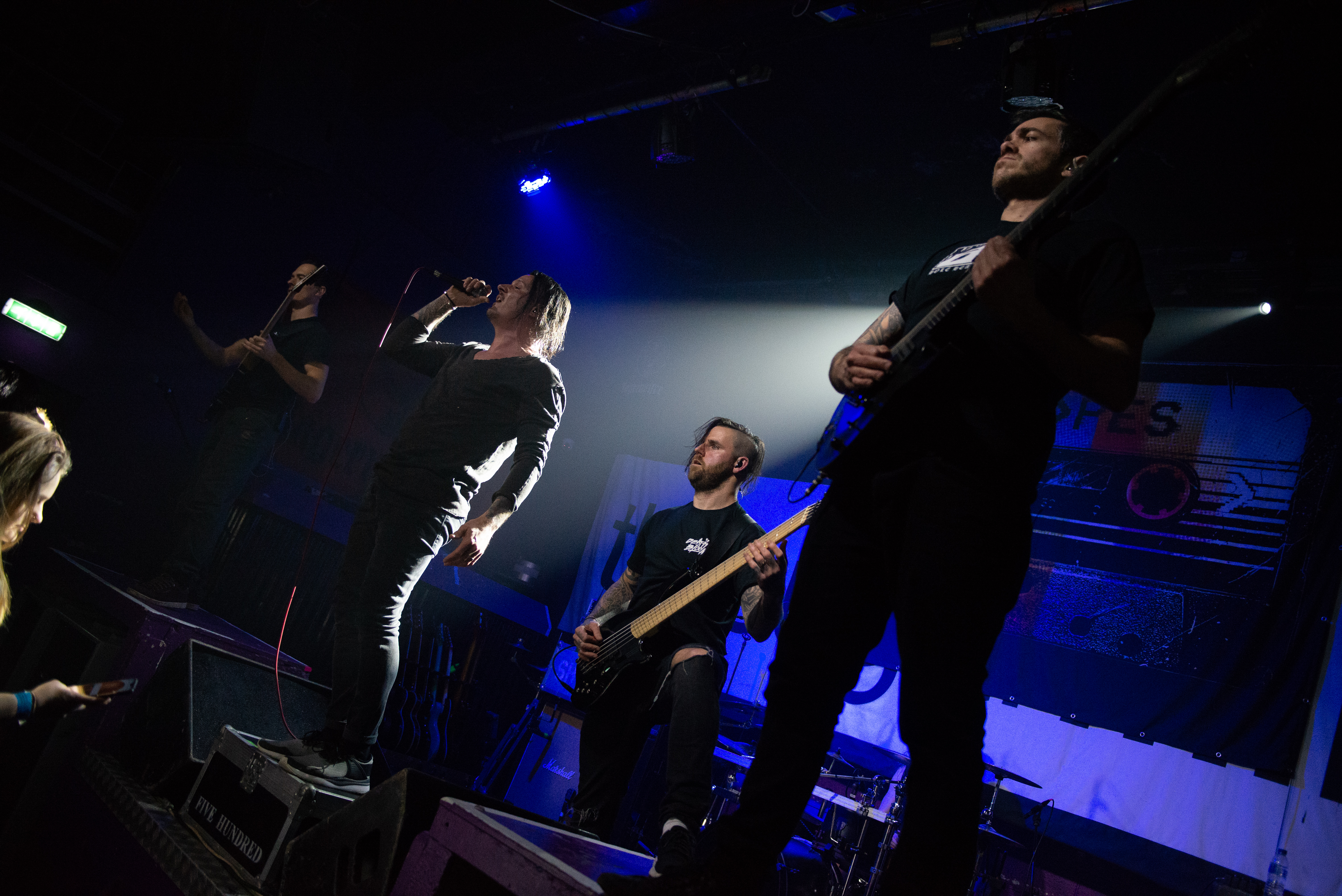 Keeping up the overall sense of brutality were Nottingham’s THE FIVE HUNDRED, who were armed with a setlist full of crushing technical grooves, haunting melodies, and throbbing breakdowns. However, with their set going faultlessly, the microphone of the outfit’s frontman, Jonathan Woods-Eley, who up until that point had been delivering a constant stream of glass-shattering roars, gave out. This wasn’t noticed at all by those at the front, but it left the members of the crowd who were stood further away hearing mainly hearing instrumentals with very subtle vocals, and despite the fact that the issue with the microphone was sorted out post-haste, it did take the gloss off what had been an incredible performance.