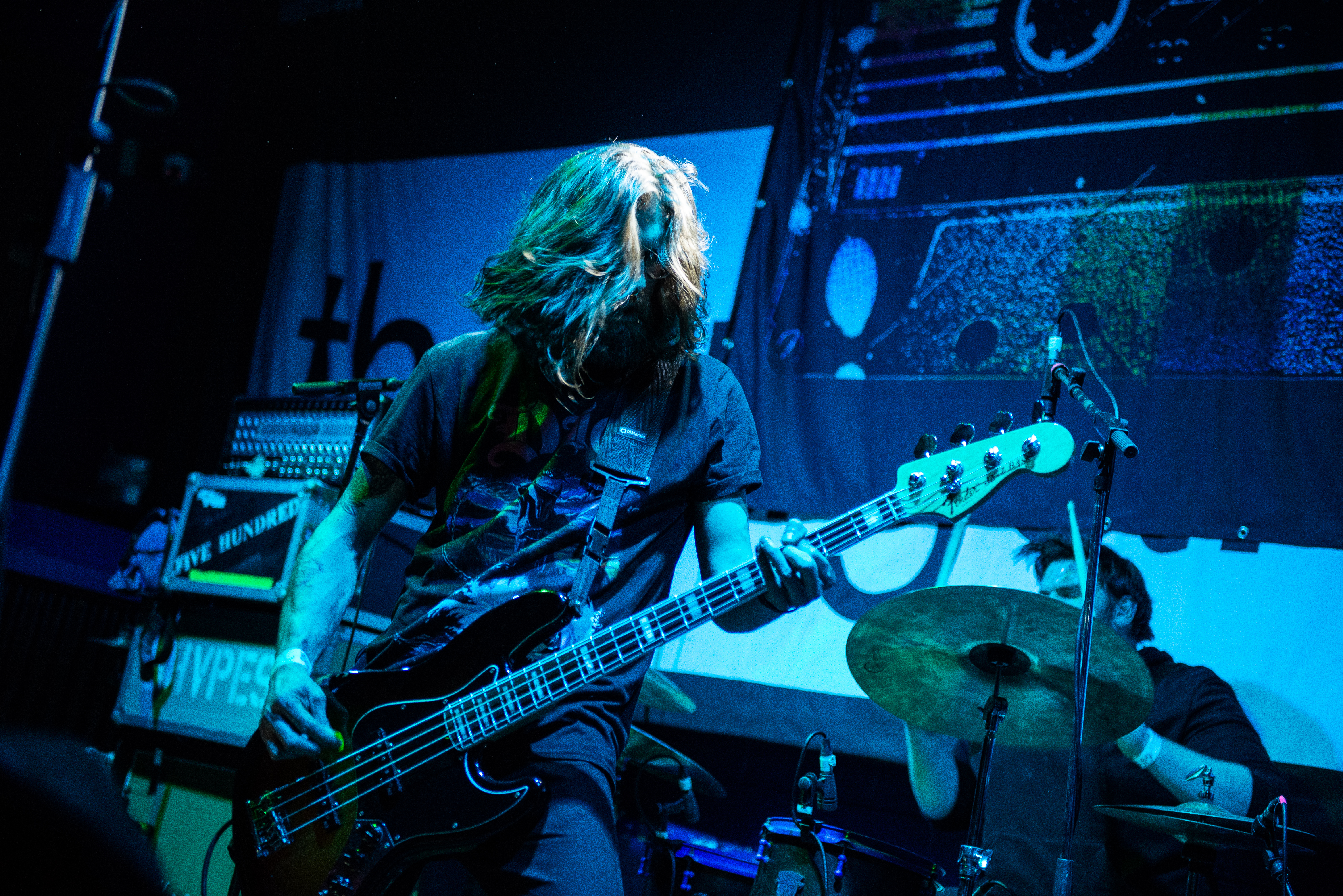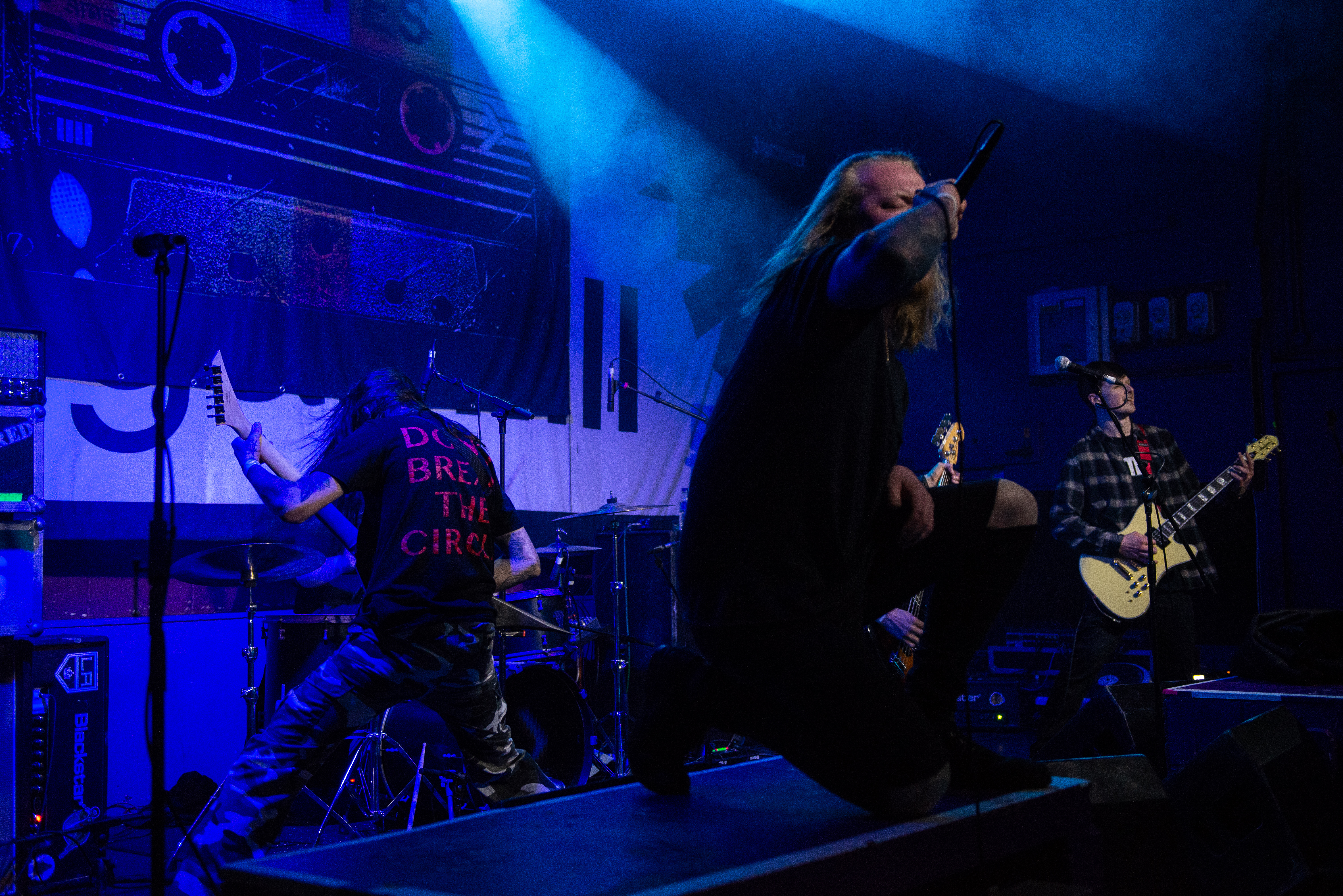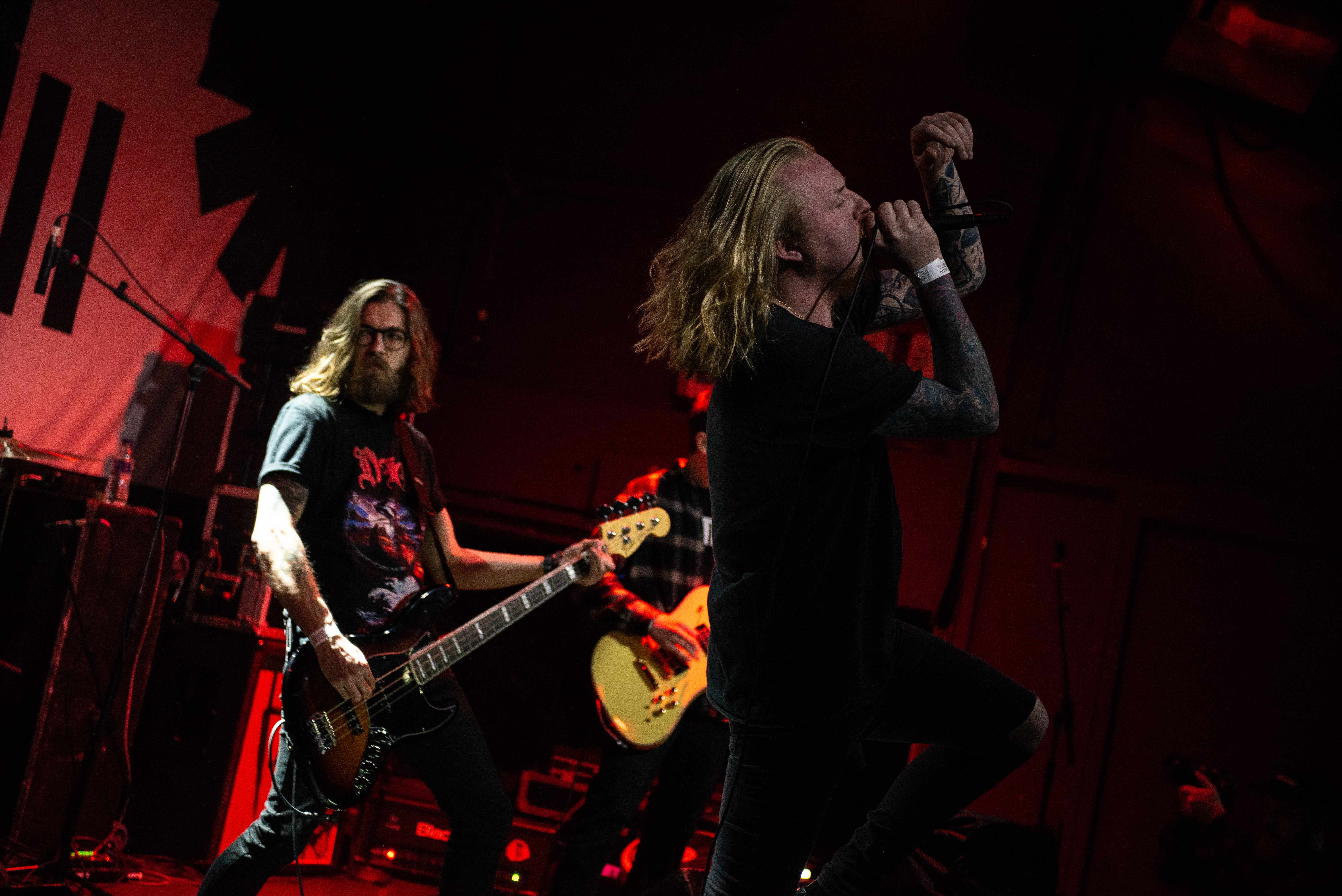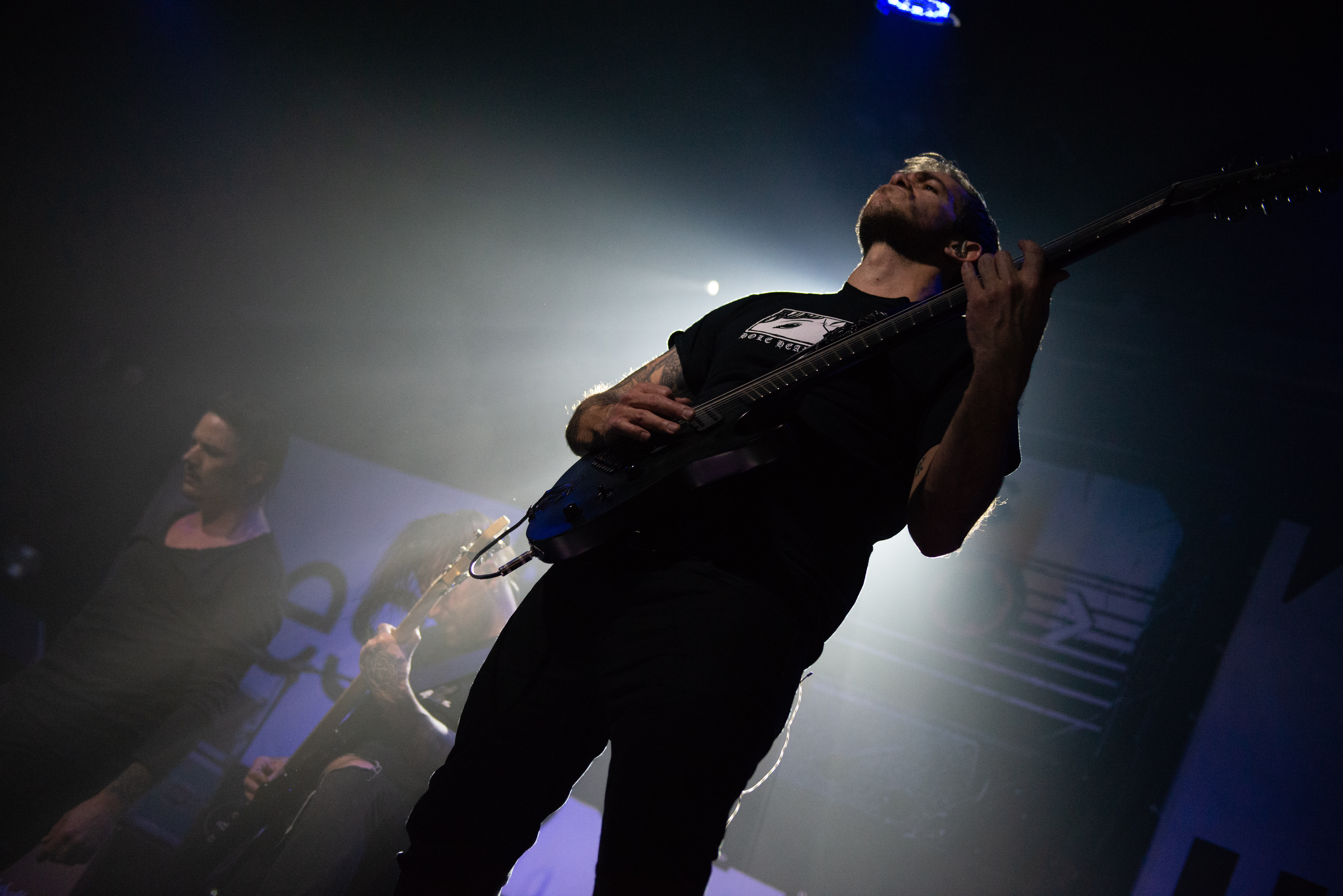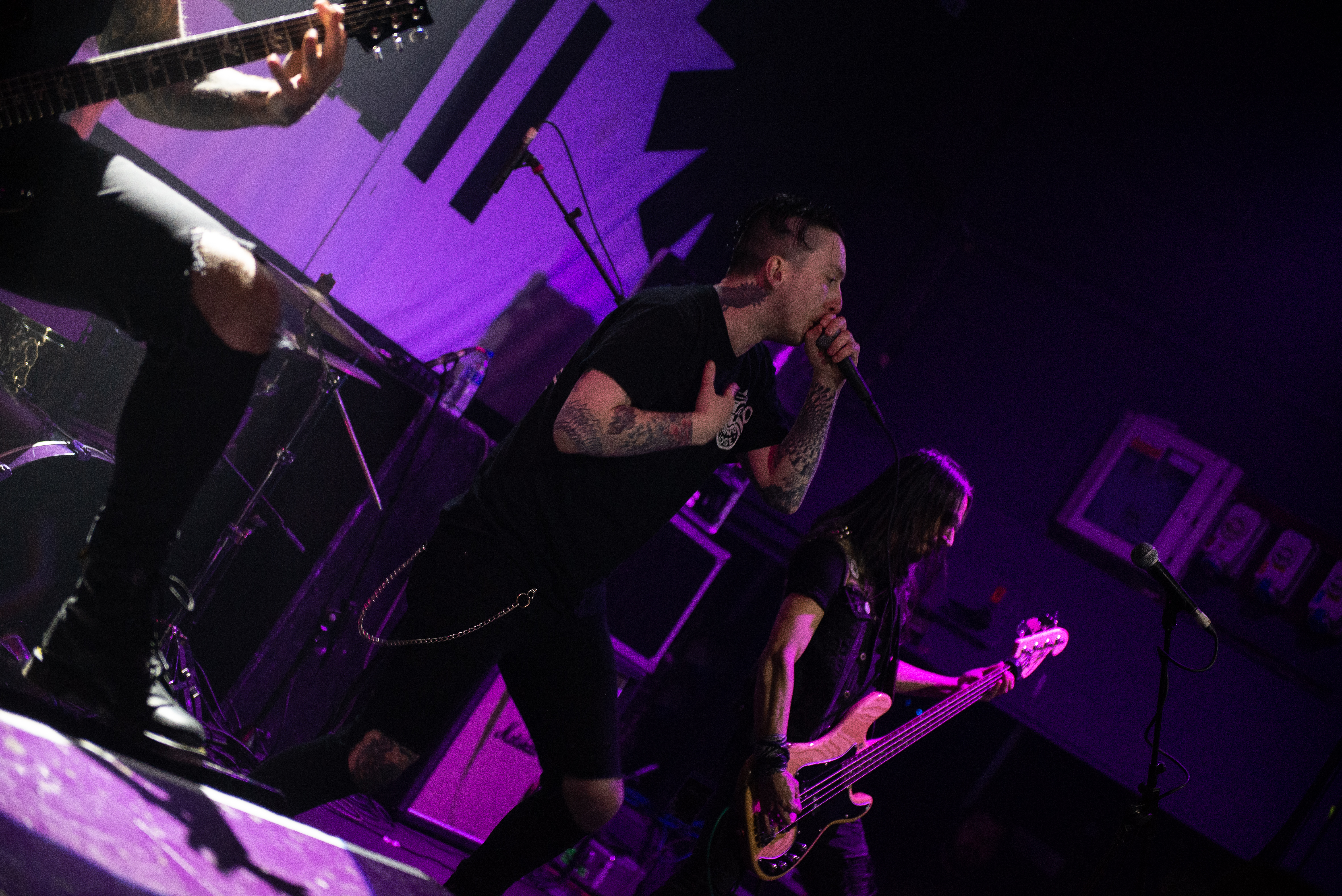 Keeping up the overall sense of brutality were Nottingham’s THE FIVE HUNDRED, who were armed with a setlist full of crushing technical grooves, haunting melodies, and throbbing breakdowns. However, with their set going faultlessly, the microphone of the outfit’s frontman, Jonathan Woods-Eley, who up until that point had been delivering a constant stream of glass-shattering roars, gave out. This wasn’t noticed at all by those at the front, but it left the members of the crowd who were stood further away hearing mainly hearing instrumentals with very subtle vocals, and despite the fact that the issue with the microphone was sorted out post-haste, it did take the gloss off what had been an incredible performance.