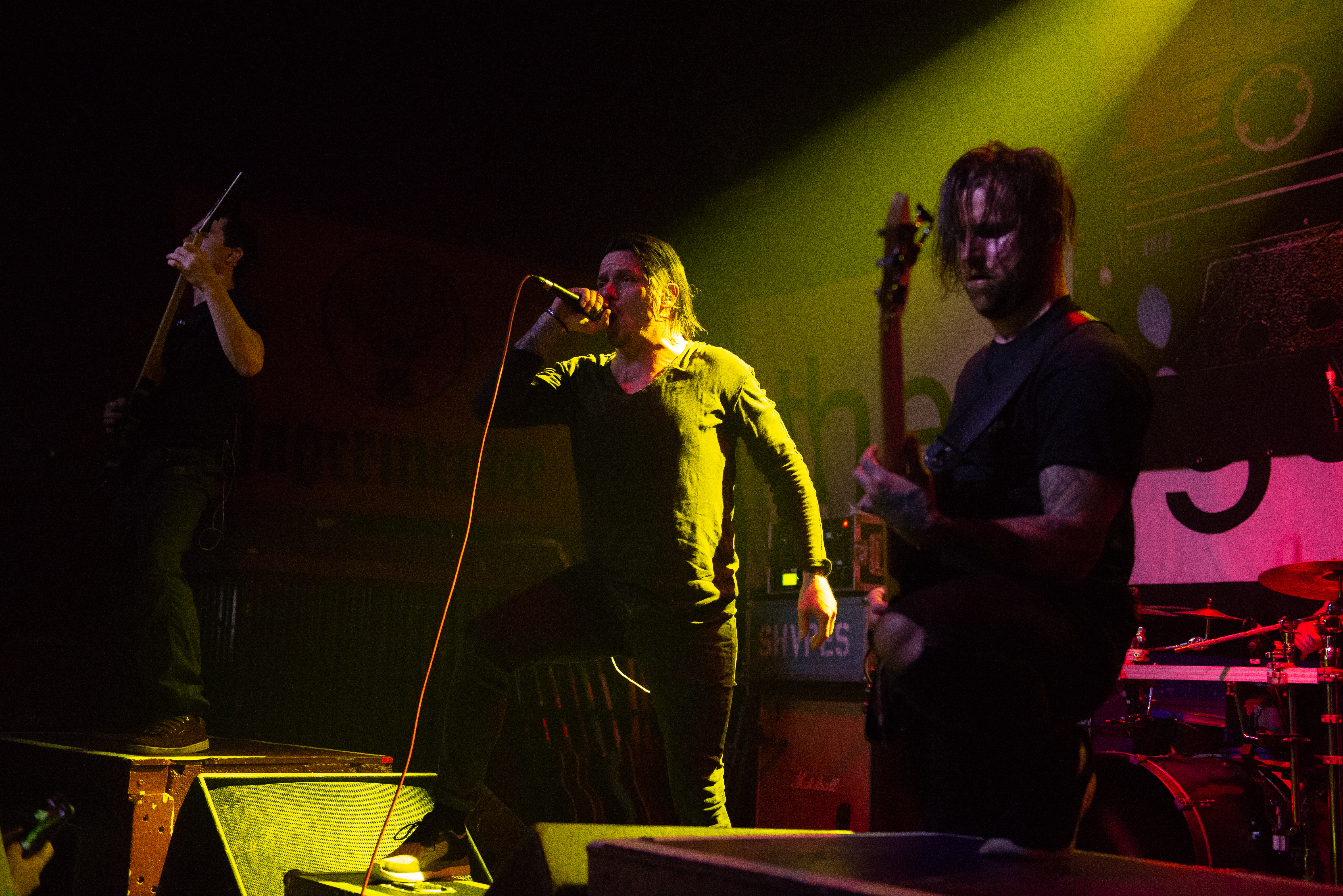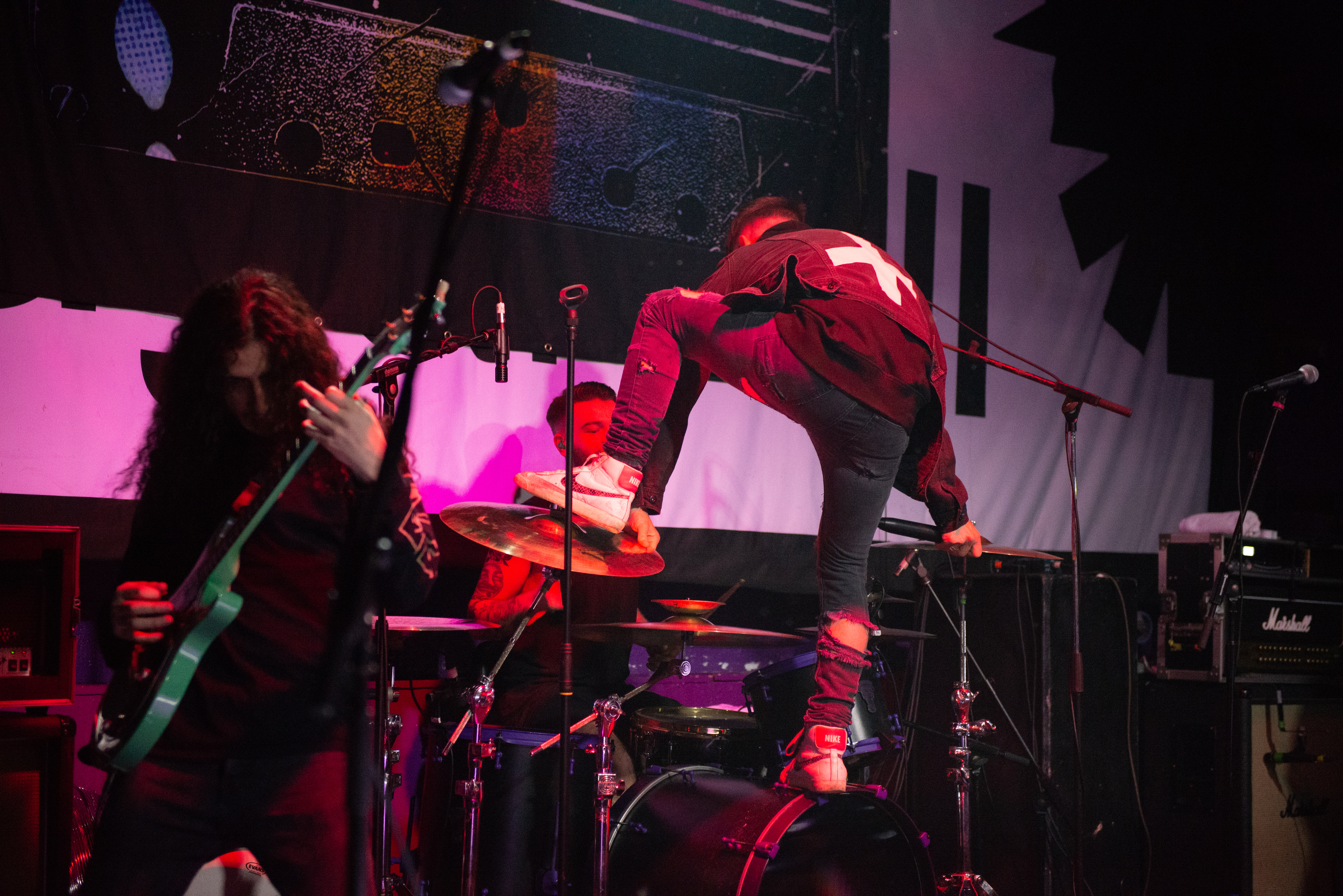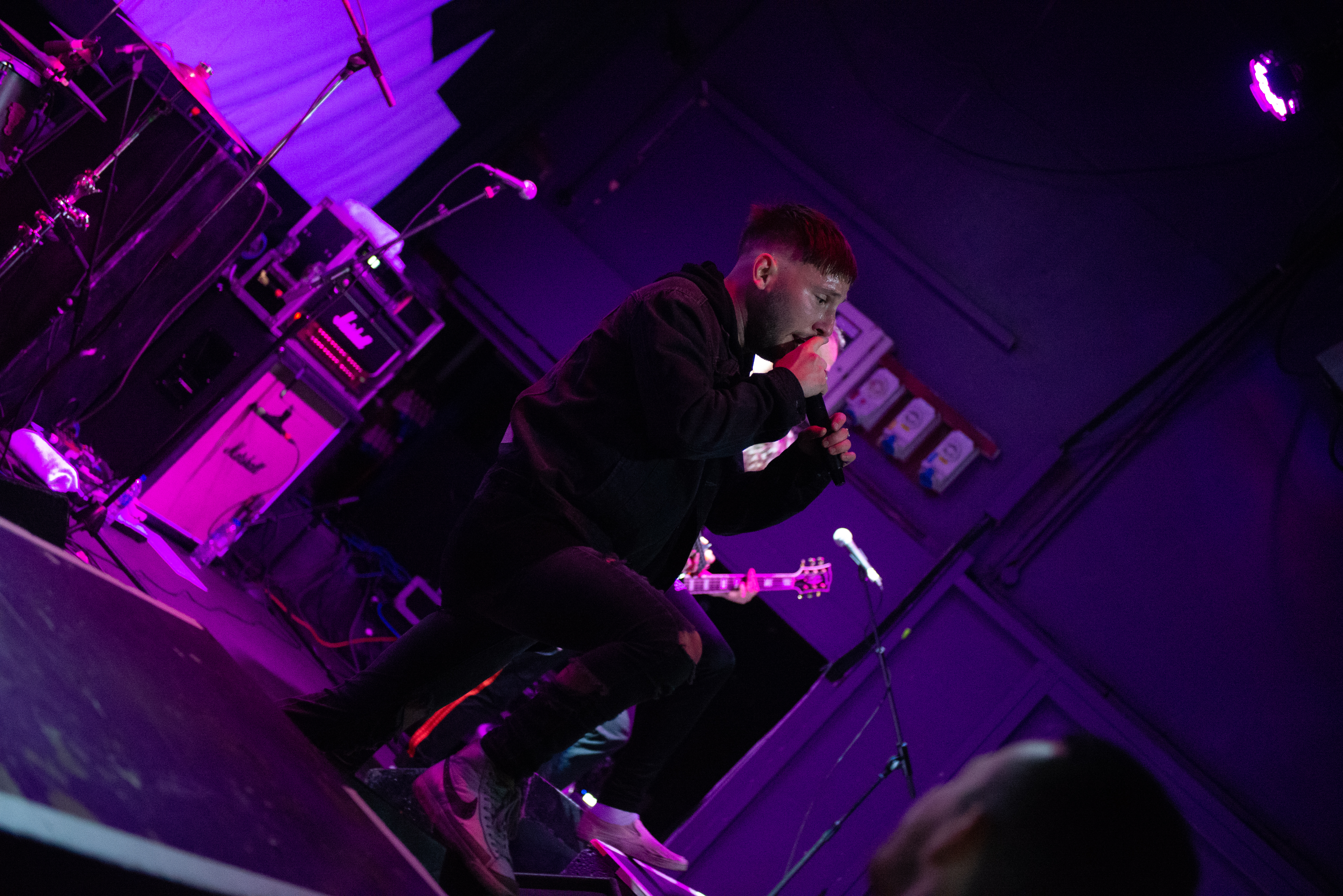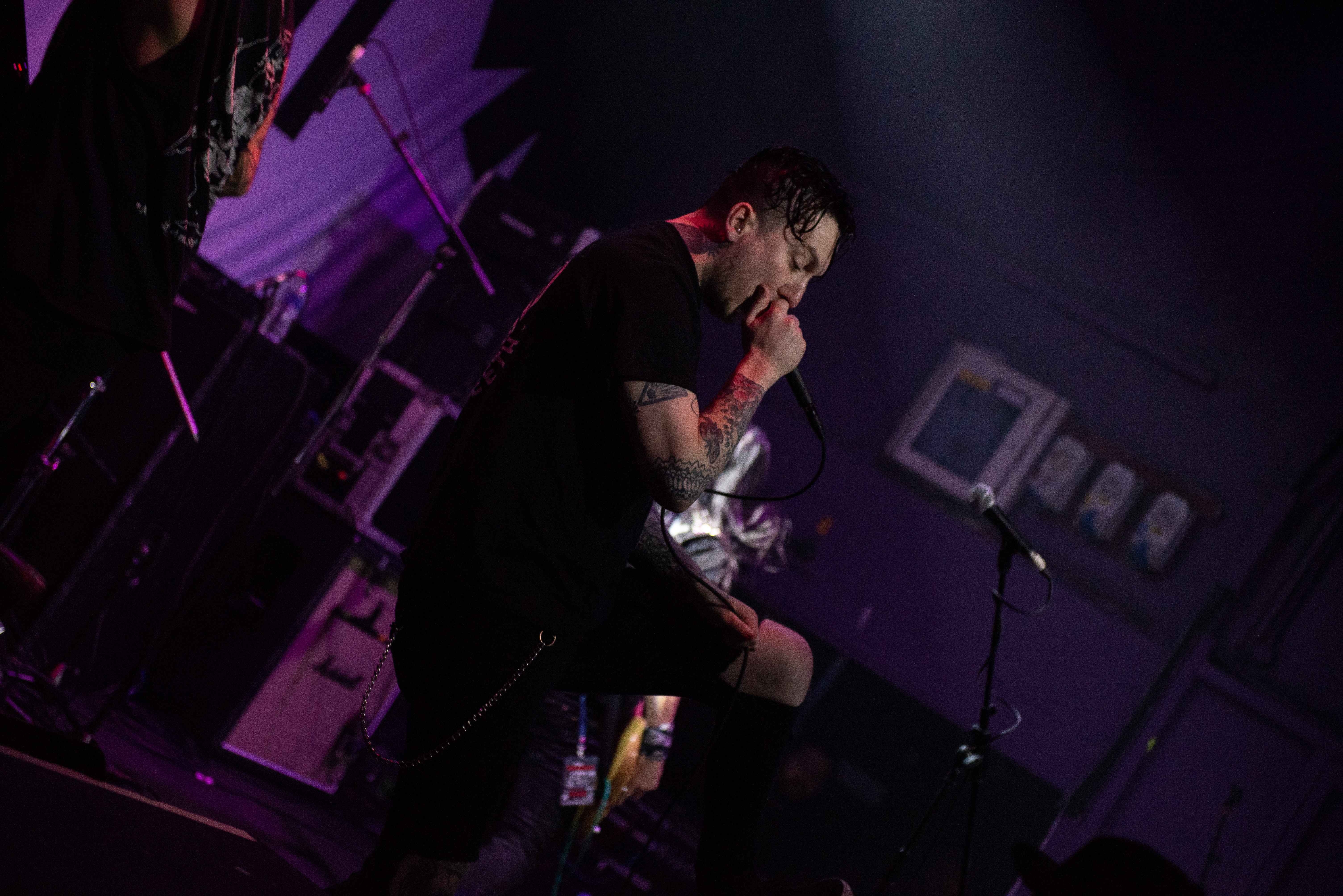 First up were local hardcore lads BLACK COAST, who put on an animated set full of loud, pulsating tunes, and a performance which contained much aggression, and only became more menacing as things proceeded, with frontman Charlie Hewitt frequently standing on the edge of the stage during the instrumentals glaring at everybody, and regularly jumping off into what was, at this point in the evening, a rather sparse audience, stomping around and shouting and screaming, at times directly into their faces.