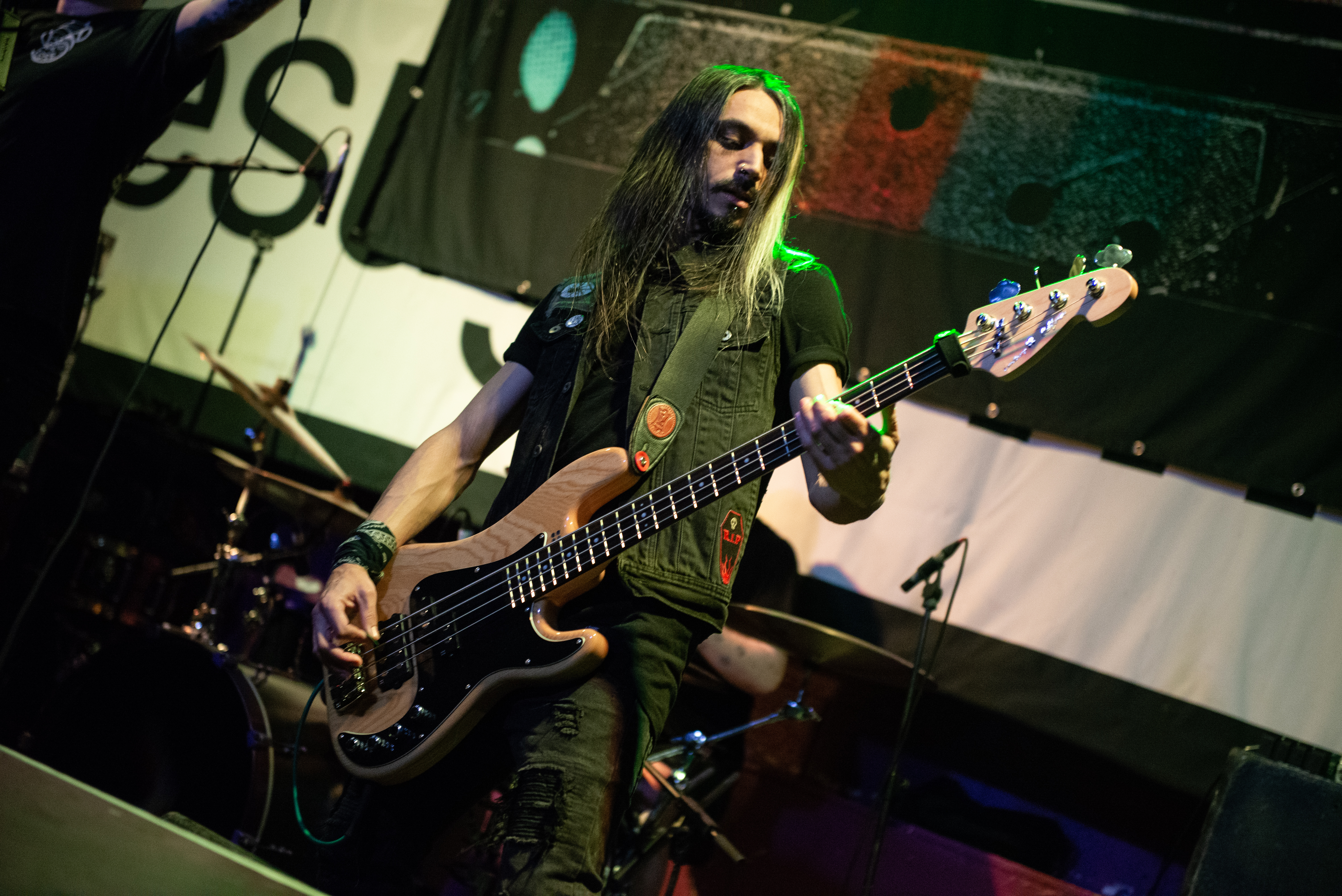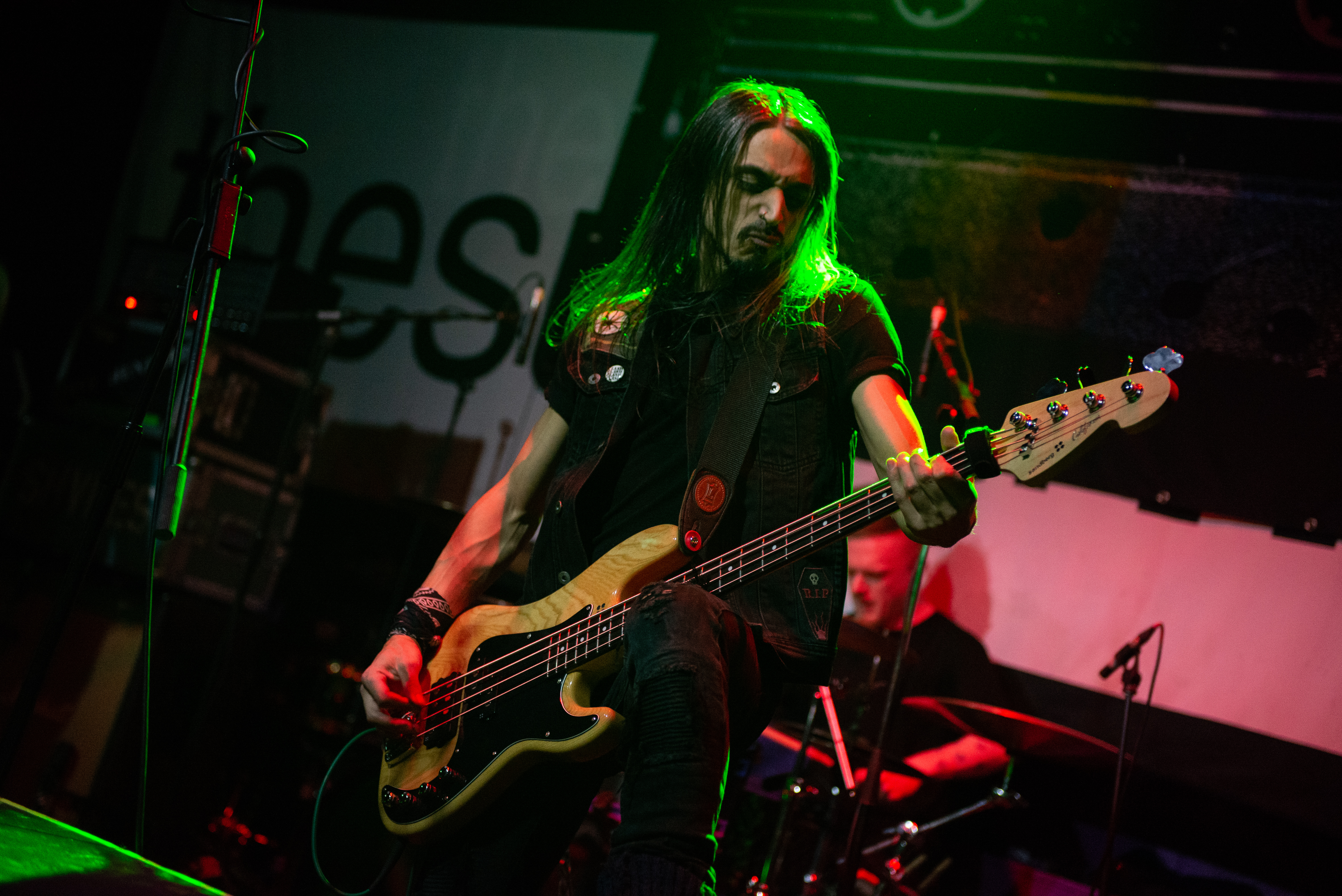 However, the very positive response justified the collective’s rapidly-growing reputation on the British underground metal scene, and if anybody watching thought that DEATH BLOOMS were going to be far more gentle, then there were very much mistaken, as the Liverpool four-piece, a band currently very much on the rise, moved things up by a notch and then some.Throughout, their vocalist, Paul Barrow, addressed the viewing patrons in a similar way to that of a drill sergeant barking orders at their troops, demanding that they move closer to the stage and bob their heads with further vigour, which was an effective accompaniment to the quartet’s intense sound.