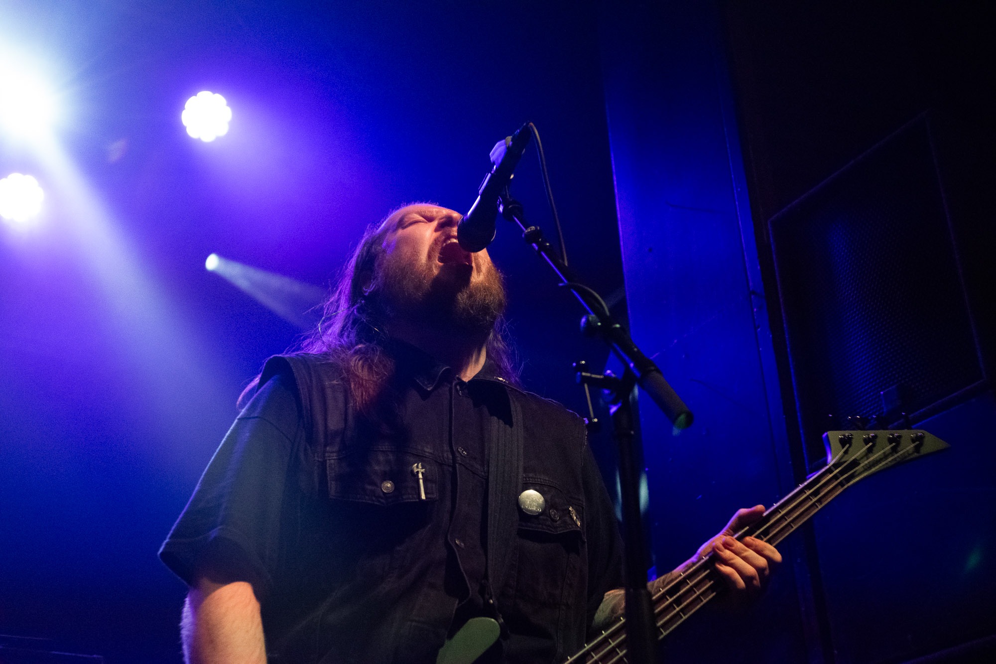 Due to unforeseen circumstances, we were unable to catch TED MAUL. HERIOT took to the stage, forming a row at the front, making it easier to connect with each member as they were all visible to the audience; this also meant there was no room for error. They kicked off their set with Commander of Pain, a song that starts the set slow and steady, warming the crowd up for what was to come. As the pace picks up, vocalist Debbie Gough commands the formation of pits from “front to back and side to side”. Despite being a supporting set, the band still perform as though they are the headliners, with even drummer Julian Gage standing up behind the kit at points to encourage chaos in the pit.
