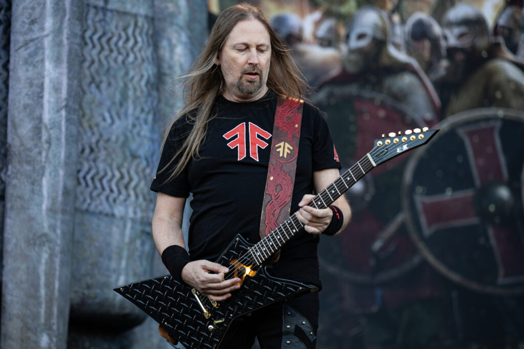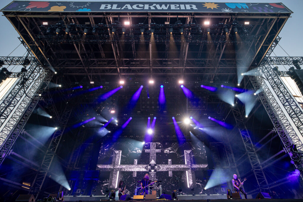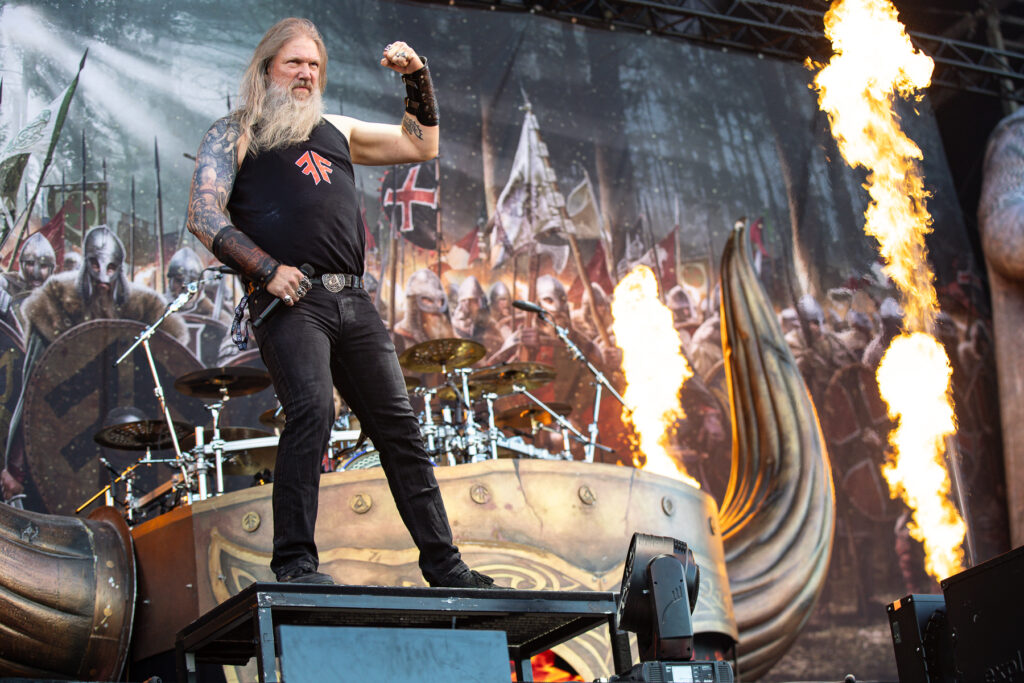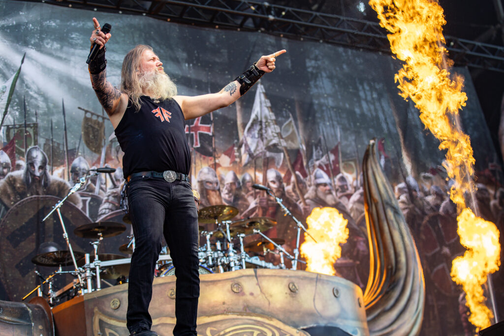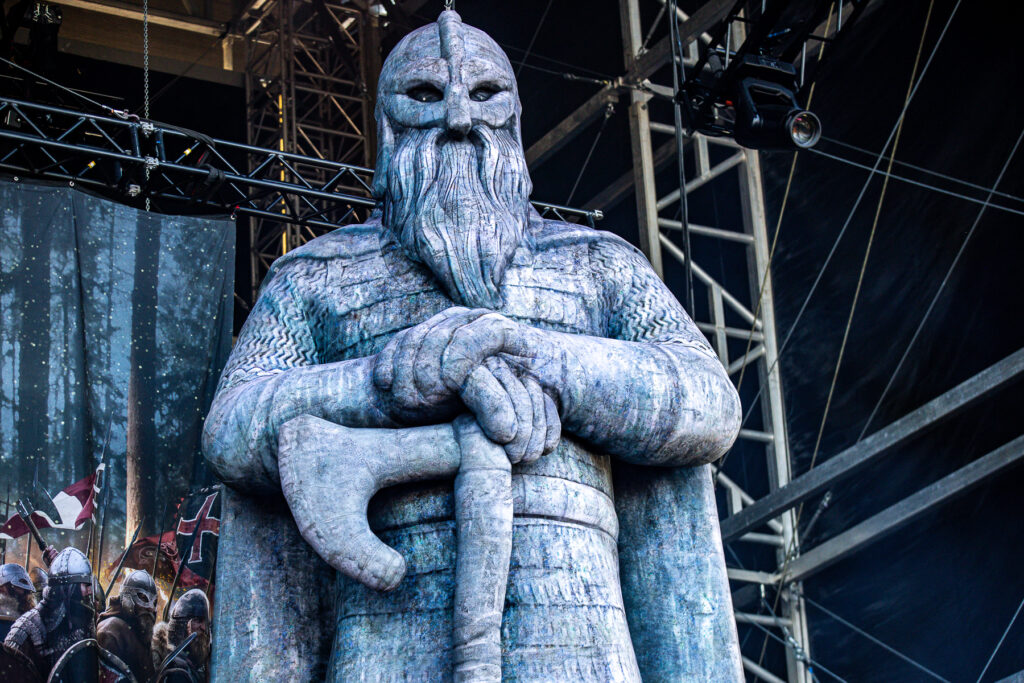 AMON AMARTH, so far, are the only band that feel like an actual set. Bringing their full production of inflatable statues, a horned-helmet drum riser and flames aplenty they show the crowd why they earned that Bloodstock headline slot. Opening with Guardians Of Asgard the band are as tight as can be. Until vocalist Johan Hegg decks it and sports a bloody elbow for the rest of the set. But he gets straight back up and tries his best to hold in his laughter for the rest of the song. Afterwards he quips “it’s not about how you fall, but how you pick yourself back up!” A blistering set later, filled with songs like Shield Wall, Crack the Sky and the catchy Put Your Back Into The Oar with rowing pits aplenty, they end with Twilight Of the Thunder God. Complete with Hegg brandishing his hammer, swinging it down and explosions ringing across the stage. As they leave the stage, a familiar sight appears.