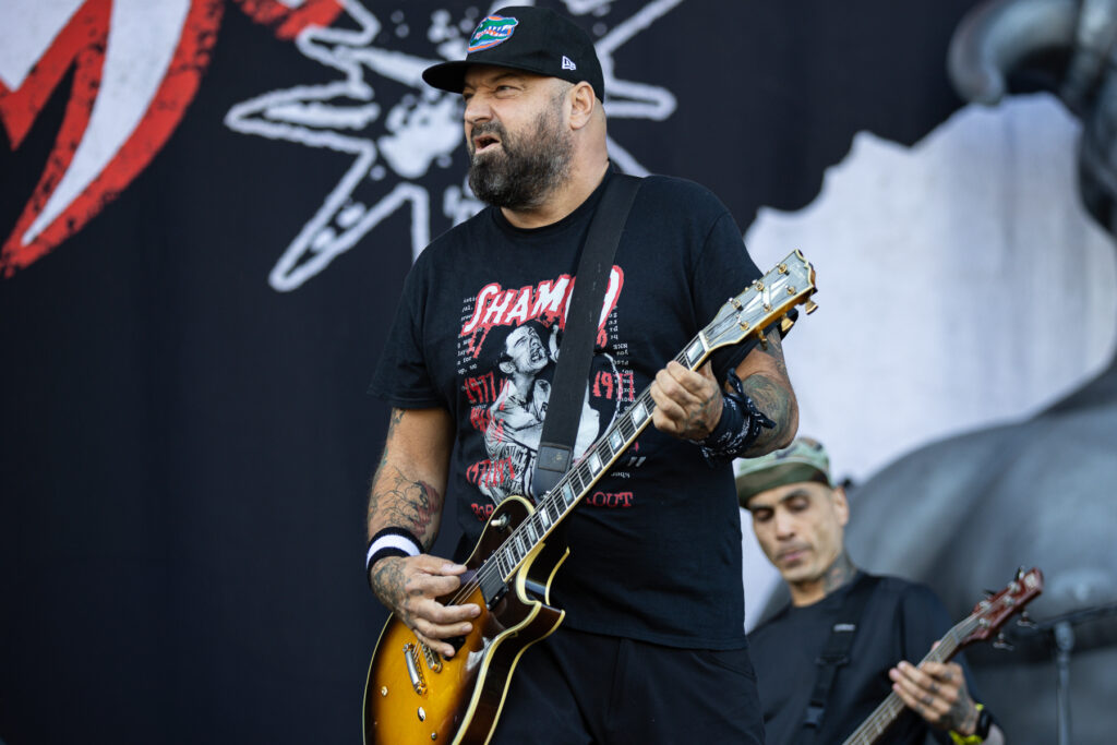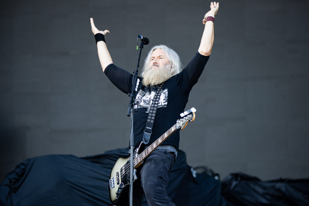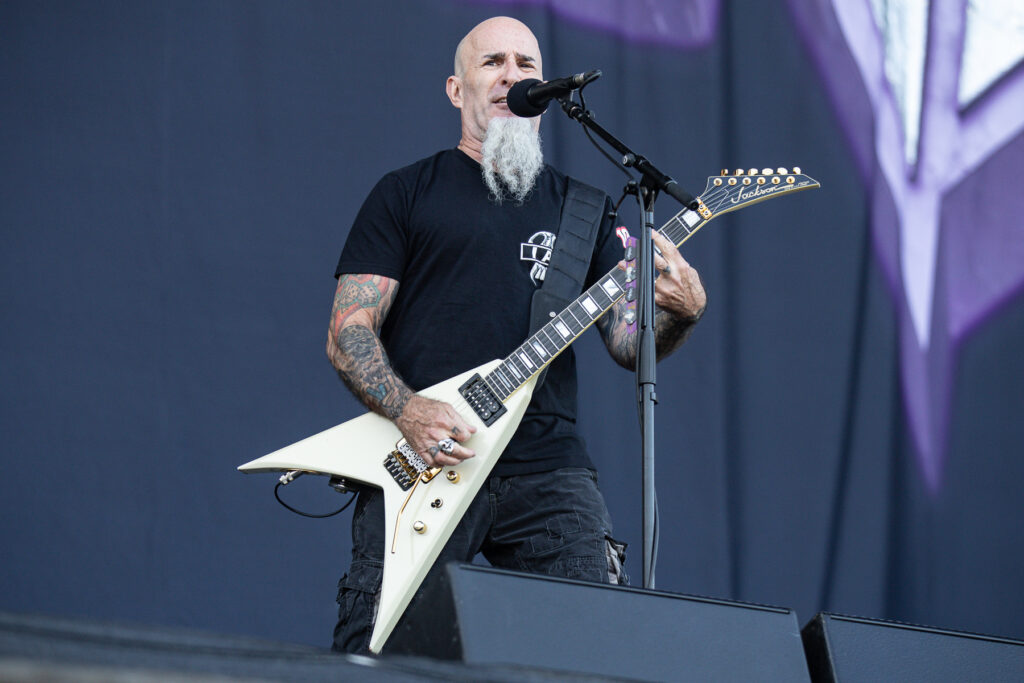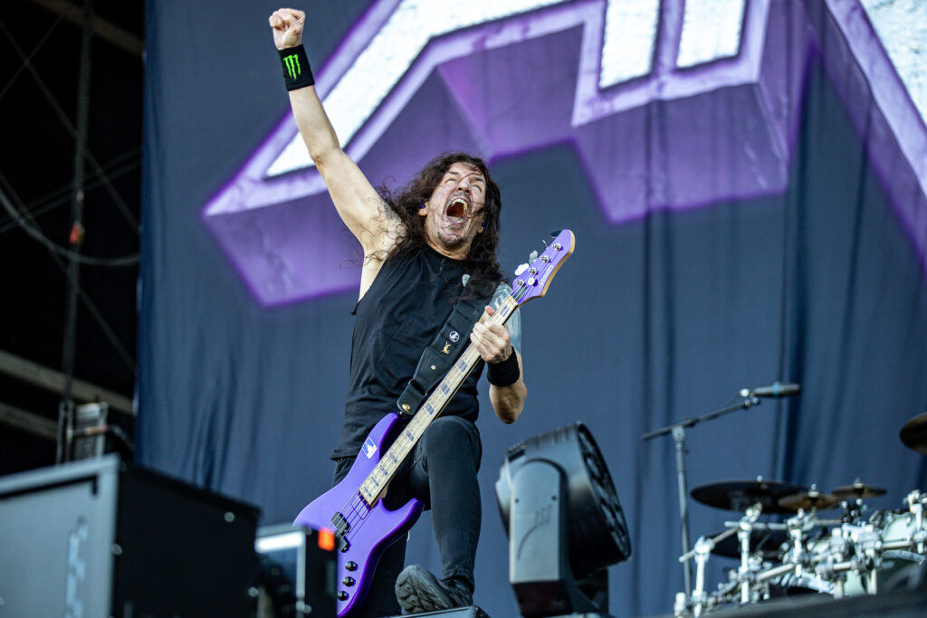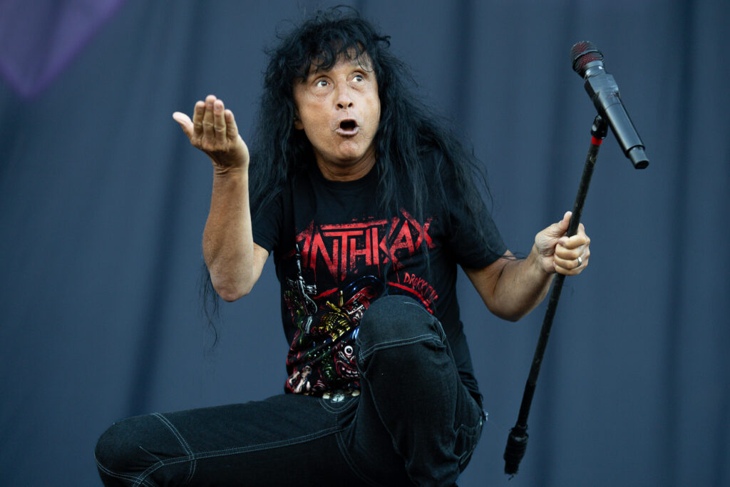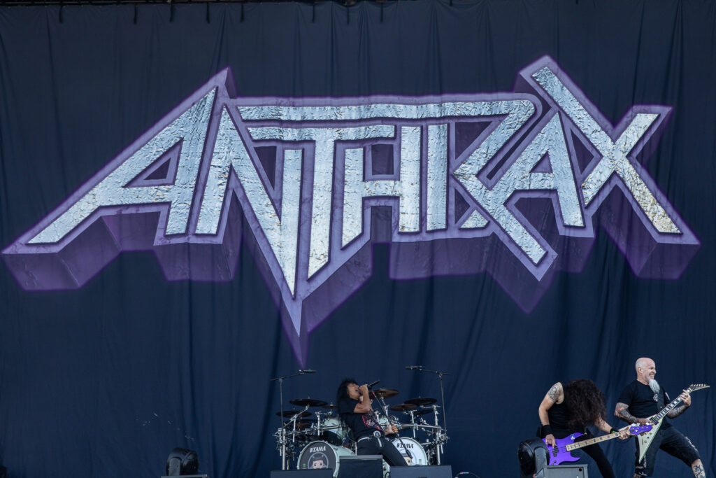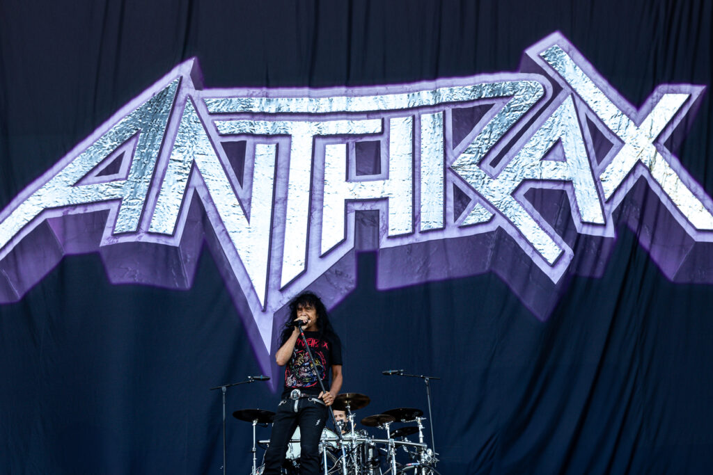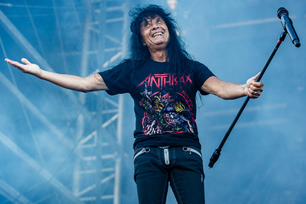 But there’s nary time for rest as after a quick drum change, ANTHRAX are welcomed to the field with a Blues Brothers intro tape to get the crowd going. The band walk out with vocalist Joey Belladonna fist bumping the crew on his way to the stage as the band bust into Among The Living, well the start of it any way. Even though they’re band number three out of five, ANTHRAX are the first band so far to get the crowd really moving. Caught In A Mosh gets the sea of people screaming, circle pitting and crowd surfing with guitarist Scott Ian doing his signature circle stomps in time with drummer Charlie Benante.