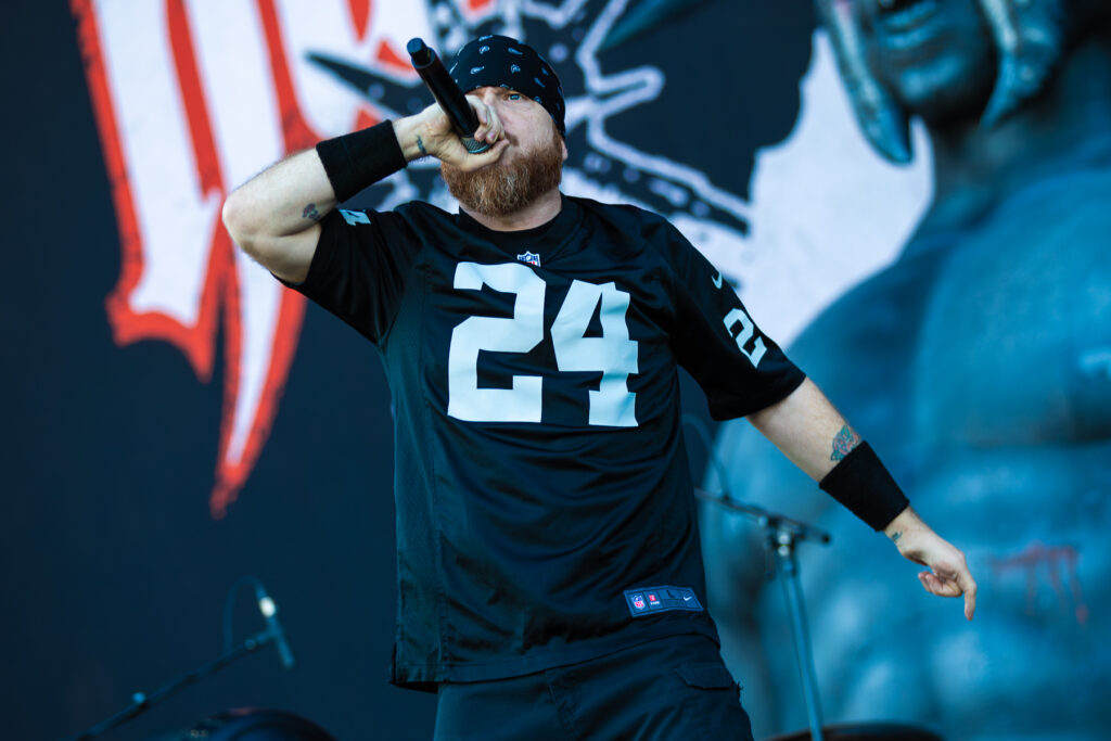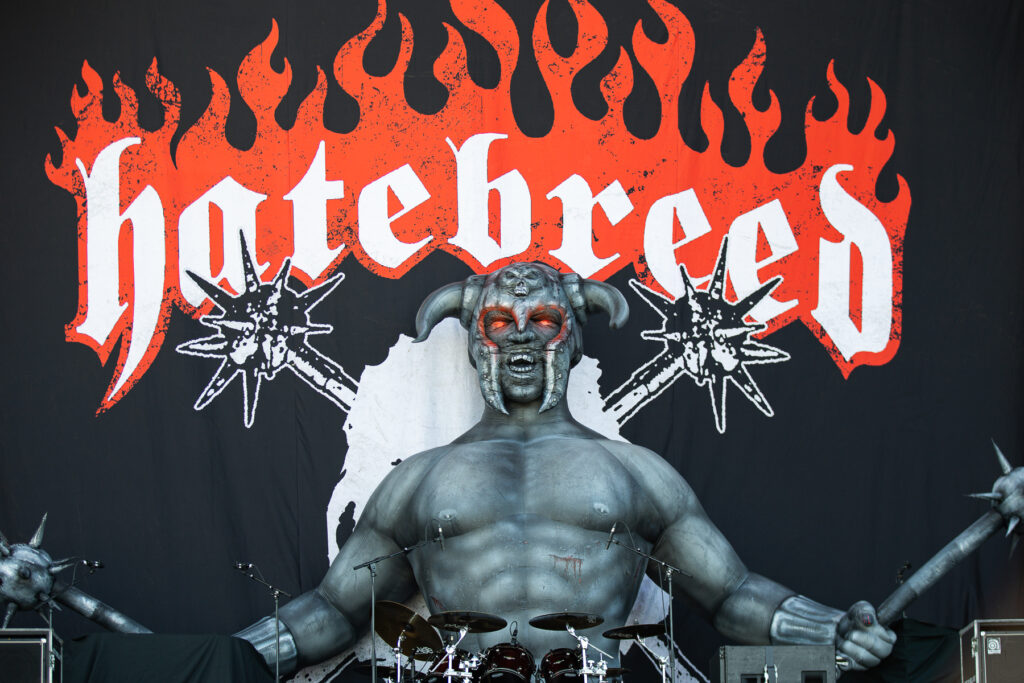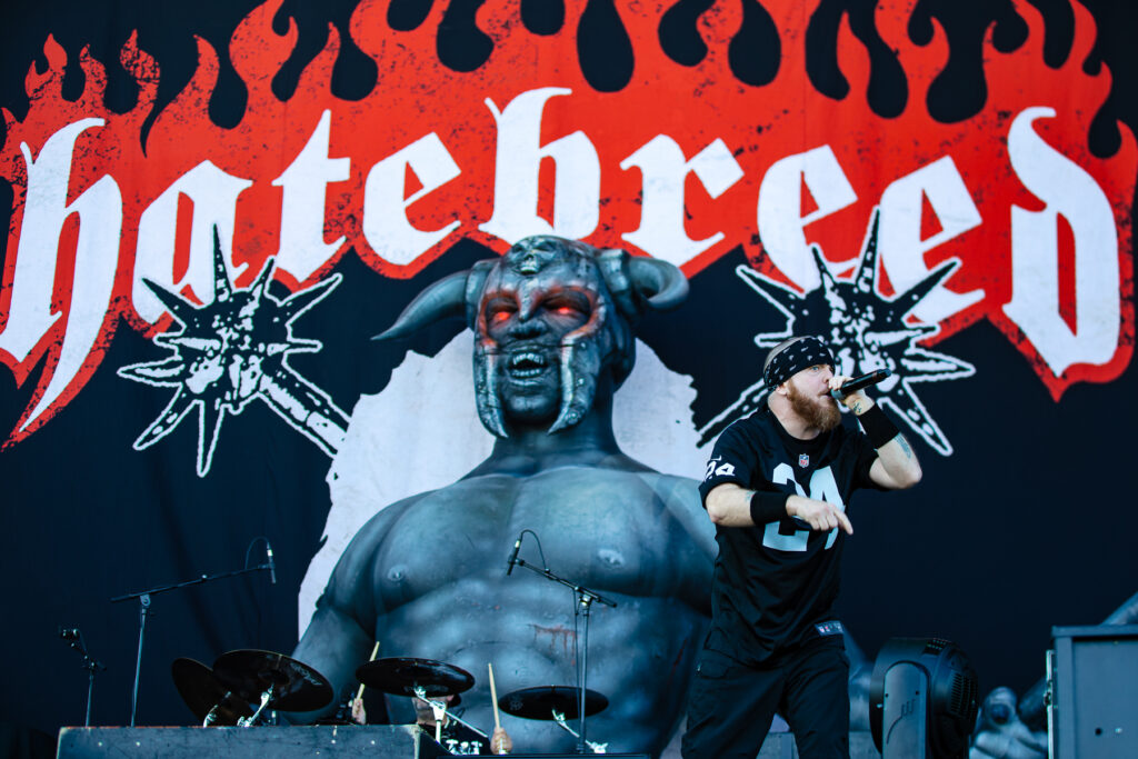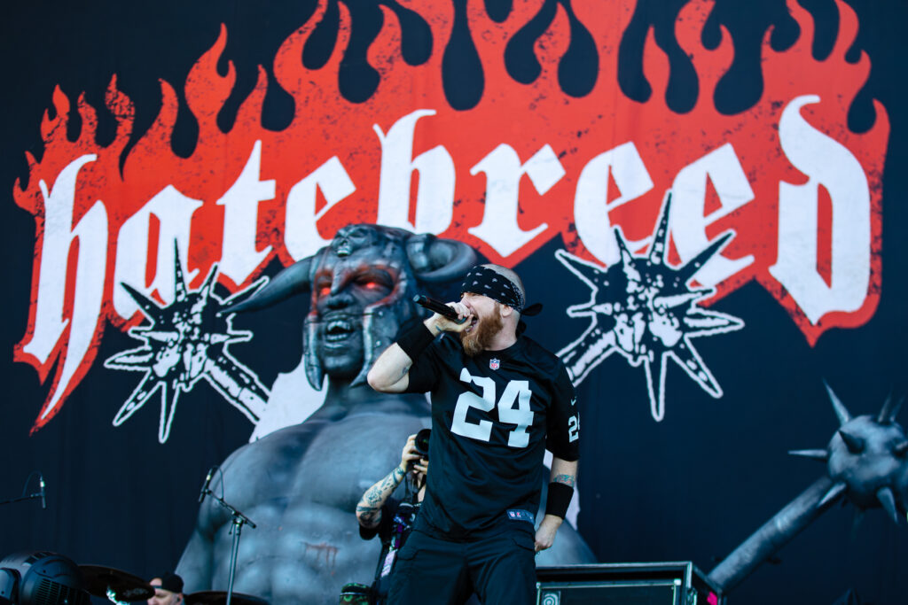 Well starting the days proceedings, a whopping 15 minutes after the gates open, HATEBREED play to an almost empty Blackweir Fields. If you’re not a vendor, member of security or one of the few people that managed to squeeze past through the queues and ran toward the stage, chances are you heard the echo of their set from the other side of the entrance. Kicking their set off with the ironically titled I Will Be Heard they pound their way through a further four songs that do get heads banging and the field warmed up with their giant inflatable balls of death. It comes to an end with Looking Down the Barrel Of Today before vocalist Jamey Jasta are told they need to leave the stage. And it’s not just there where the pathetically short sets end.